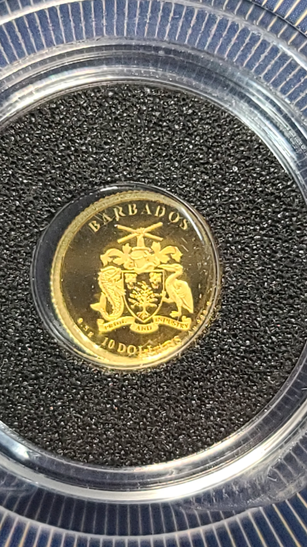 0.5 Grams Barbados $10 .999 Pure Gold Proof Coin - 1 0f 5,000