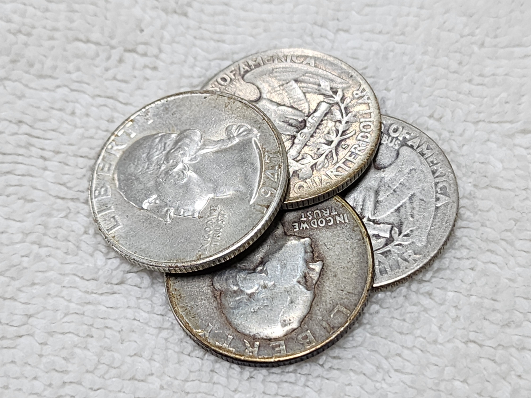 $1.00 Face Value in Assorted 90% Silver United States Washington Quarters ~ 4 Coins!