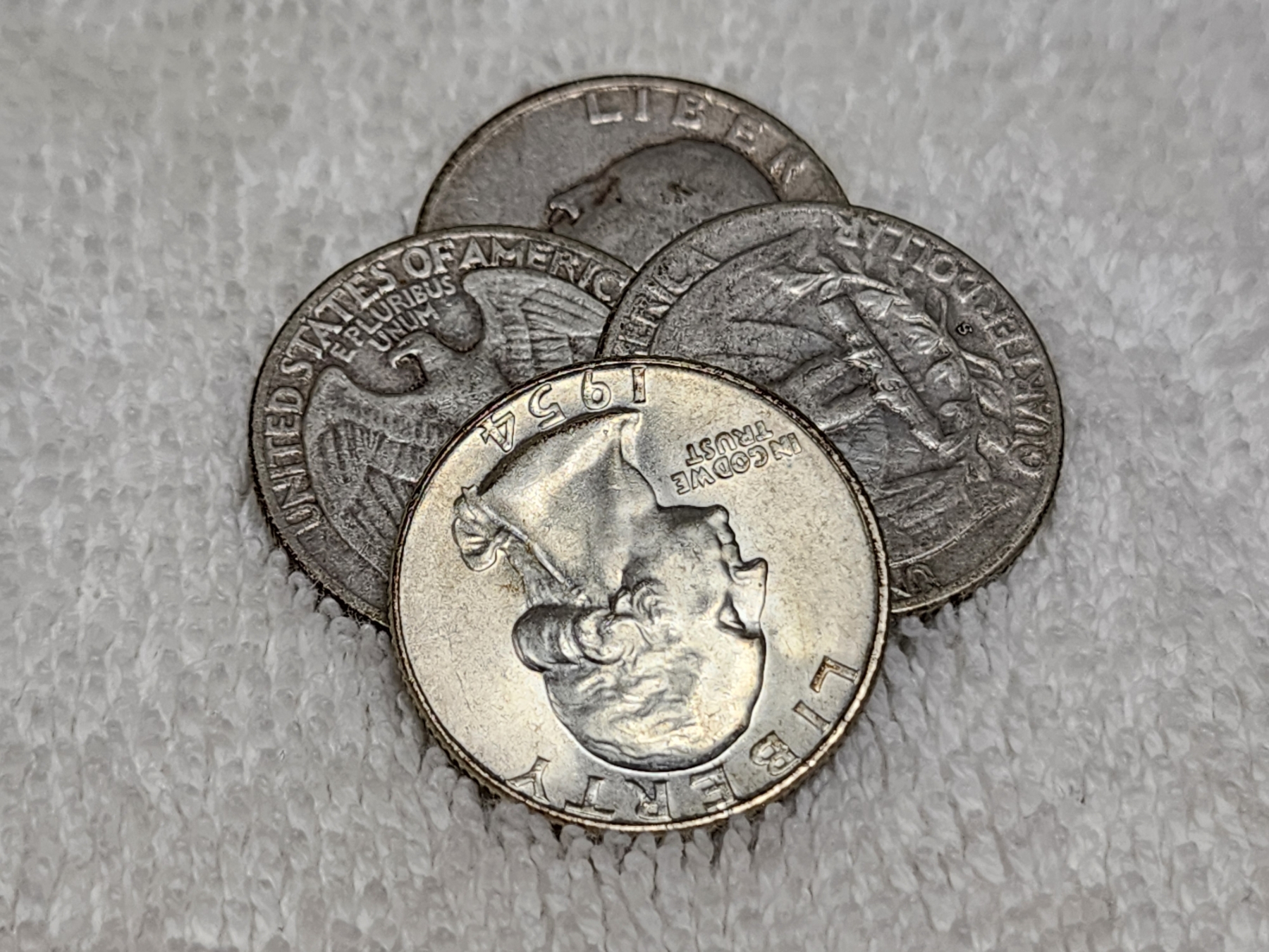 $1.00 Face Value in Assorted 90% Silver United States Washington Quarters ~ 4 Coins!