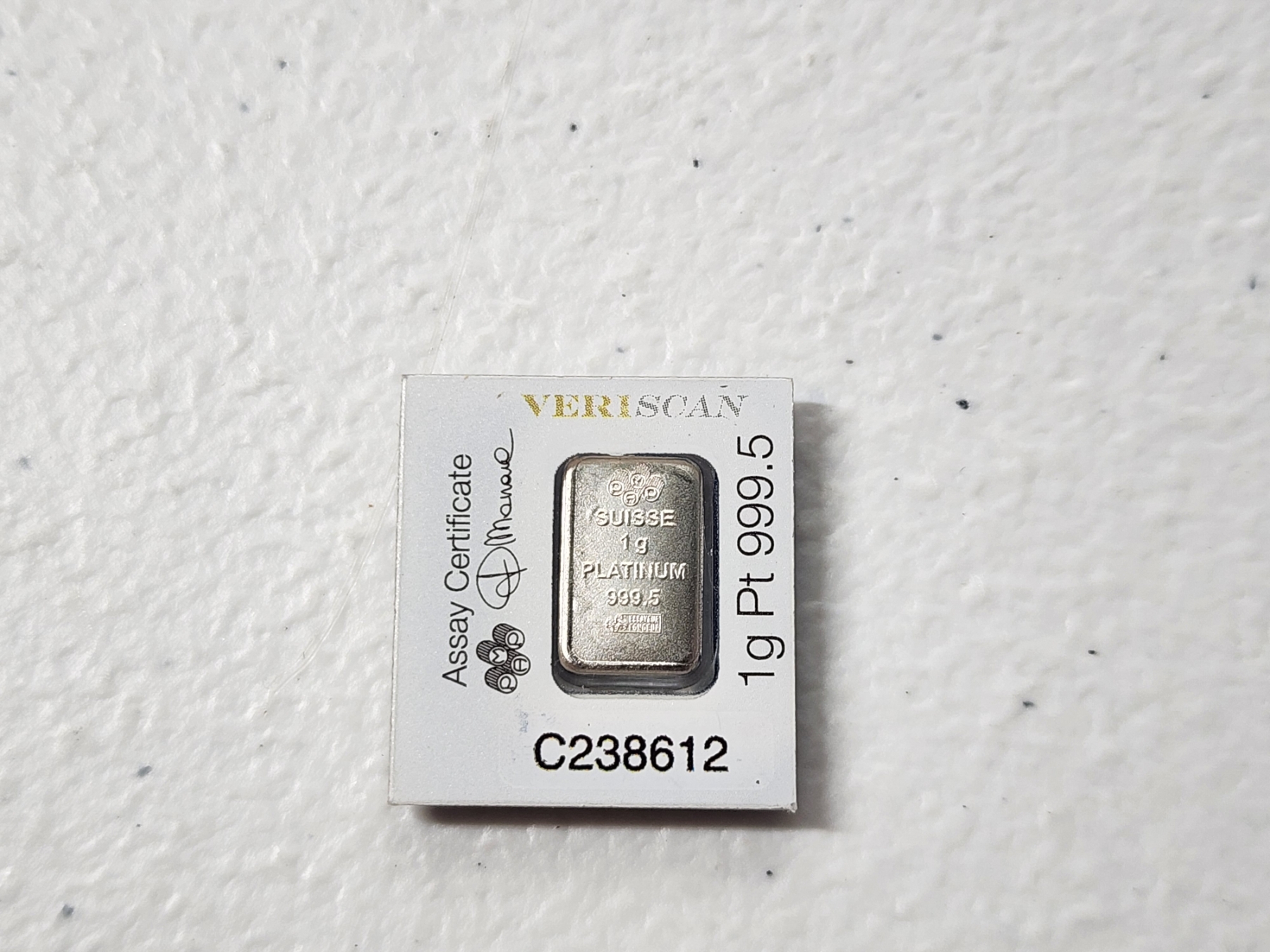 1.0g 999.5 Platinum Bullion Bar - PAMP Suisse Assay Certificate - Sealed
