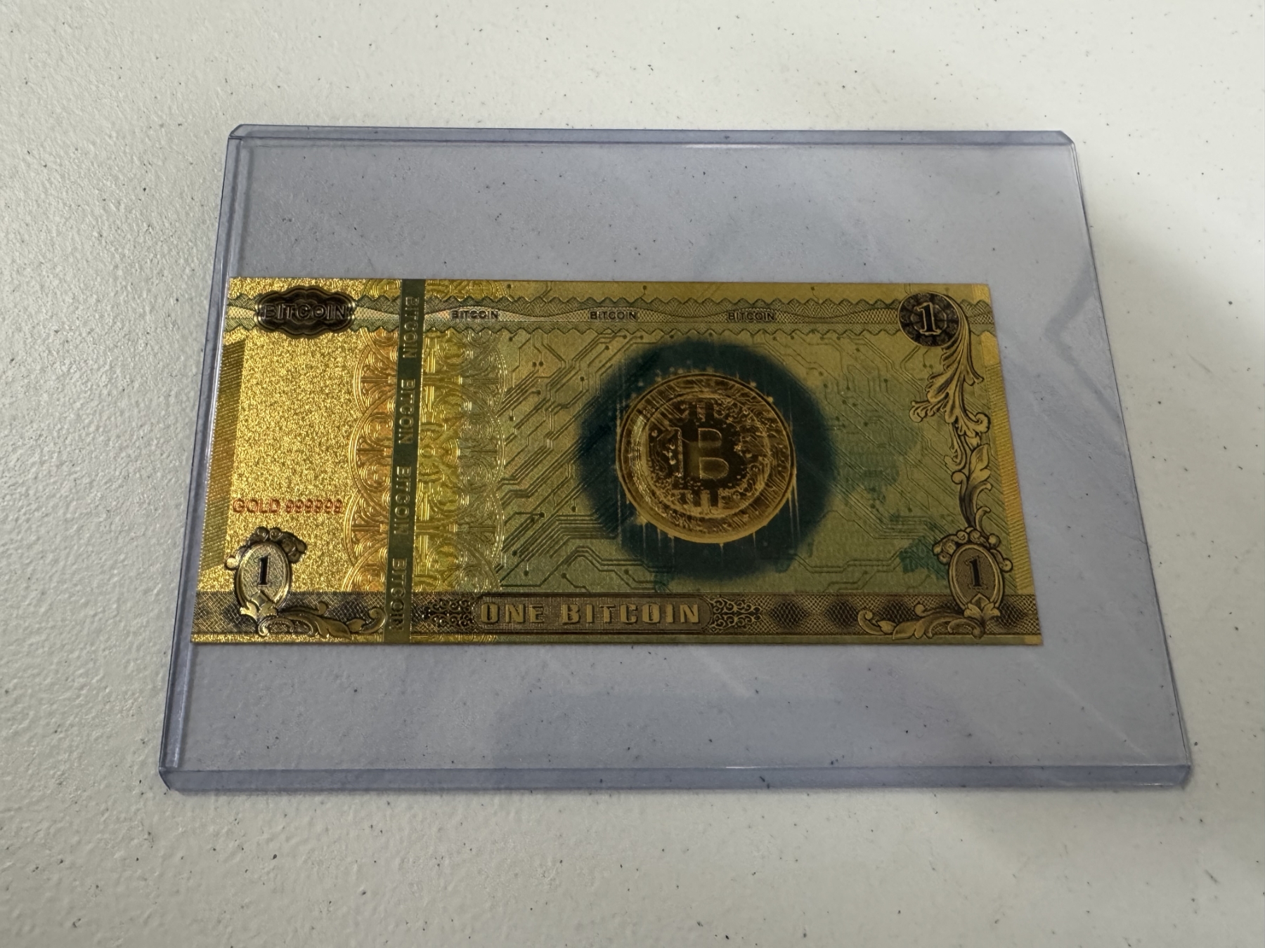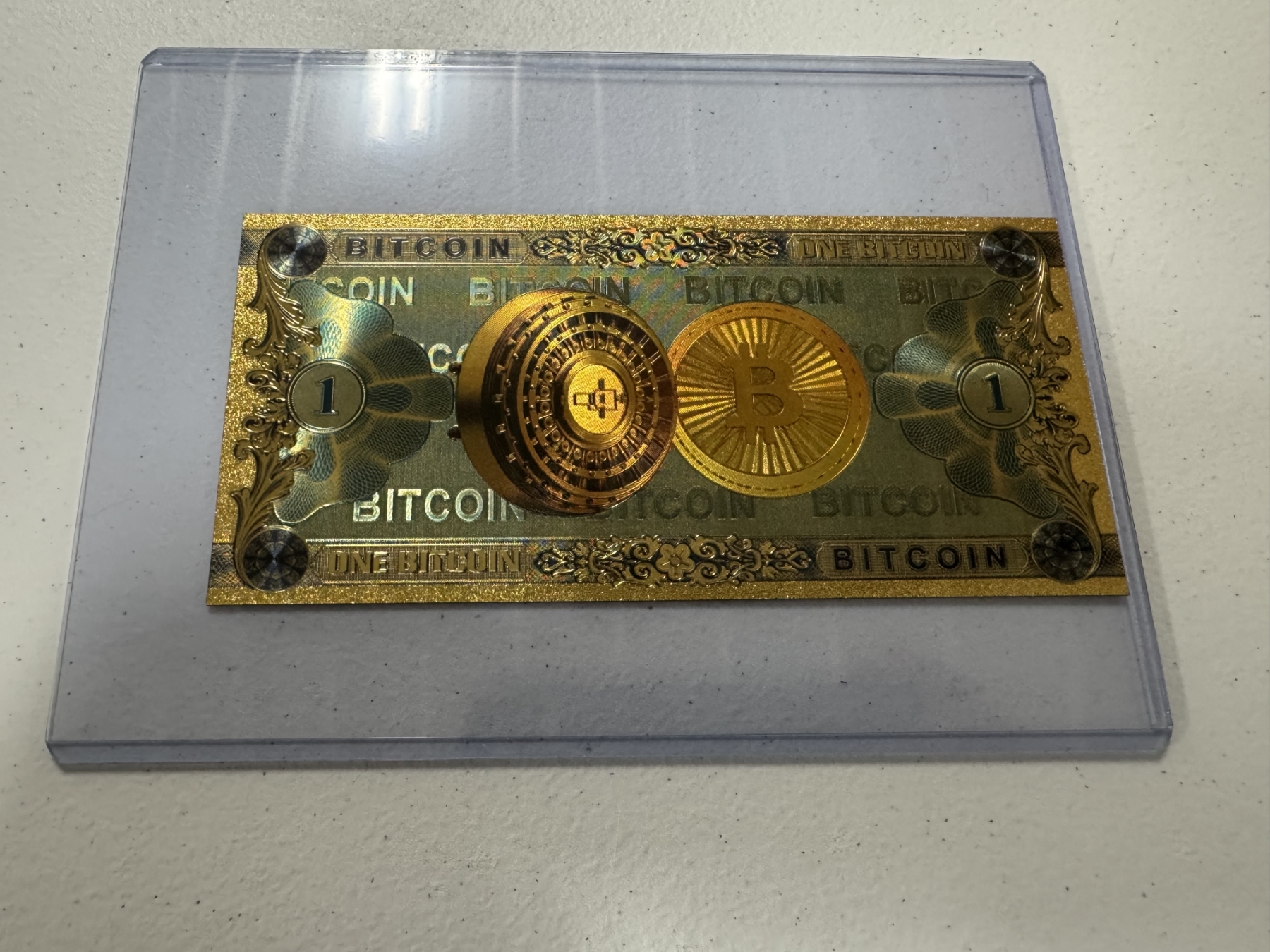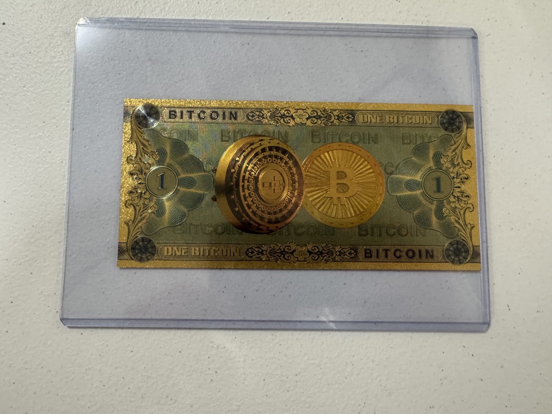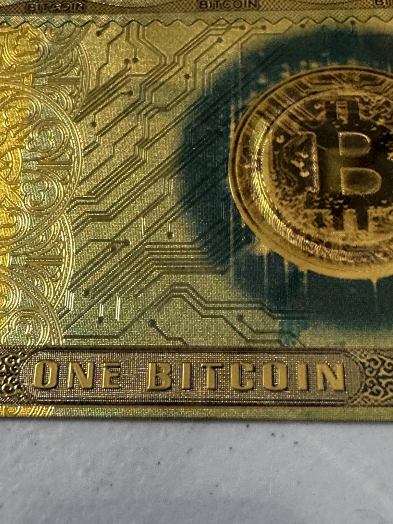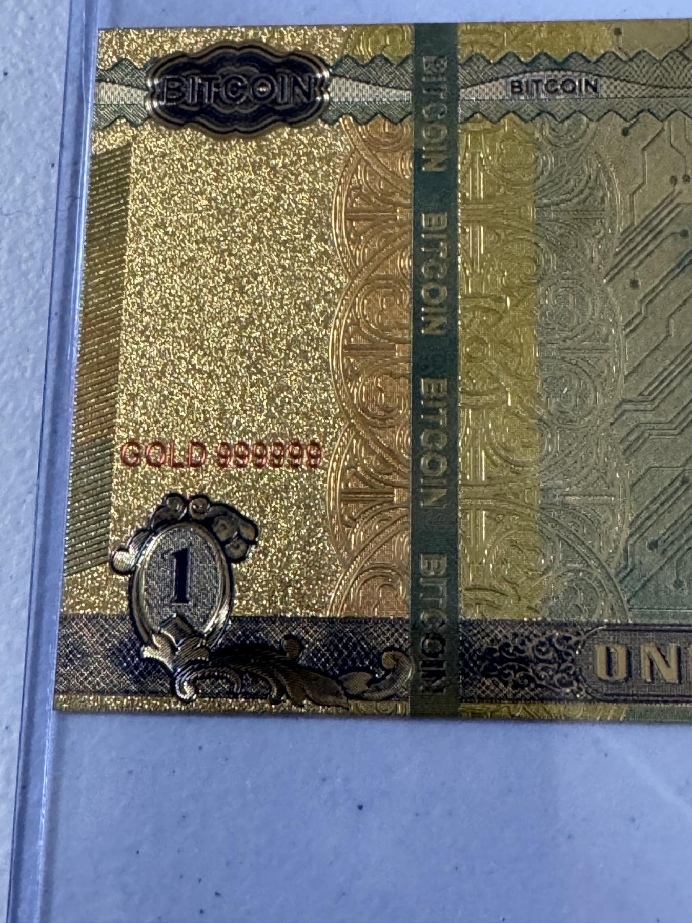 1 Bitcoin .999999 24K Gold Back - Mint Condition - Large Bill In Protective Holder