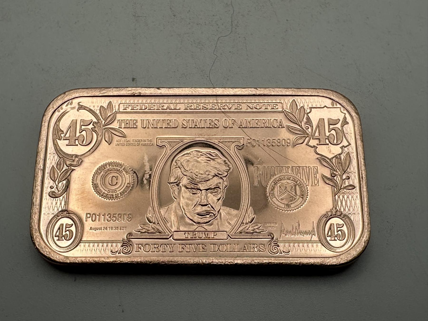 $1 Donald Trump 'Silver Certificate' 1oz .999 Copper Bar