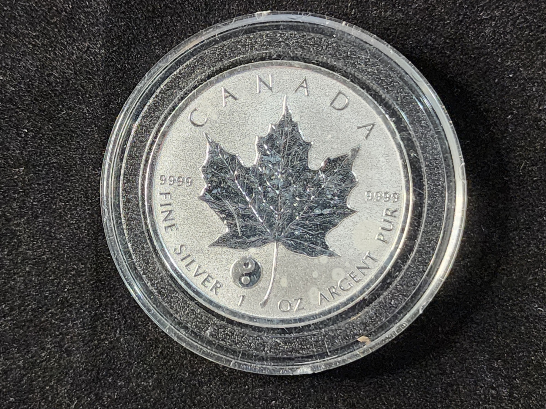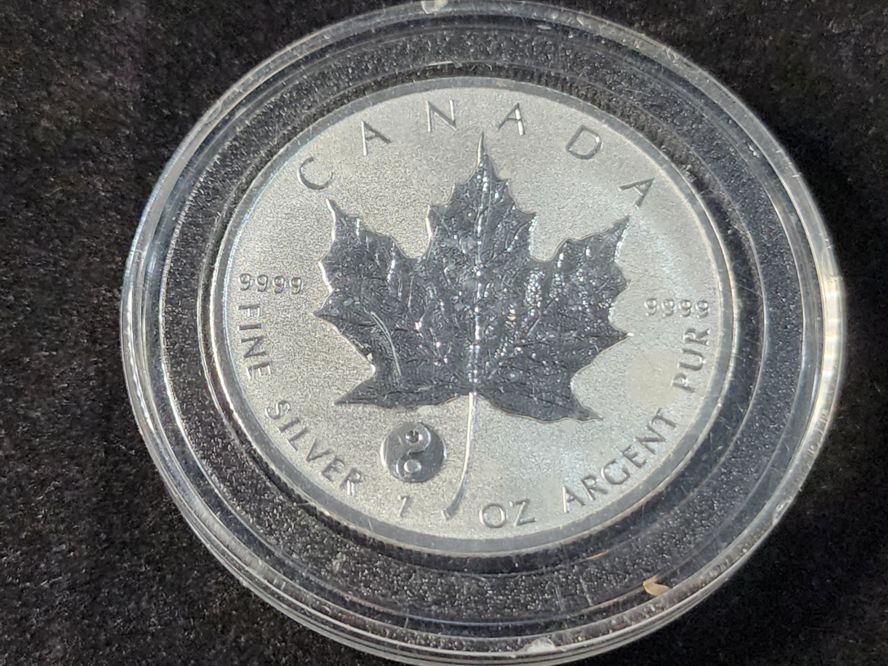 1 Oz .9999 Fine Silver 2016 Maple Leaf Round With Yin-Yang Privy