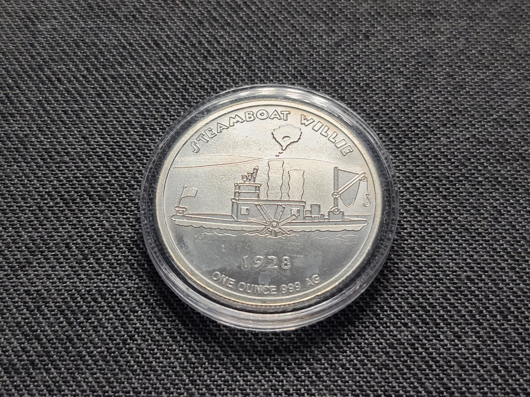 1 Oz Steamboat Willie .999 Silver Round in Protective Capsule