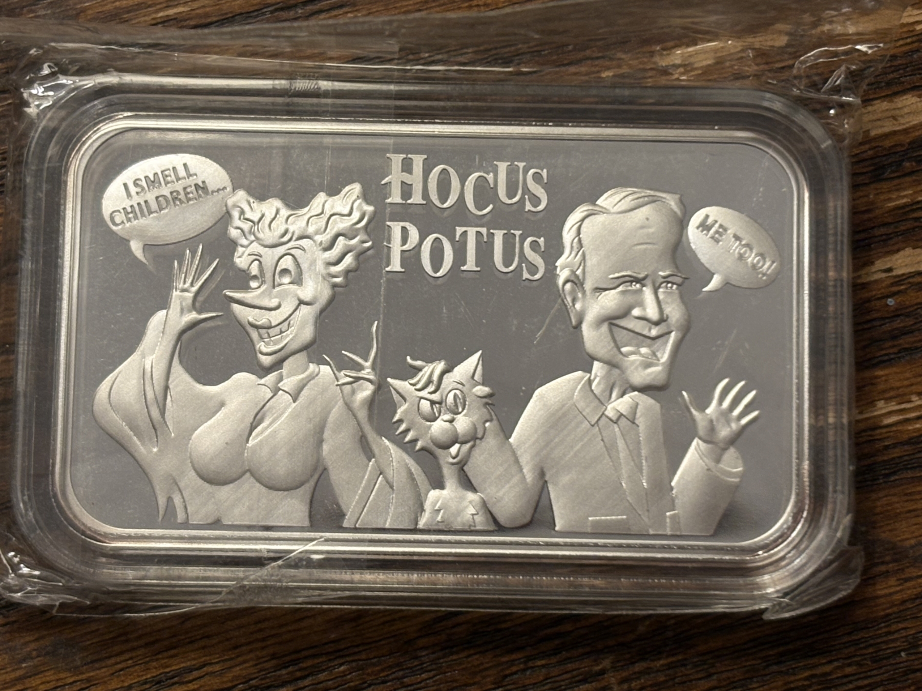 1 Troy Oz .999 Fine Silver Bar - Hocus Potus - Biden - Winifred Sanderson - United Metal Stackers - UMS-4 - Mintage 230 - In plastic Packaging
