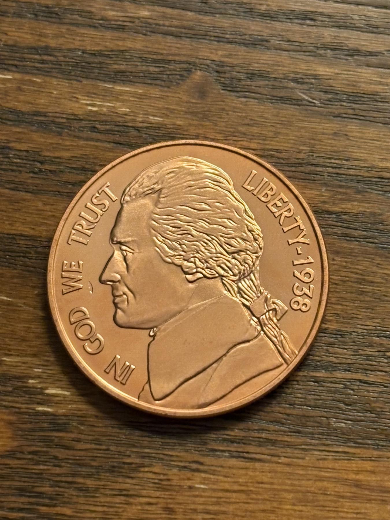 1 oz Copper Thomas Jefferson - One A.V.D.P Ounce - Liberty- 1938 - Encapsulated