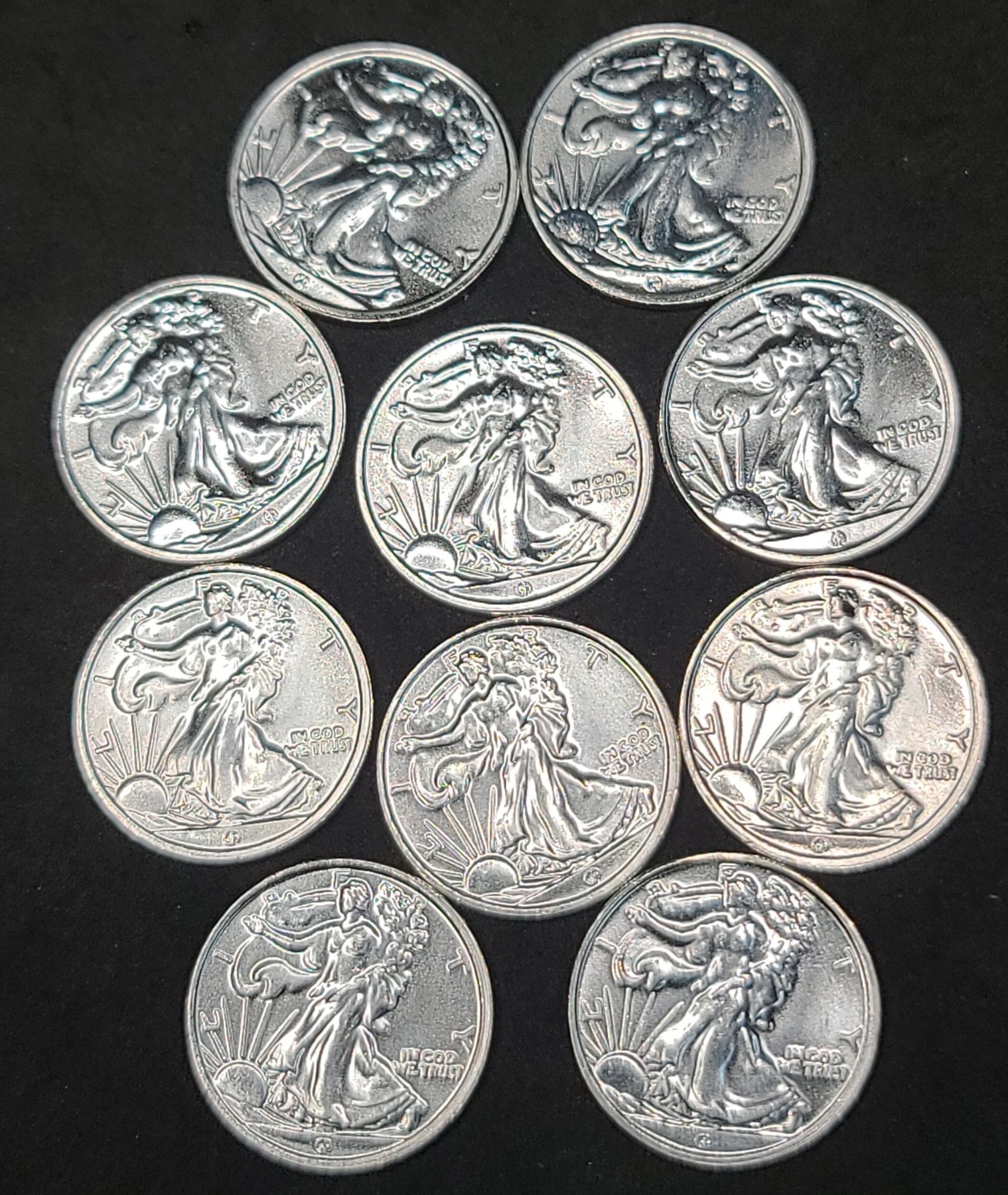 (10) 1/10 Troy Ounce .999 Fine Silver Rounds With Walking Liberty Motif