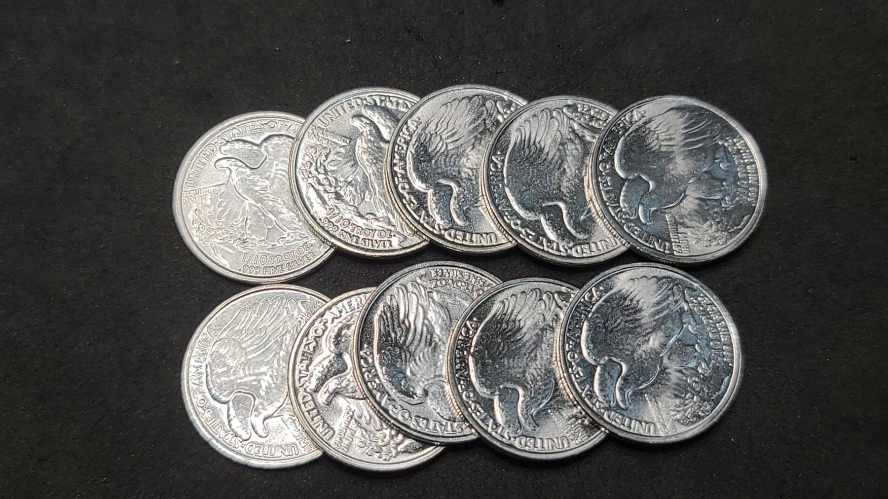 (10) 1/10 Troy Ounce .999 Fine Silver Rounds With Walking Liberty Motif