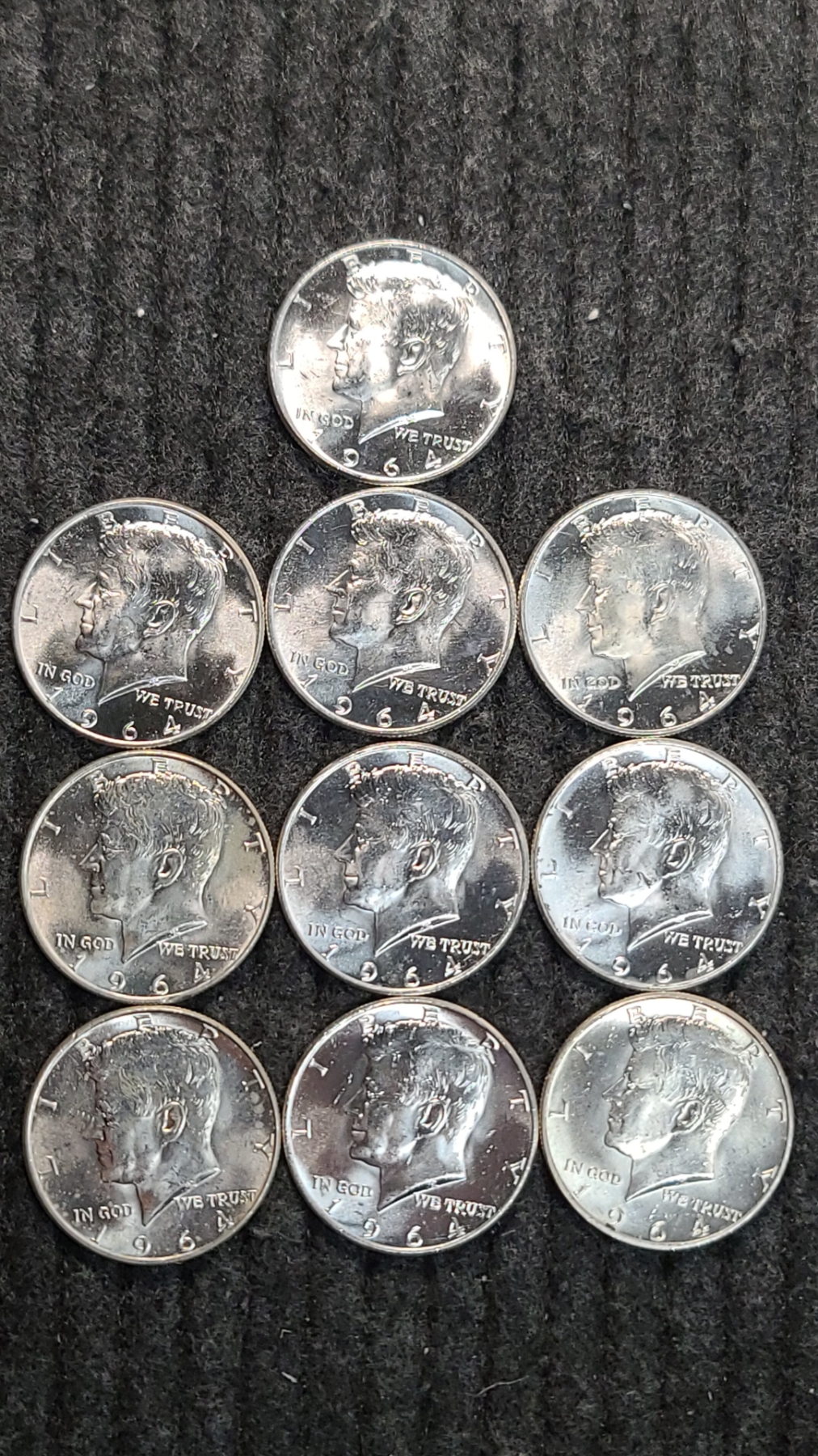 (10) 1964 90% Silver Silver Kennedy Half Dollars Face Value: $5