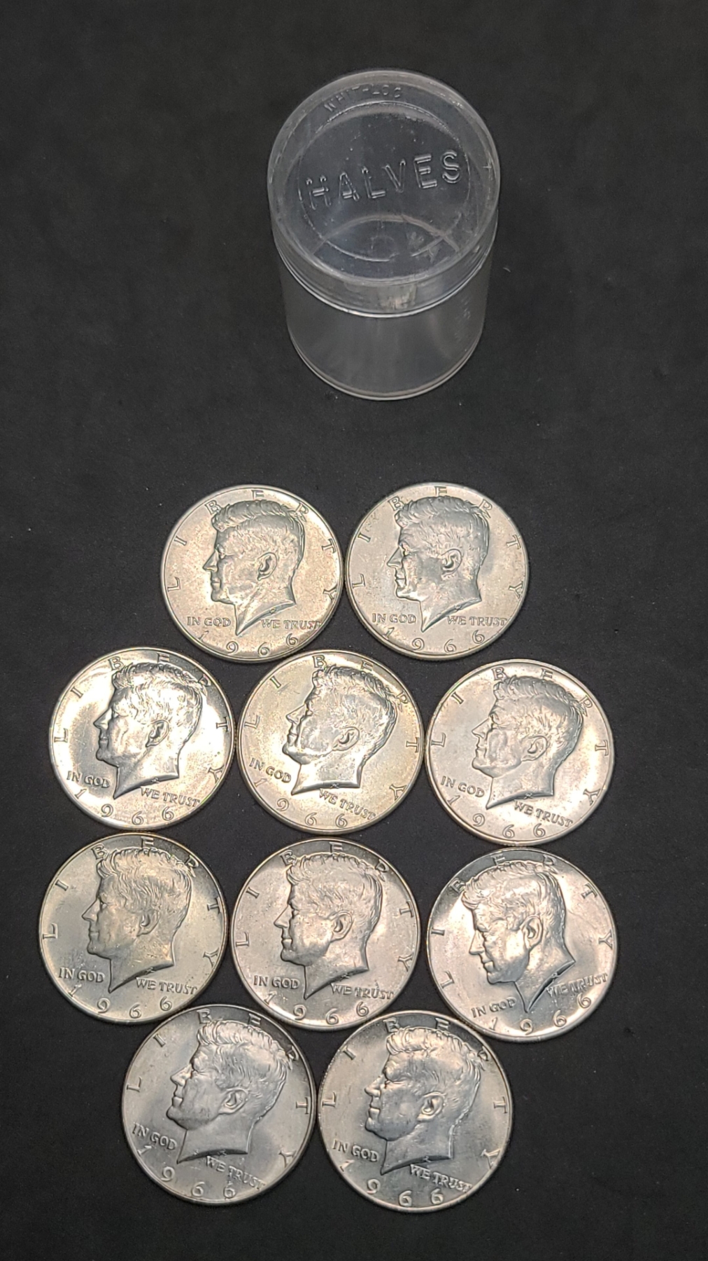 (10) 1966 40% Silver Kennedy Half Dollars In Coin Holder - Face Value: $5.00