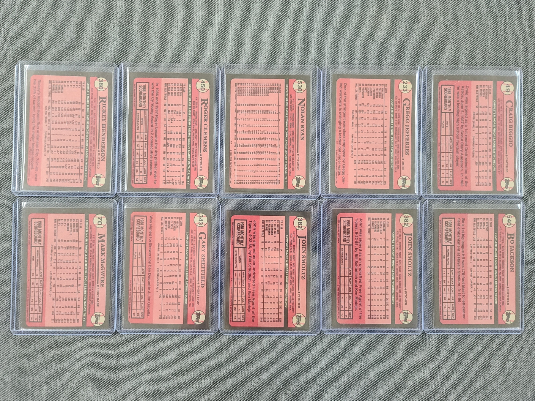10 Assorted Near Mint 1989 Topps Baseball Trading Cards Ft. Rickey Henderson, Mark McGwire & More!