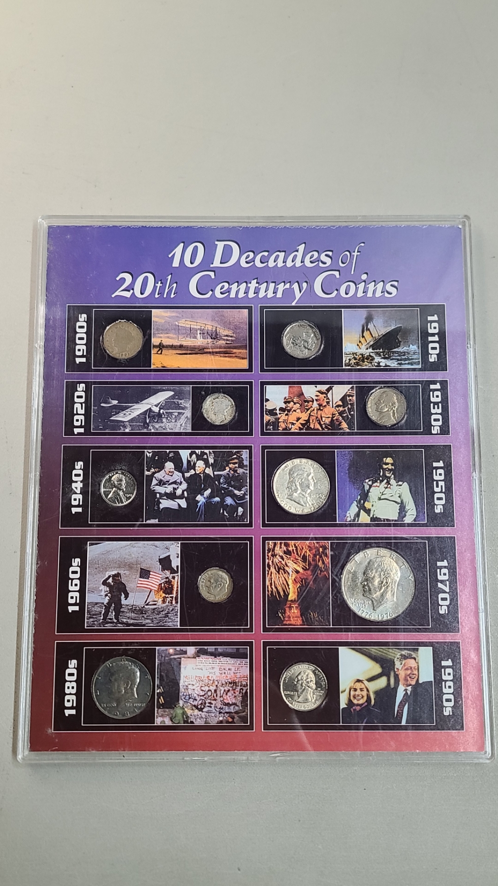 "10 Decades Of 20th Century Coins" In Acrylic Display - Face Value: $2.56