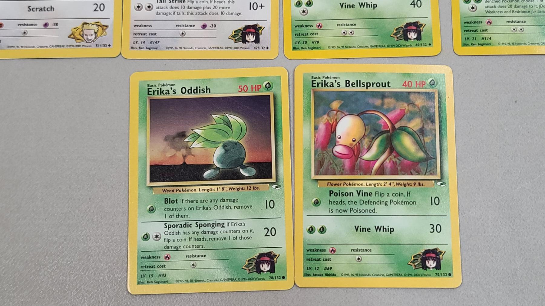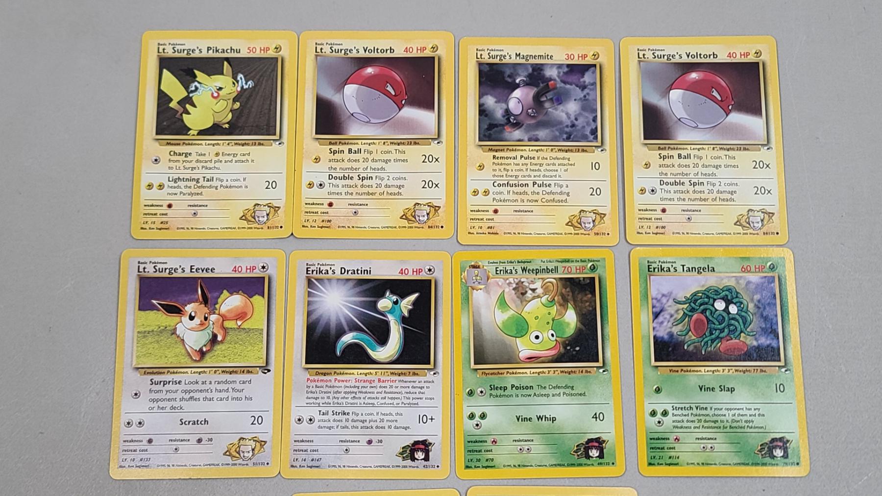 (10) Vintage Pokémon Trading Cards From The Gym Heroes Expansion Set Featuring Lt Surge's Pikachu