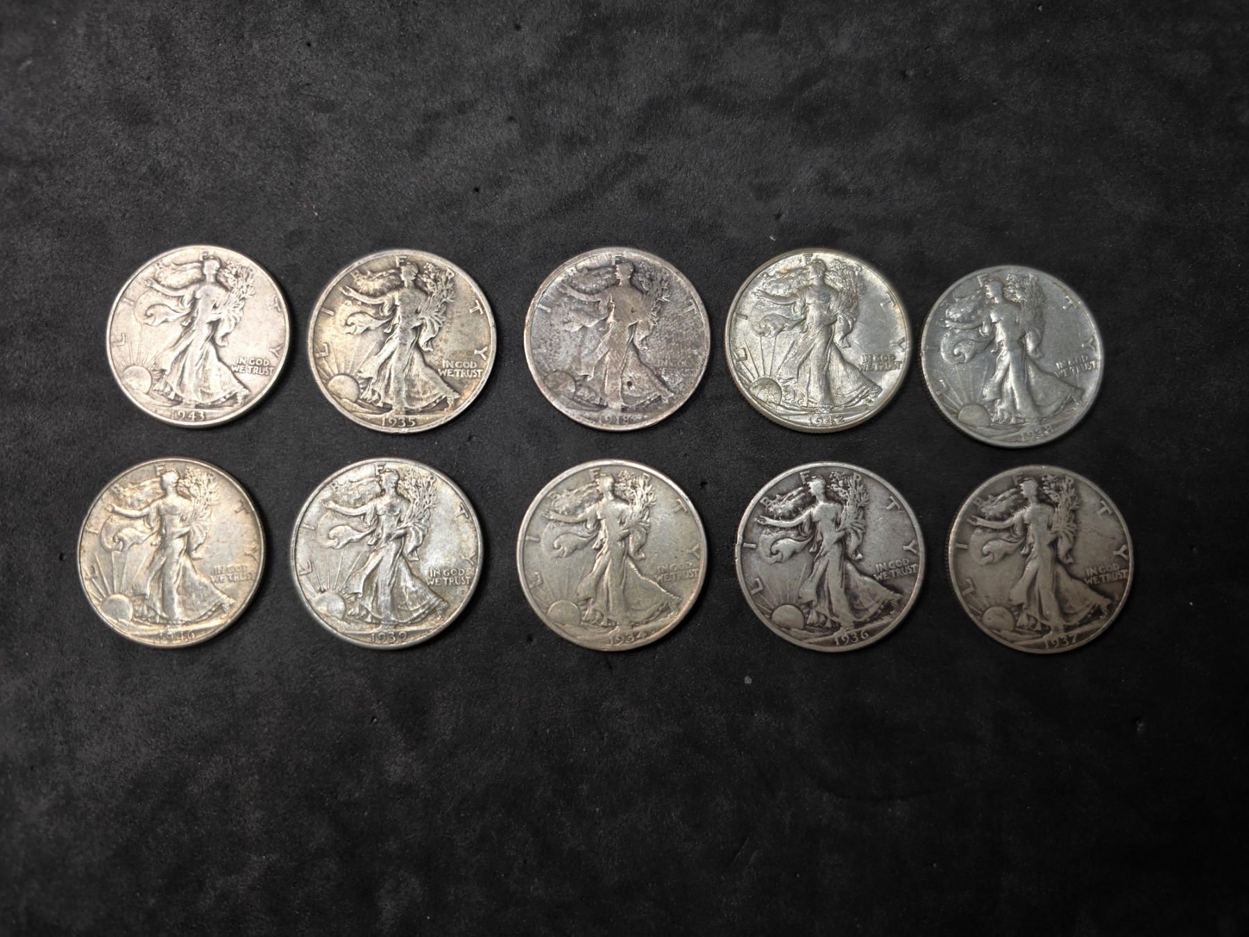 (10) Walking Liberty Half Dollars - 90% Silver