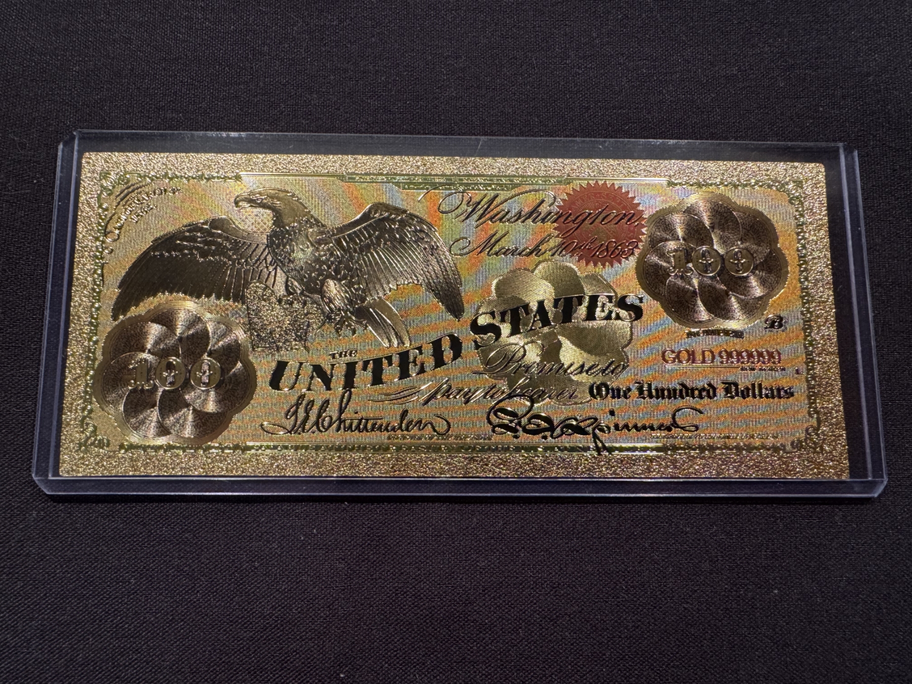 $100 Black Eagle Gold Foil .999999 - 24K Gold Note In Protective Holder - Mint Condition