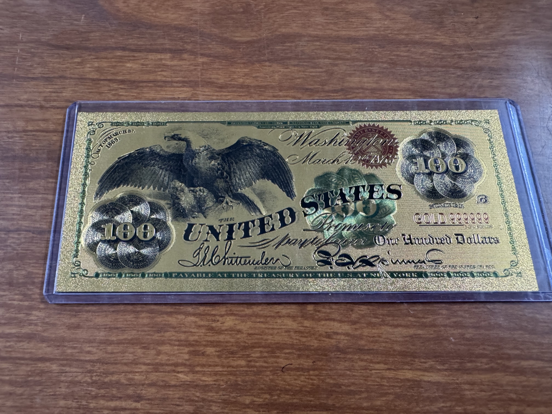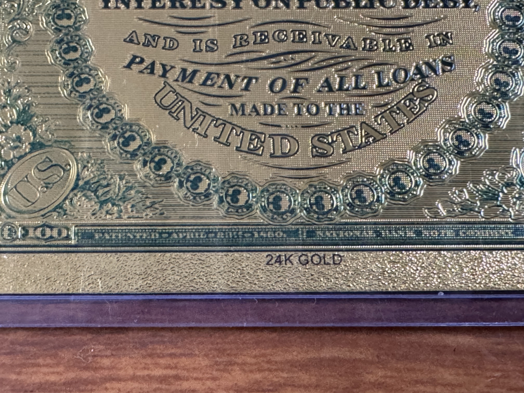 $100 Gold Coin Certificate Gold Back .999999 - 24K Gold Back In Protective Holder - Mint Condition