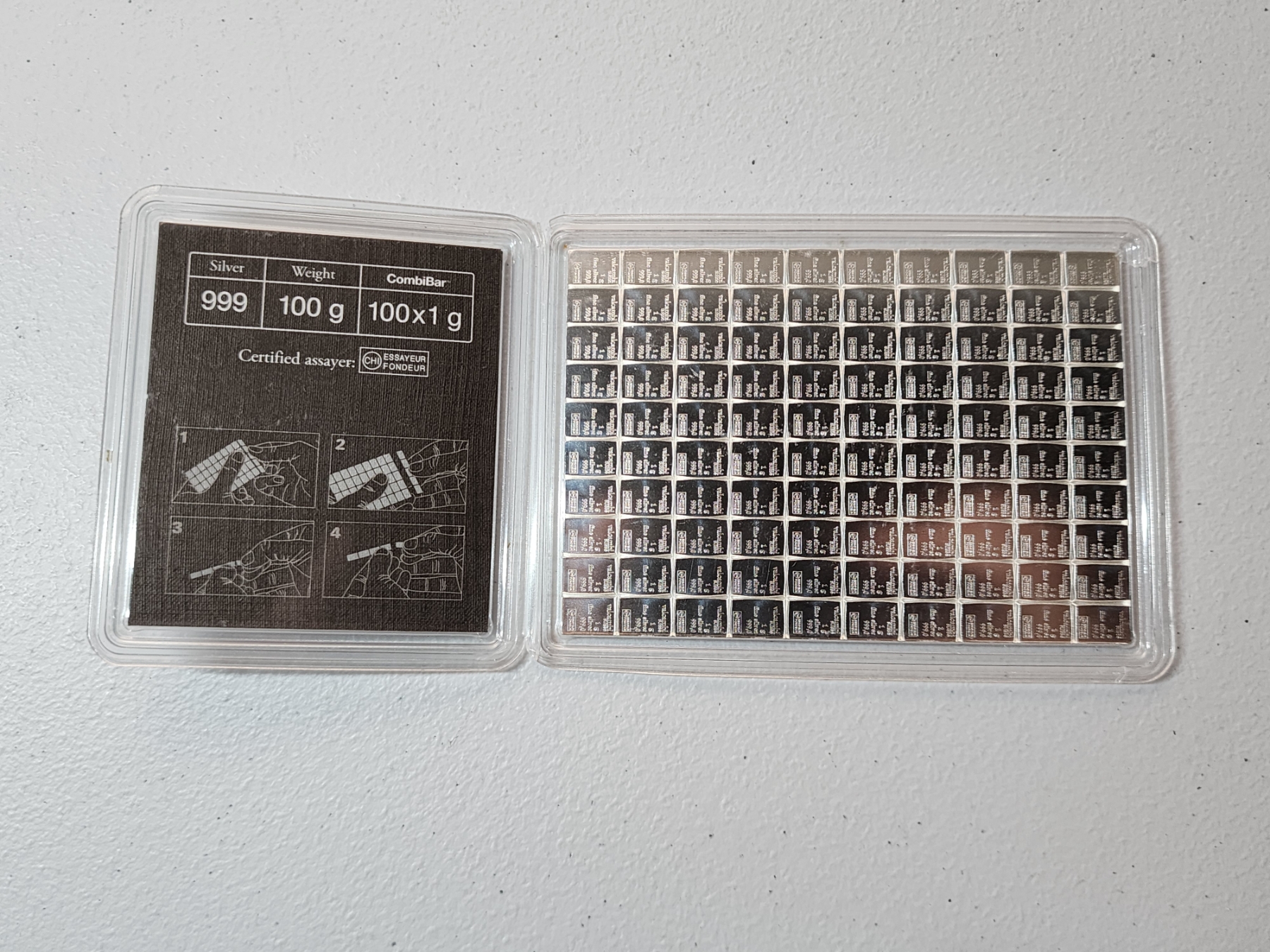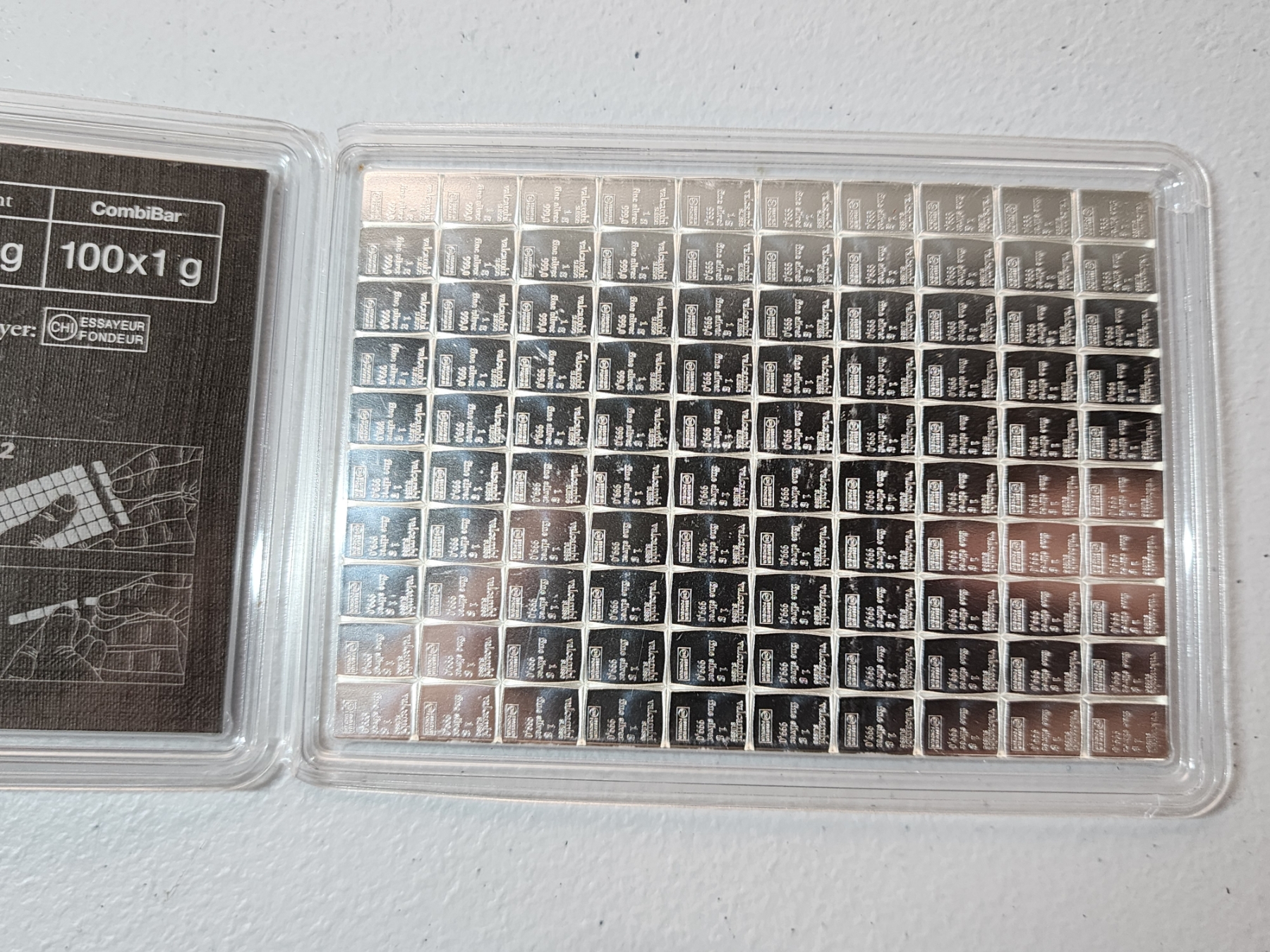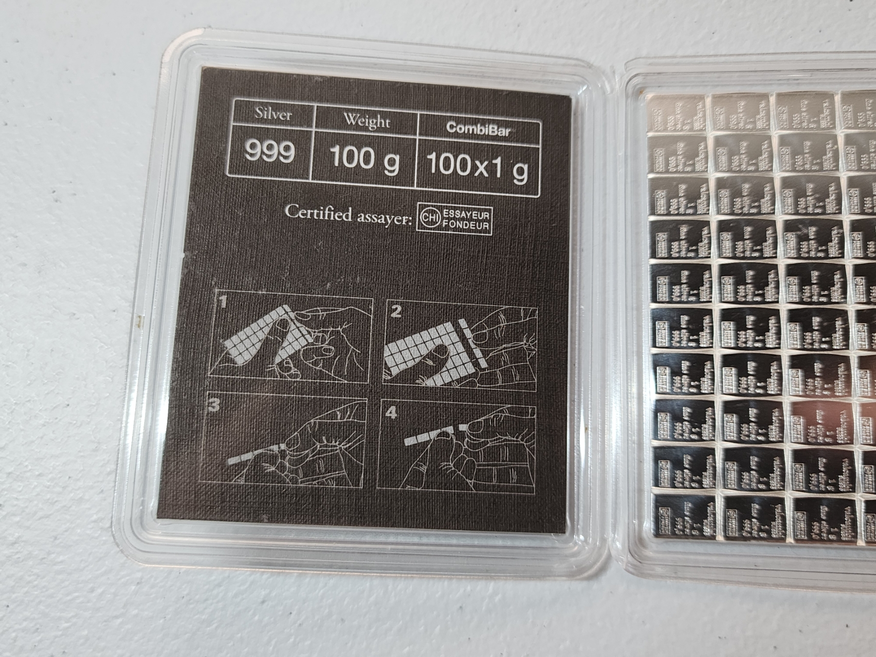 100g Silver Valcambi Suisse CombiBar (100 x 1 Gram) 999 Fine Silver- Sealed Package