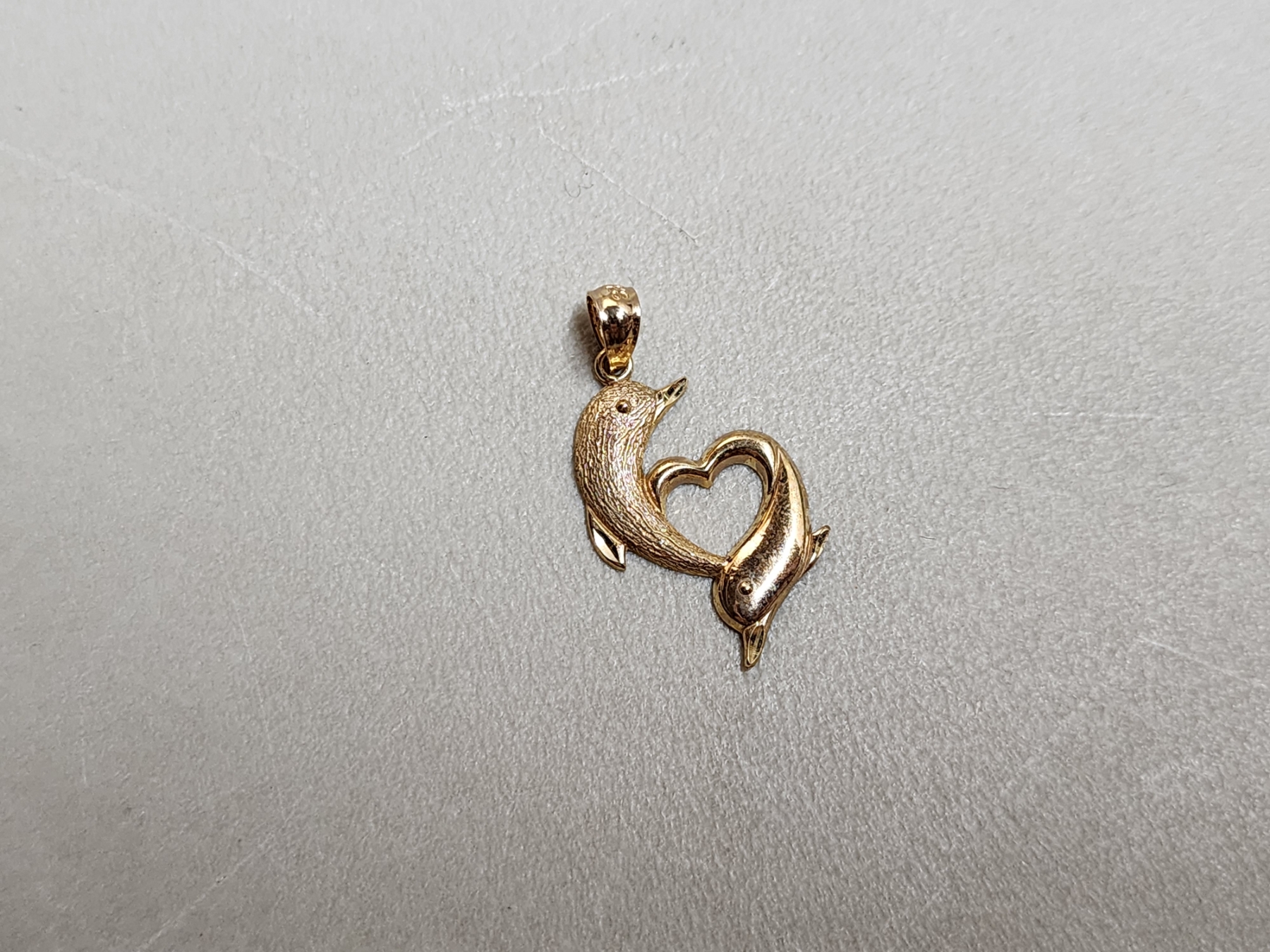 10K Gold Dolphin Heart Pendant Total Weight 0.8g