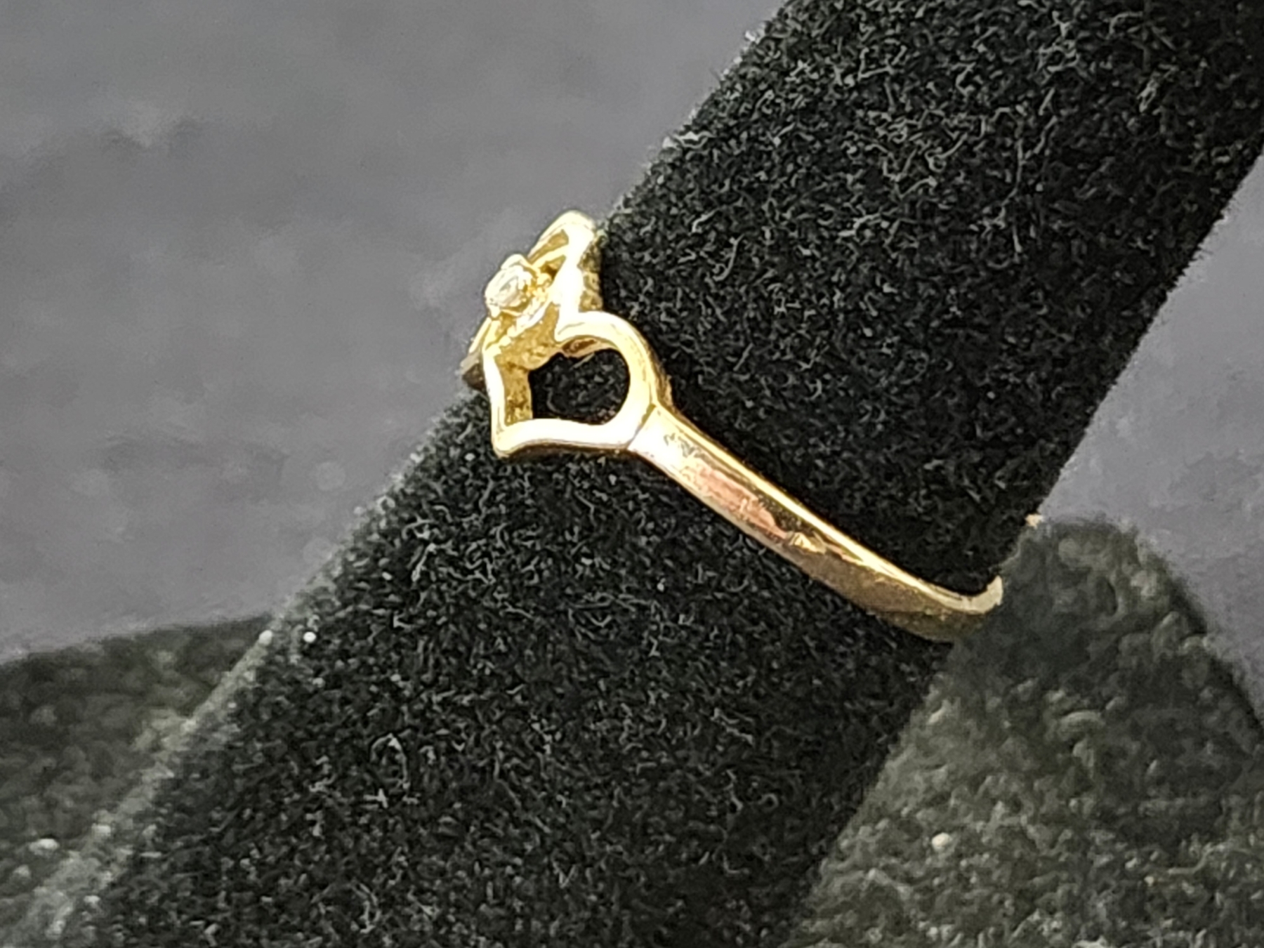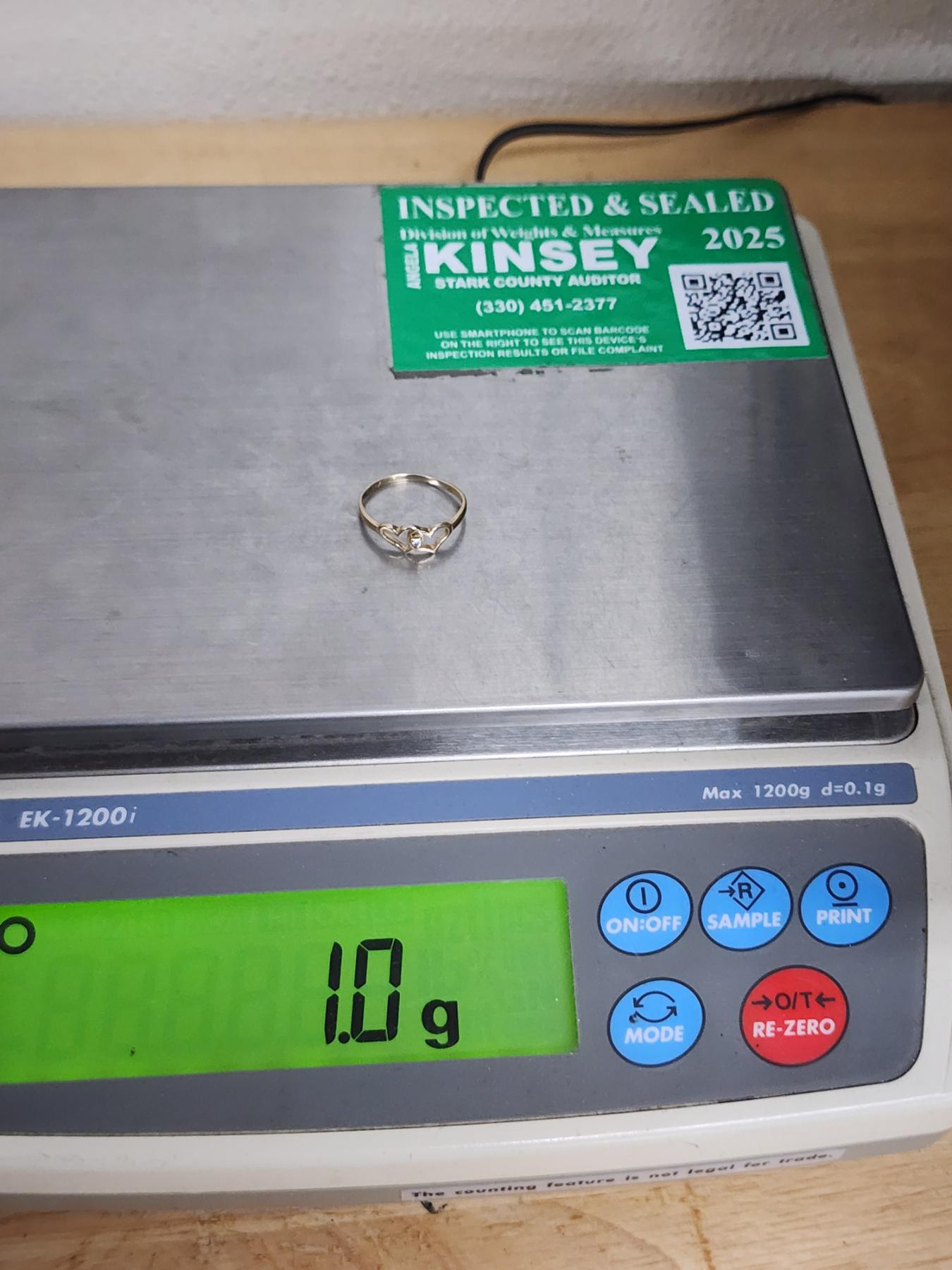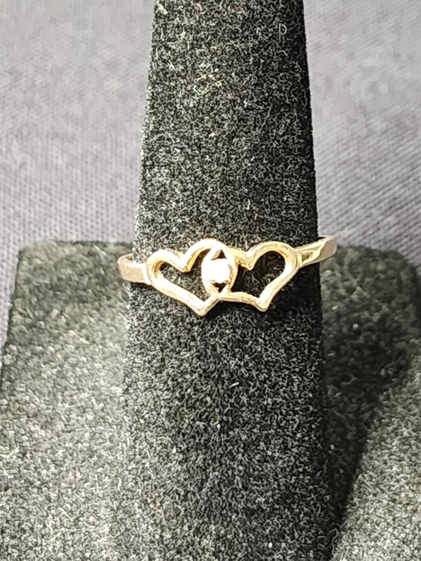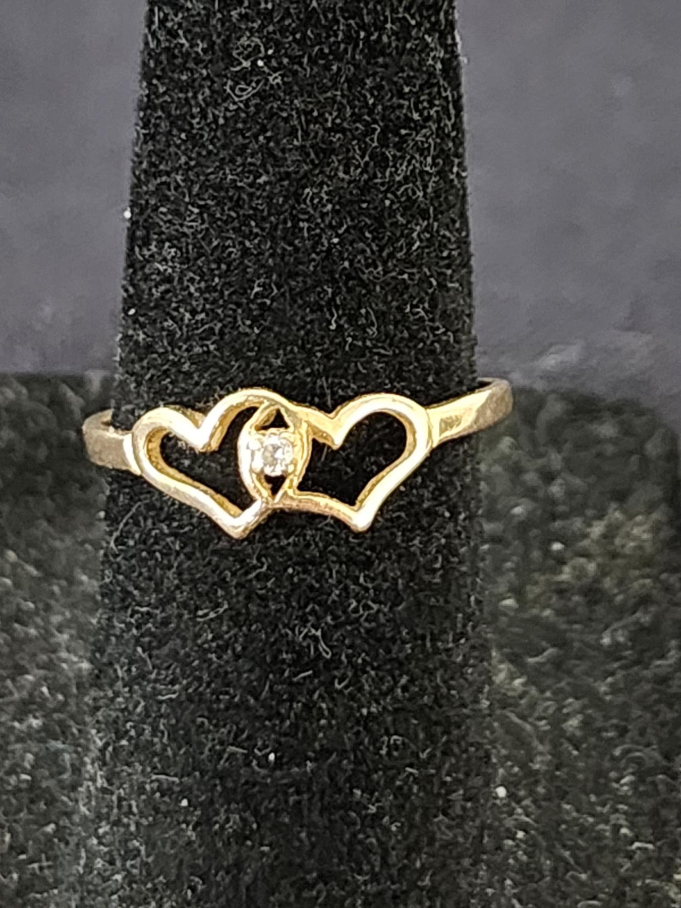 10K Gold Heart Ring With Small Diamond Stone - Size 5 - Weighs 1 Gram