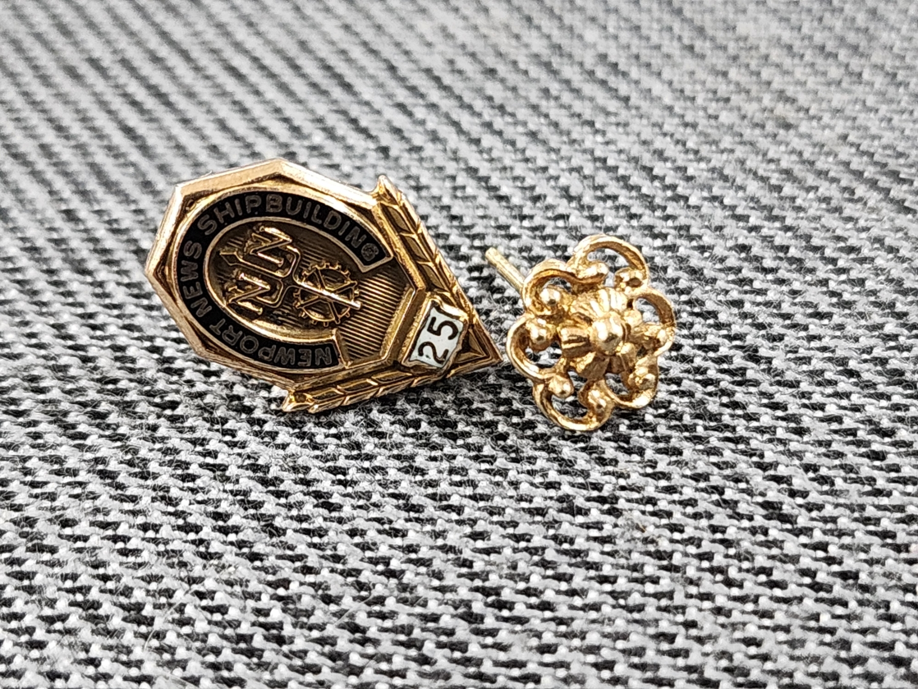 10K Gold Lot Ft. Newport News Shipbuilding Pin & Loose Earring - Total Weight of 2.5 Grams