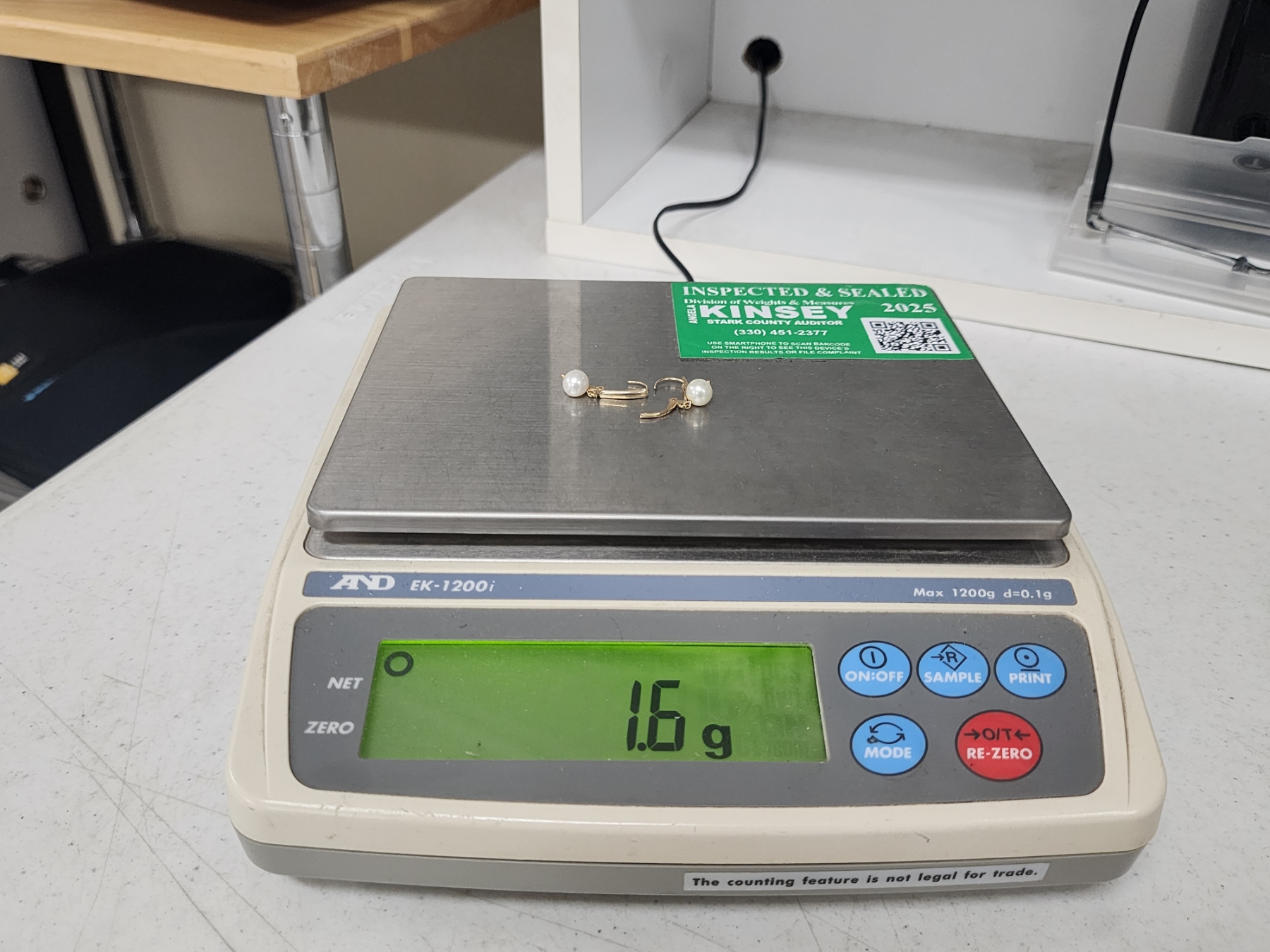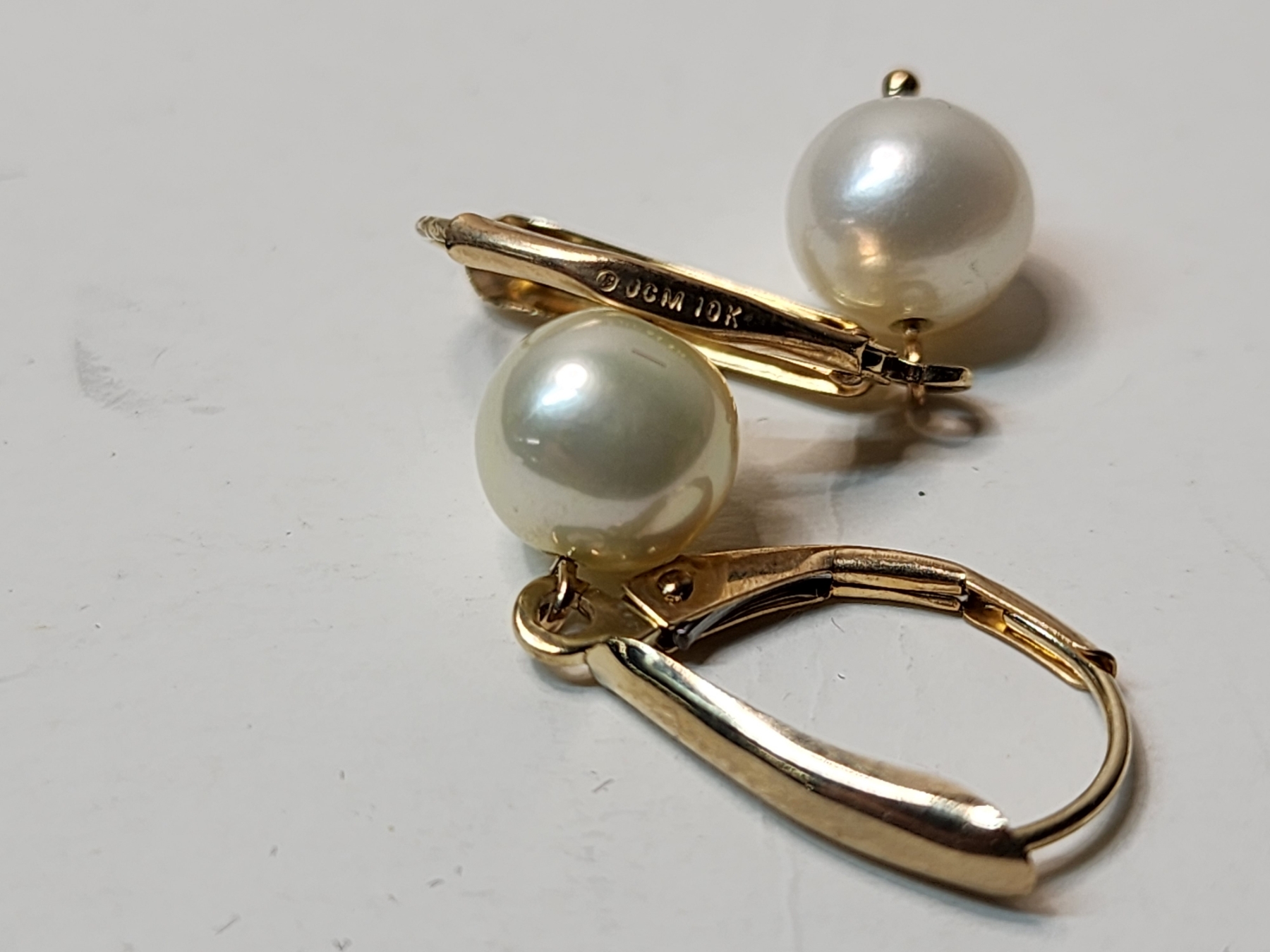 10K Gold Pearl Earrings Total Weight 1.6g