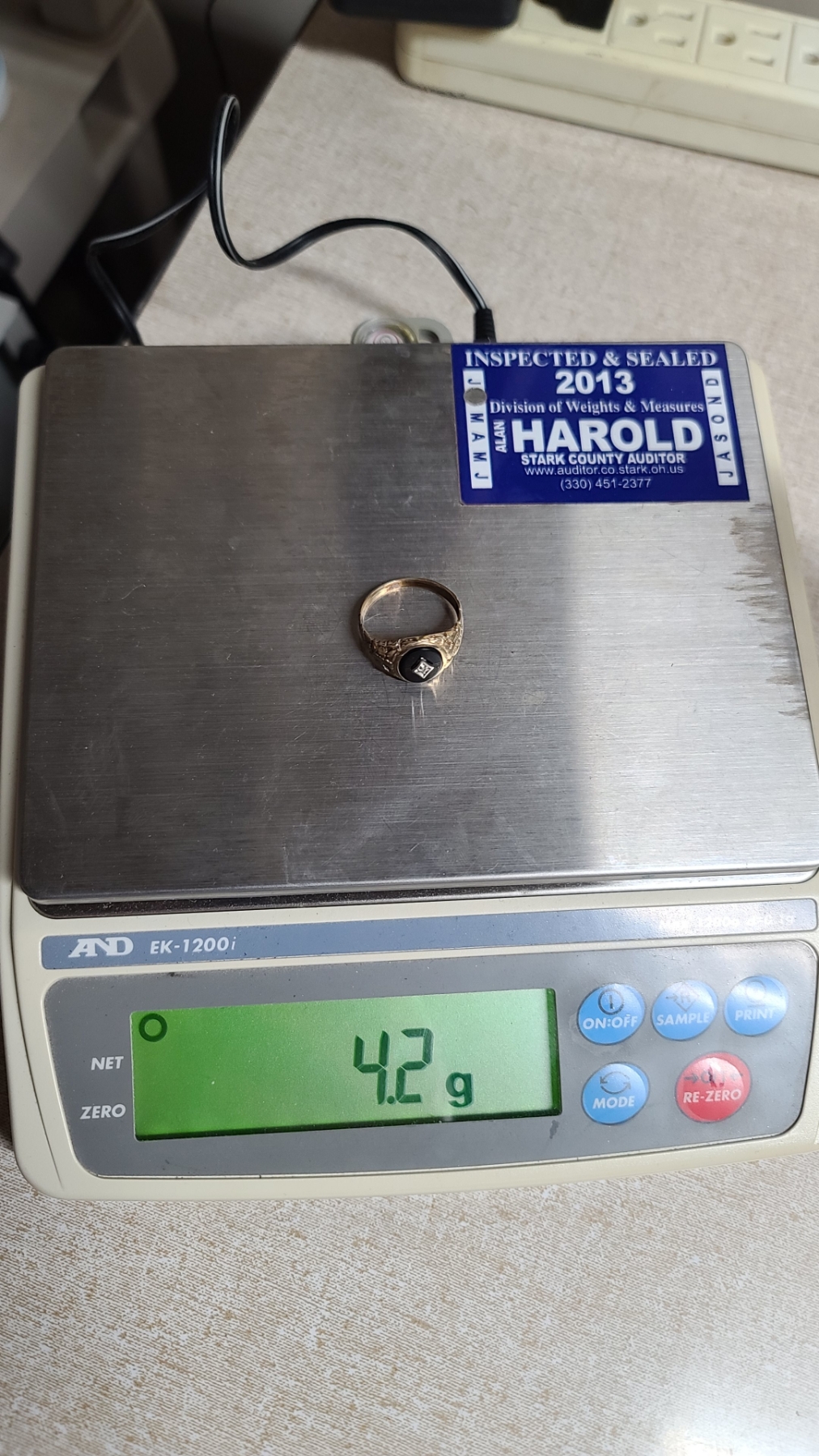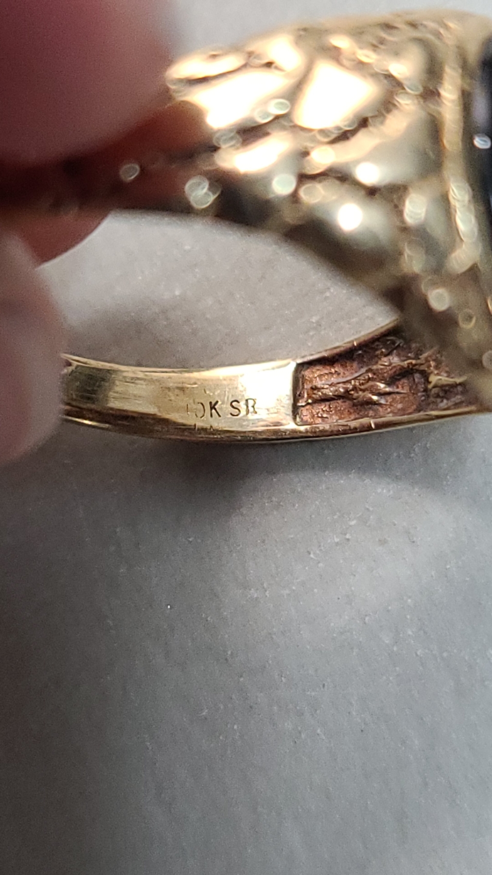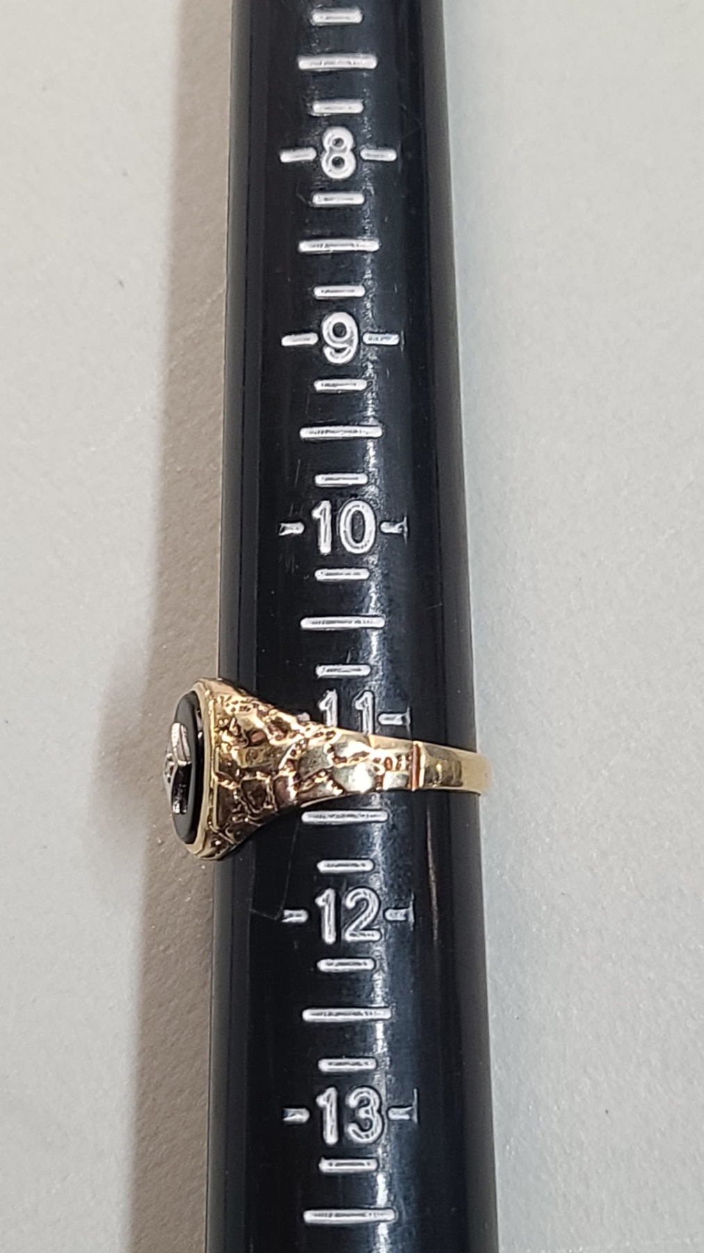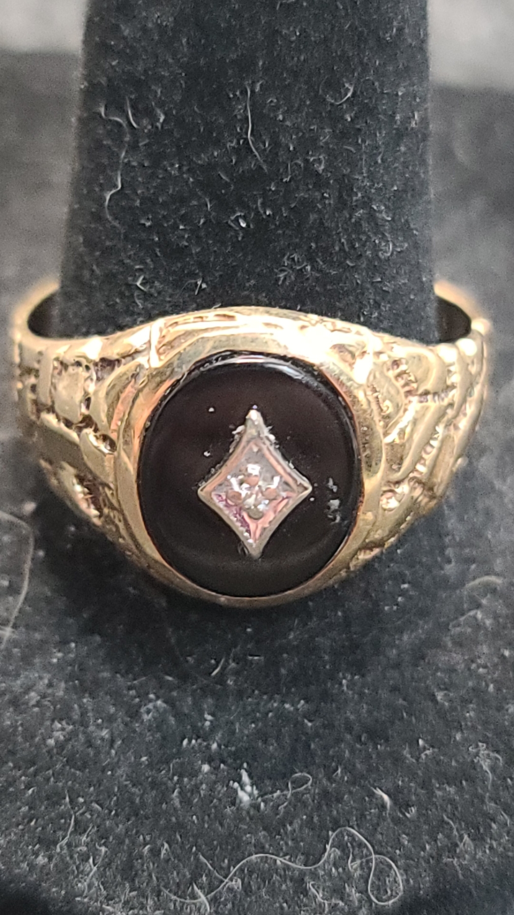 10K Gold Ring With Black & Clear Stone 4.2 Grams