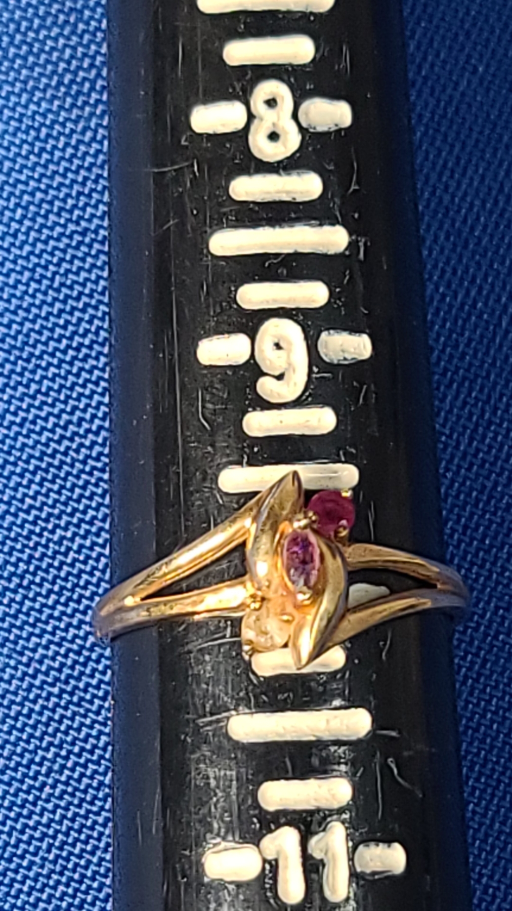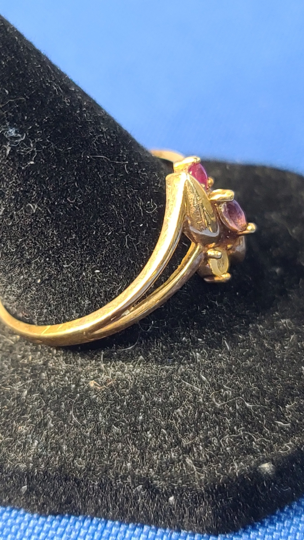 10K Gold Ring With Multi-Colored Stones - Size 10 - Weight: 2.3g