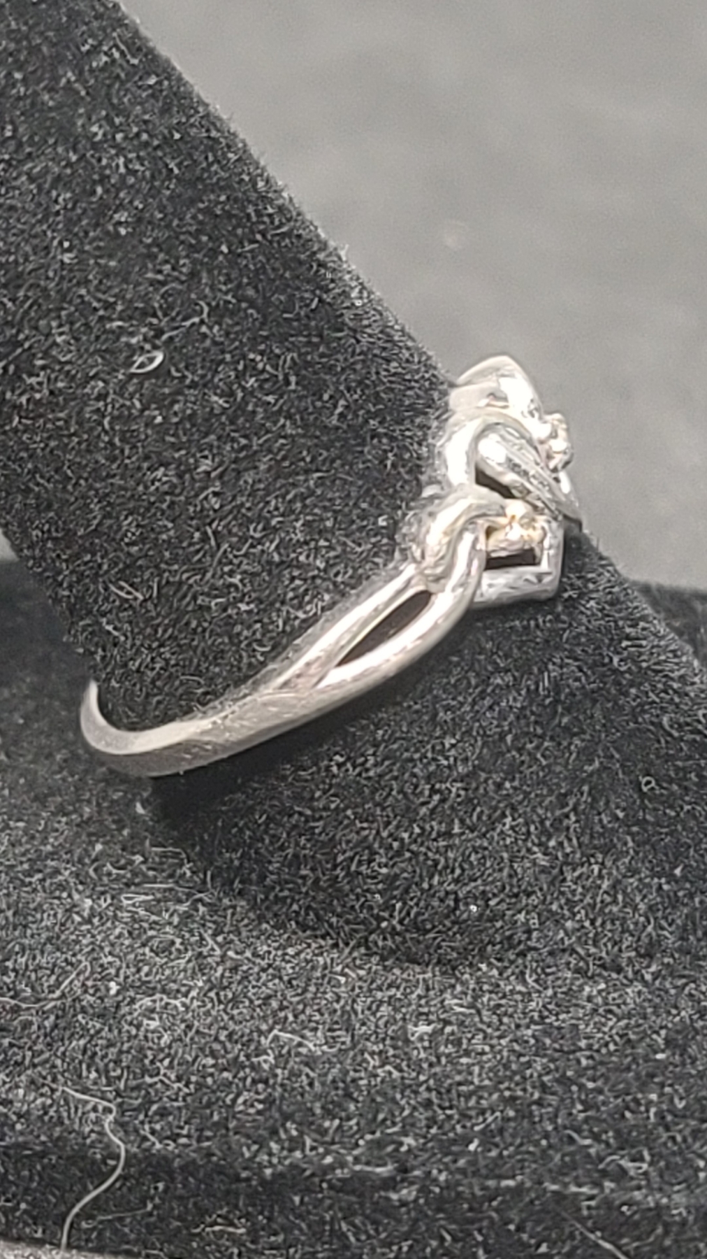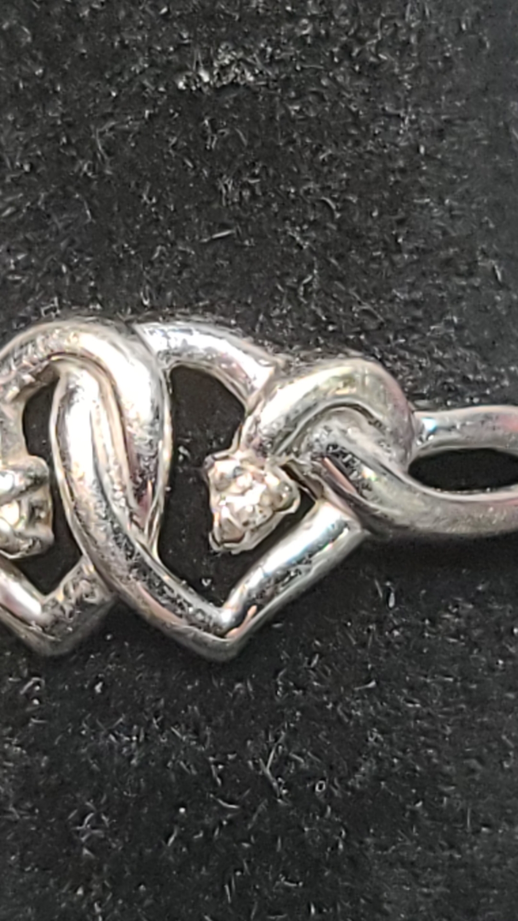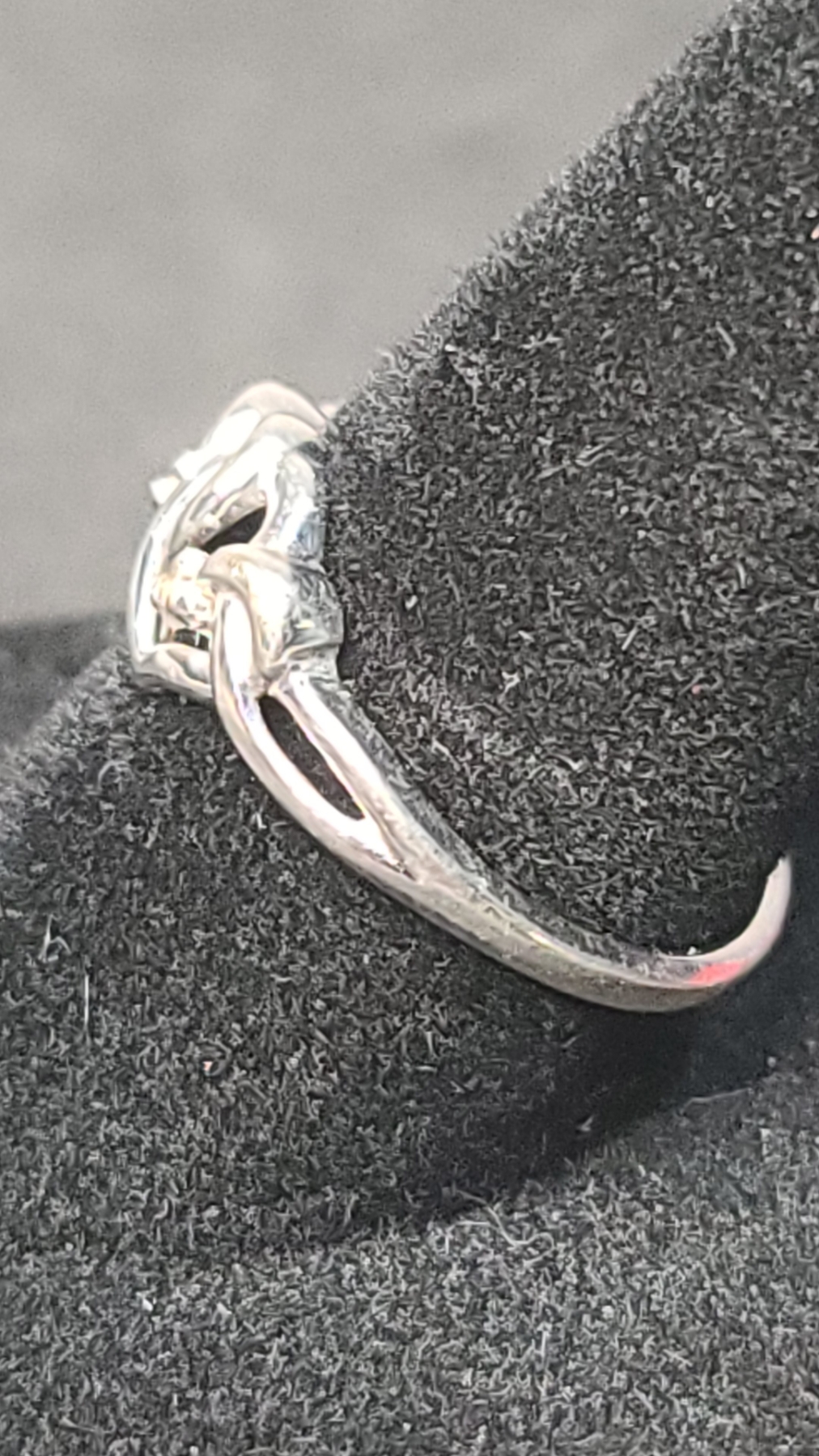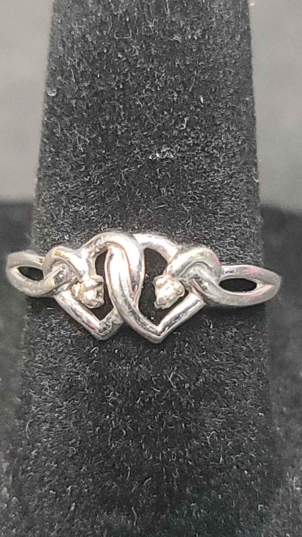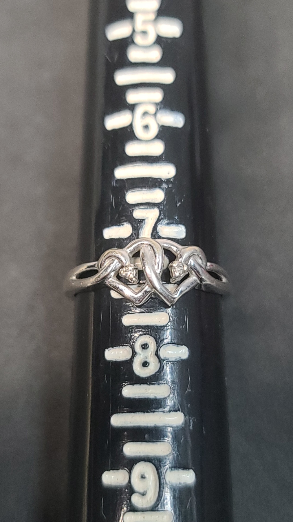 10K White Gold Interlocking Double Heart Infinity Band Ring With Diamonds - Size: 7.5 - Weight: 1.6g