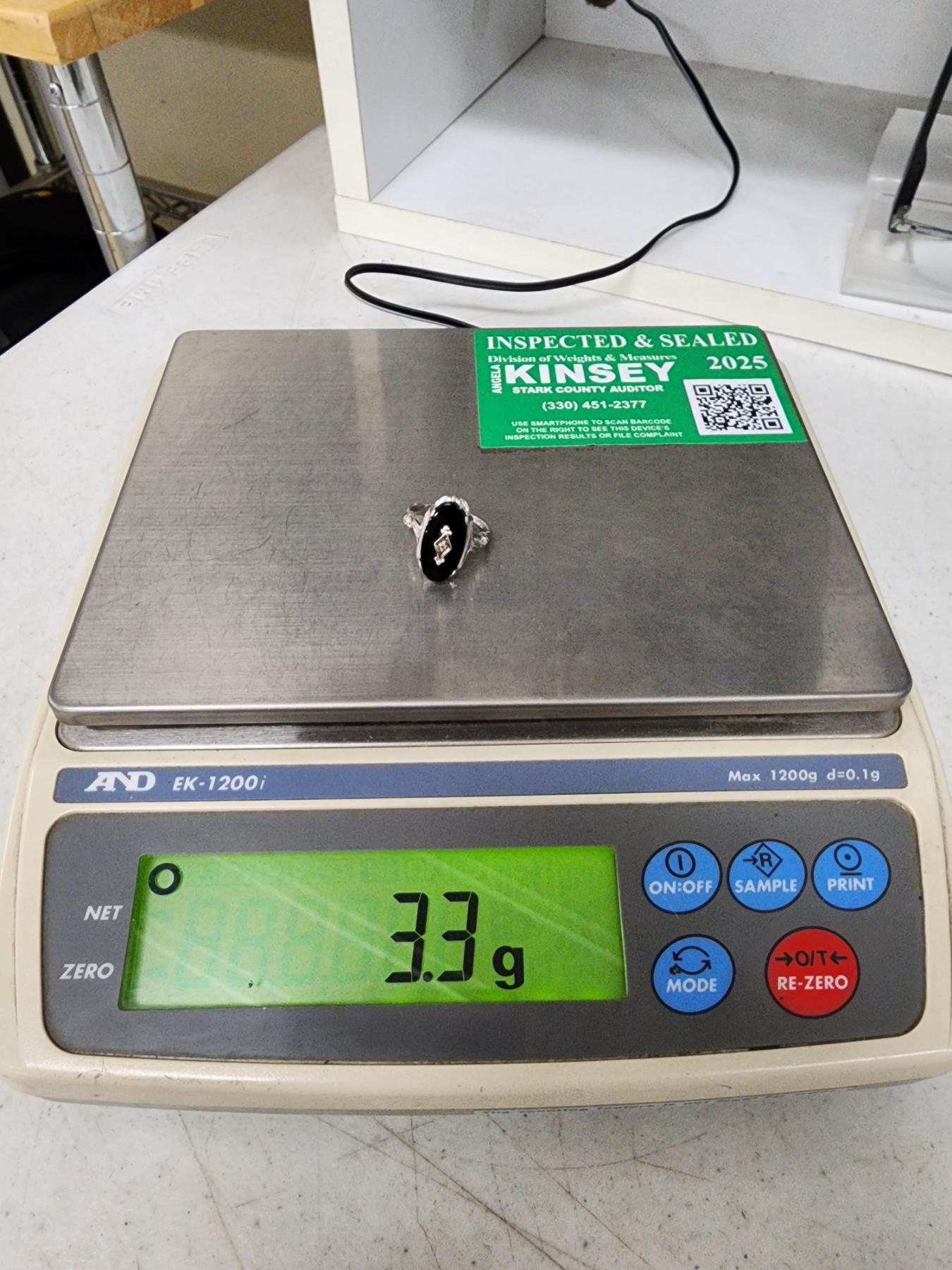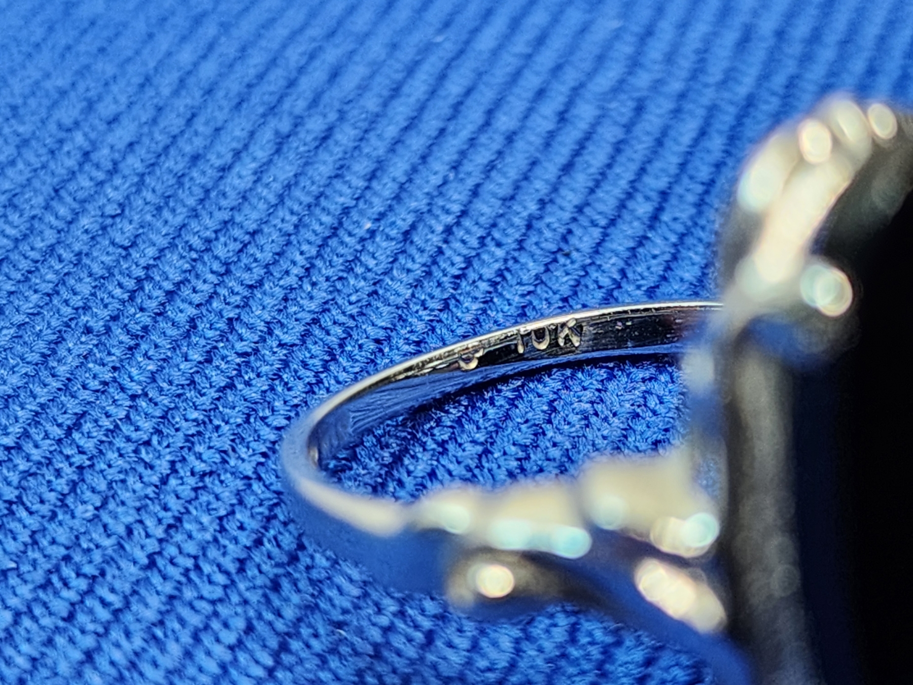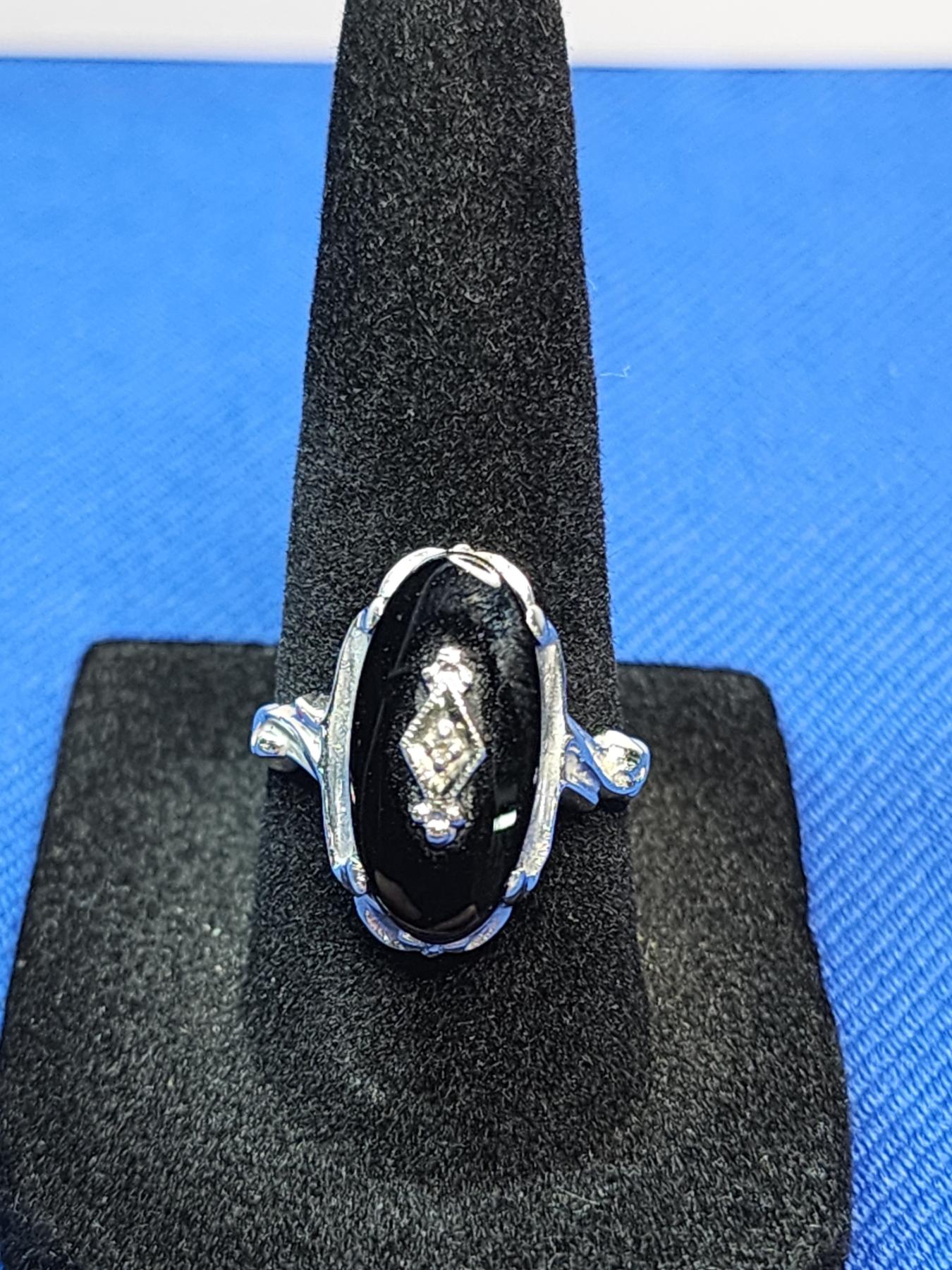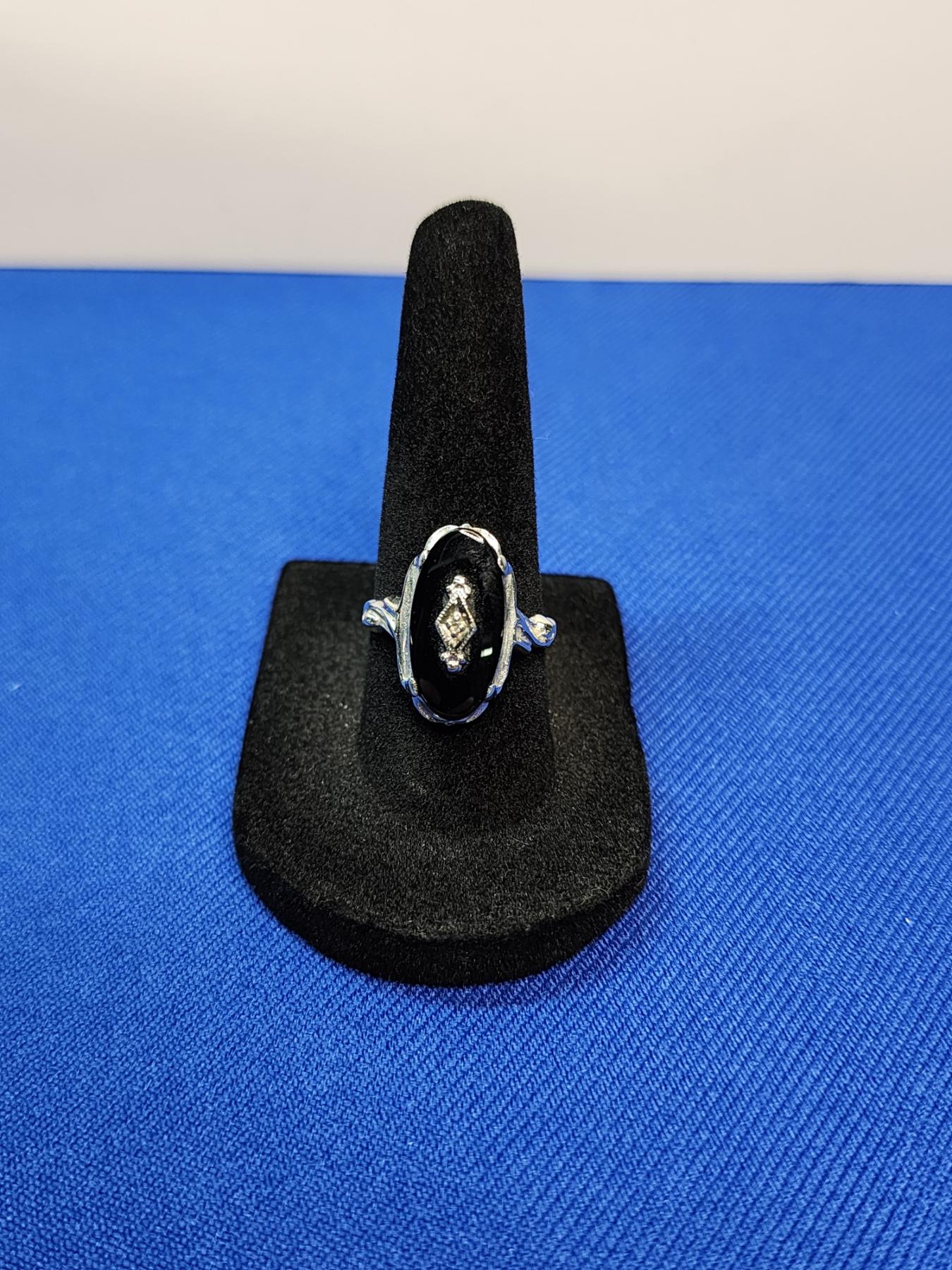 10K White Gold Ring w/ Black Gemstone - Size 7 - 3.3g