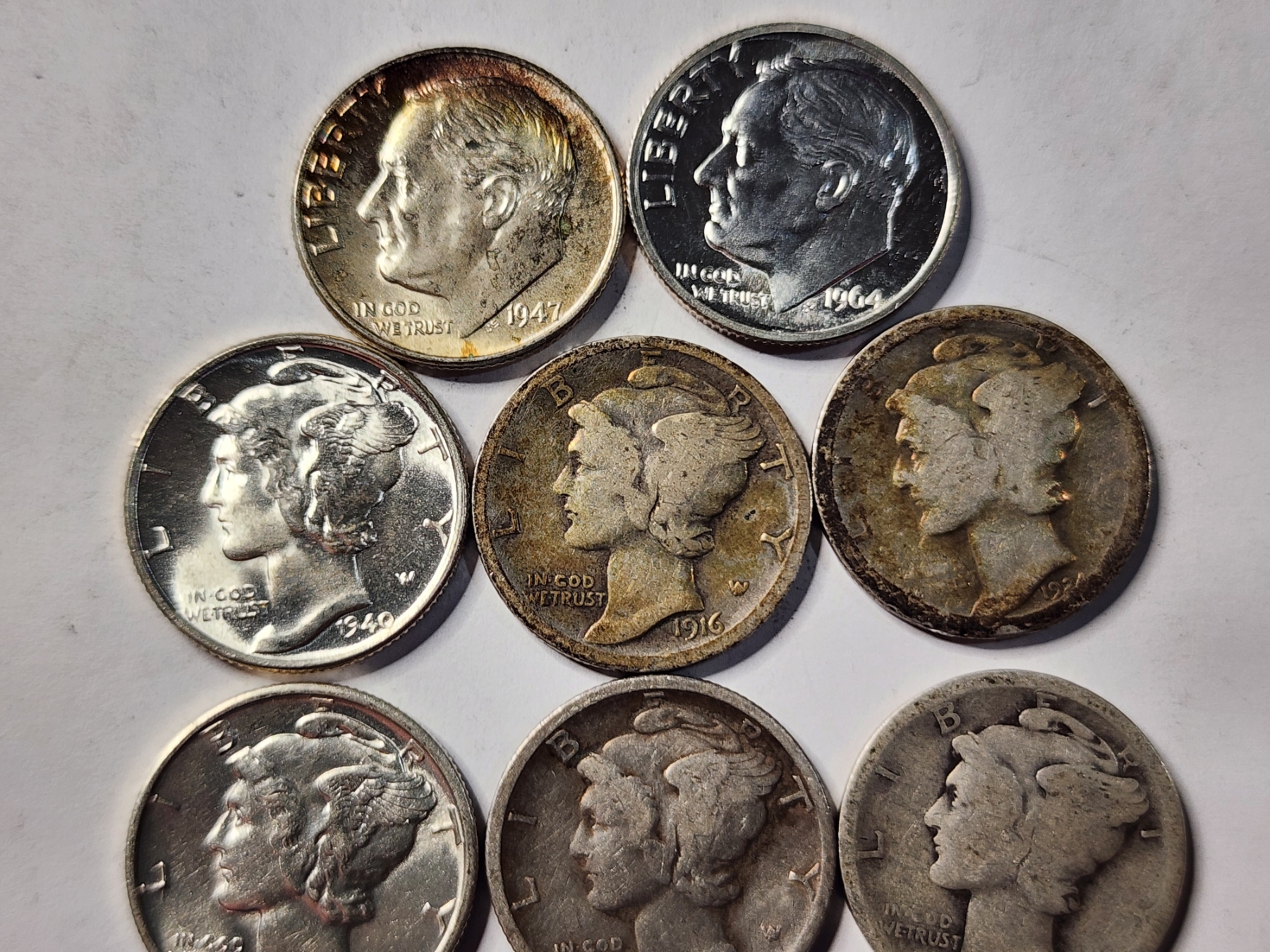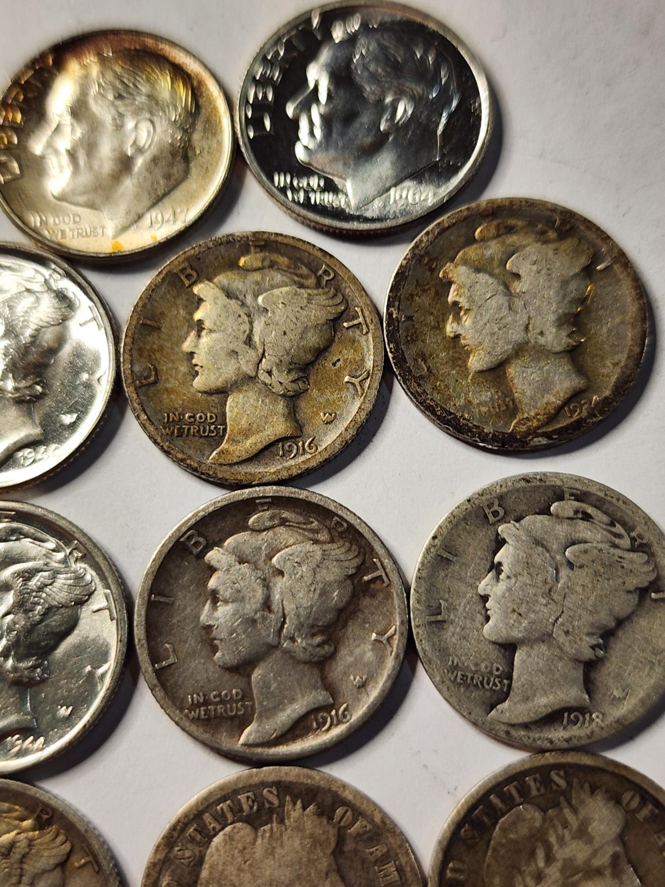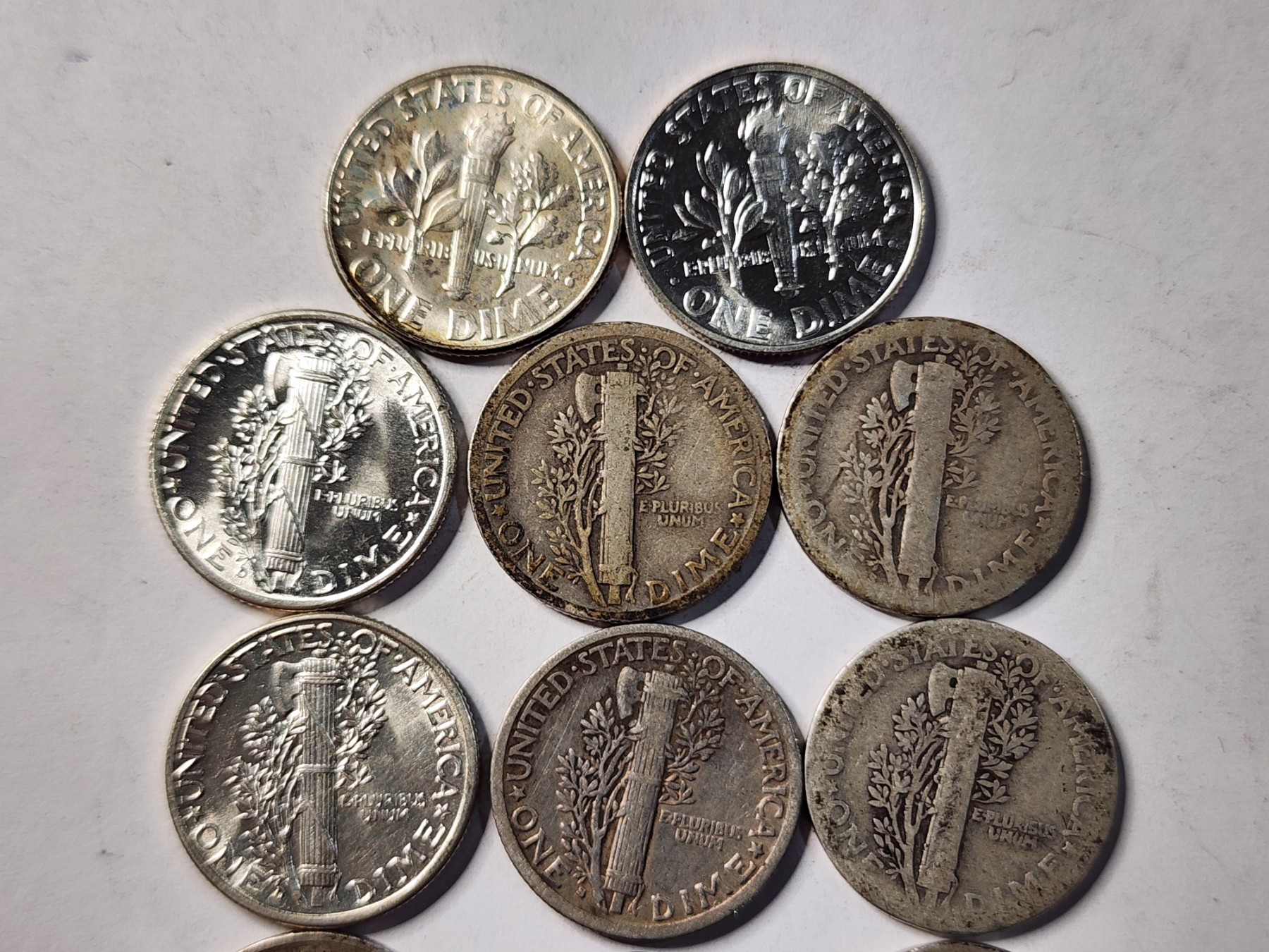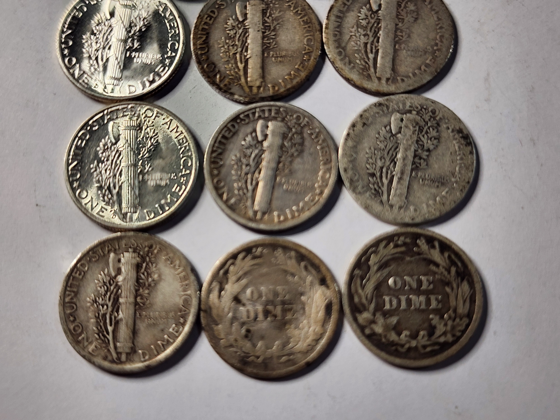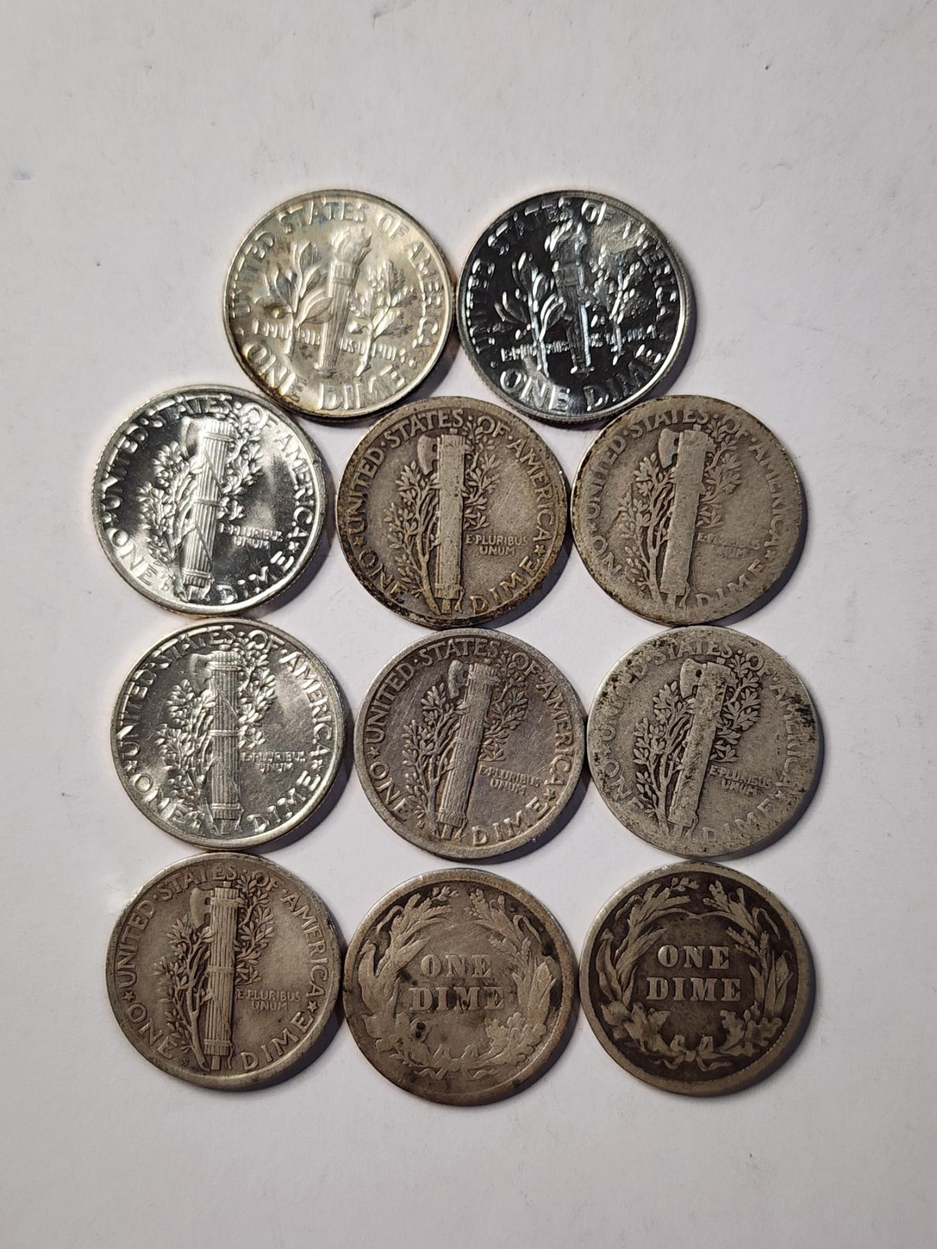 11 Assorted 90% Silver United States Dimes Including Barbers, Mercury & Roosevelt ~ DATING BACK TO 1892 ~ FACE VALUE $1.10