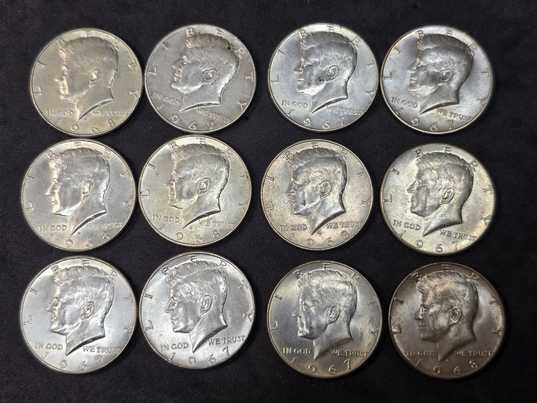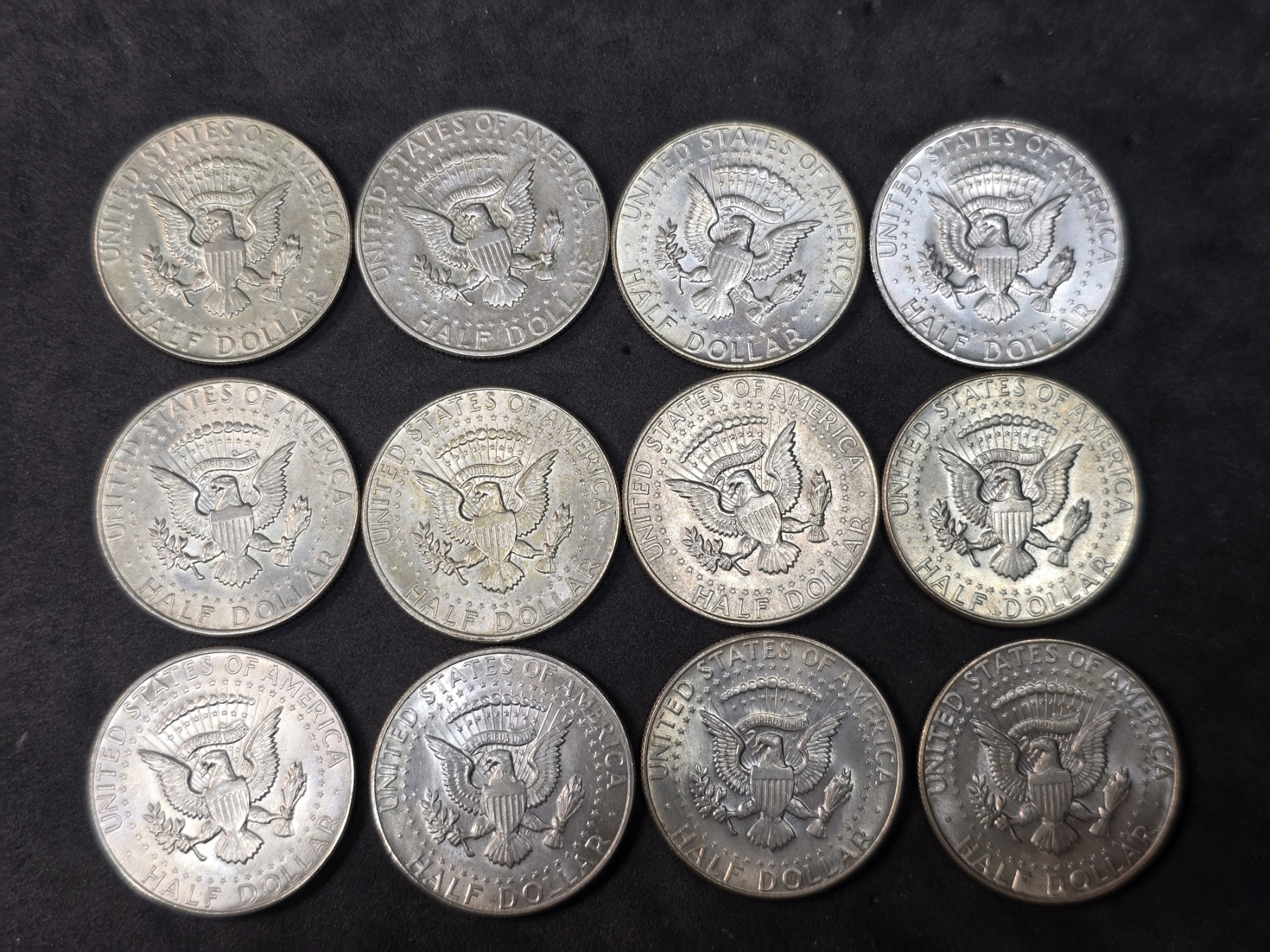 (12) Kennedy Half Dollars 40% Silver - $6 FV