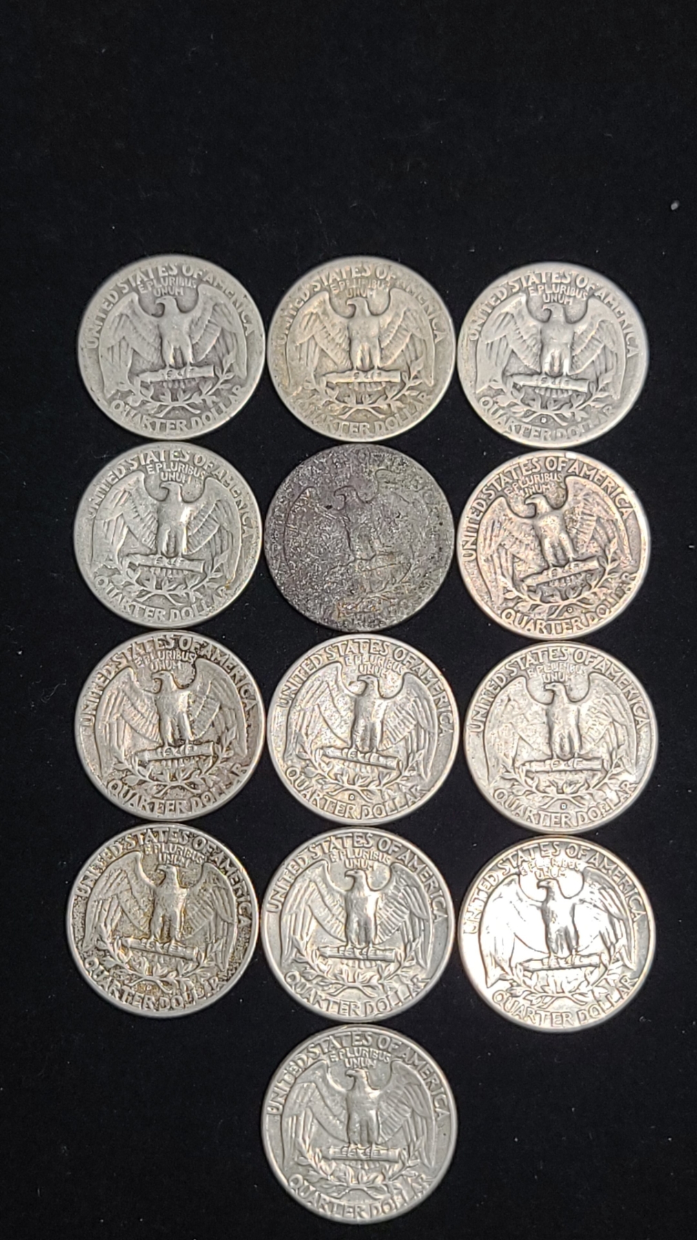 (13) Assorted Years/Mint Marks 90% Silver Washington Head Quarters - Face Value: $3.25