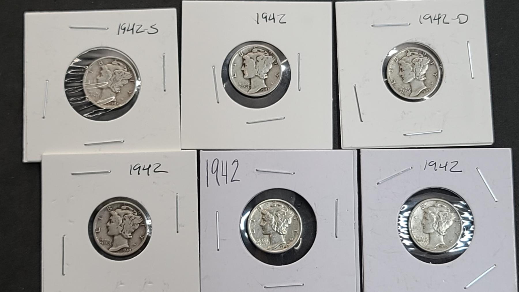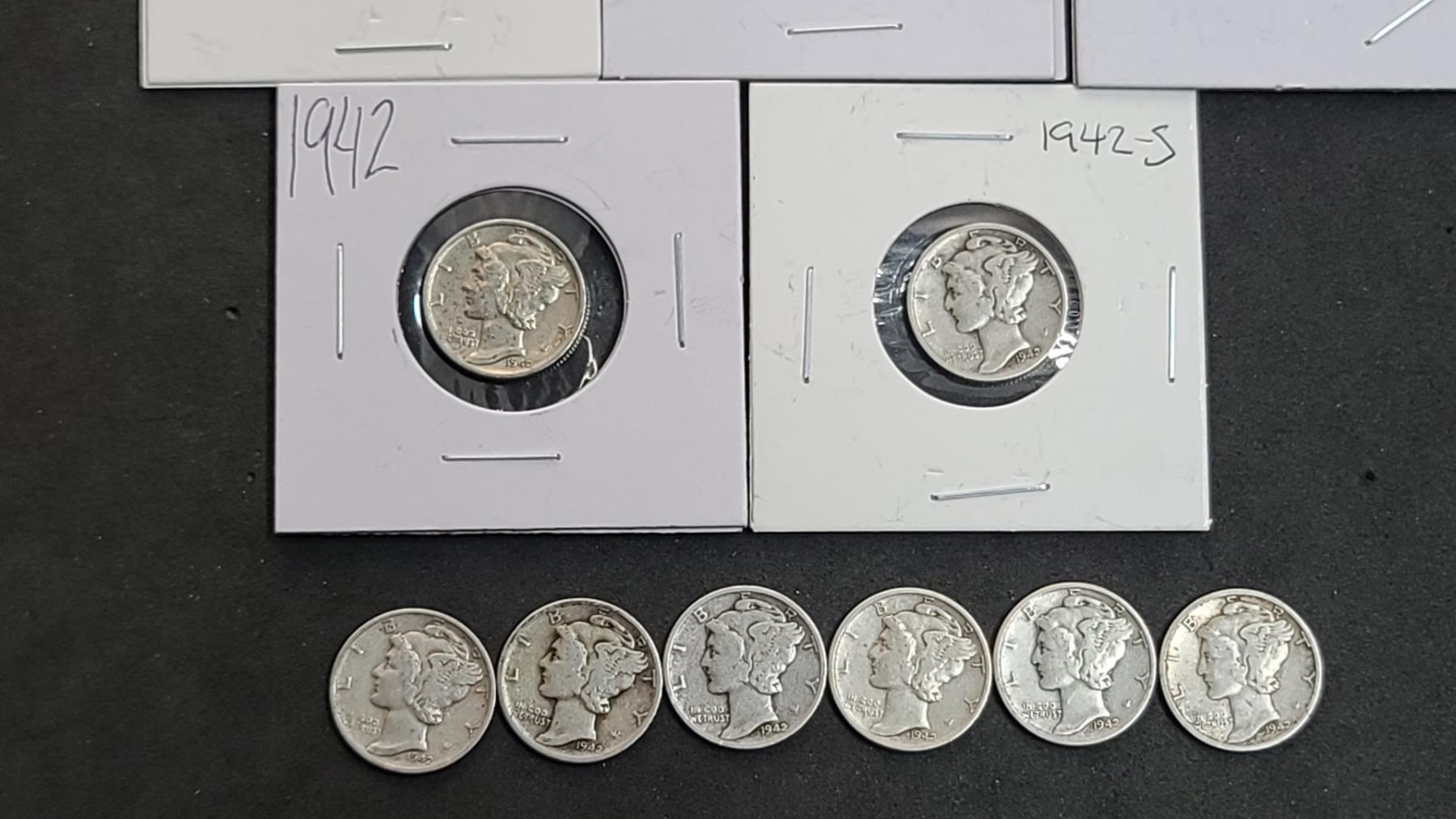 (14) 1942/1942-S 90% Silver Mercury Dimes - Face Value: $1.40