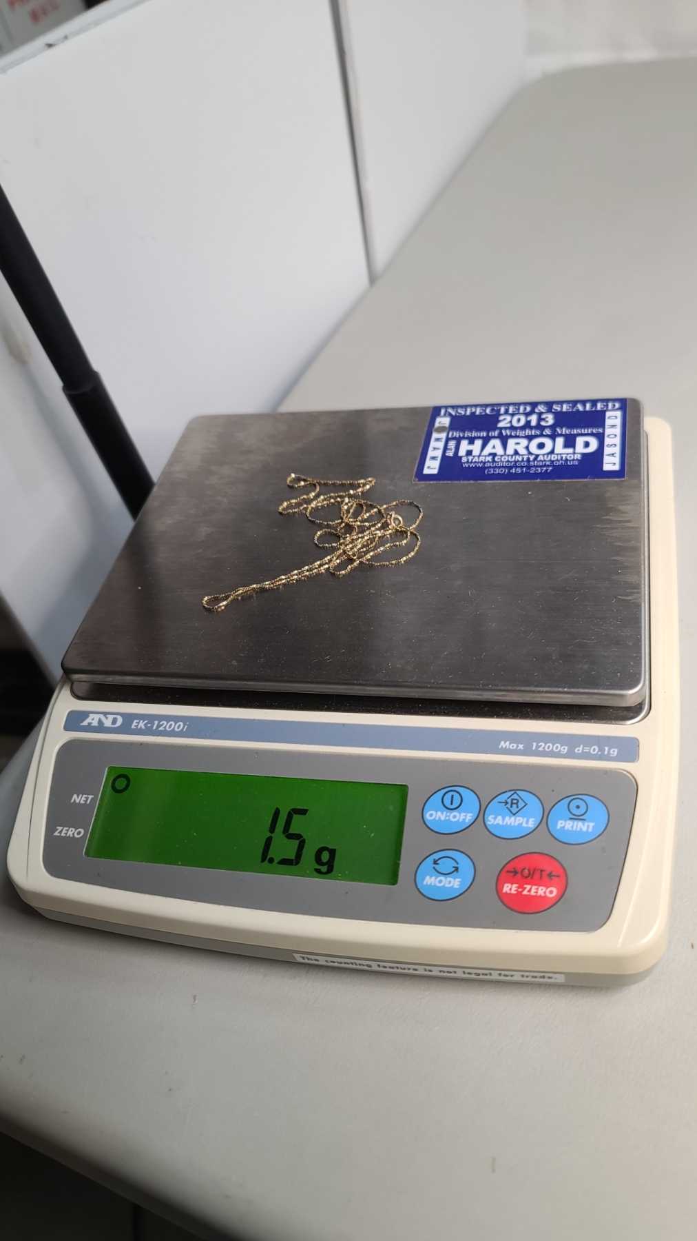 14K Gold Chain With Gold Tone Pendant - Chain Weight: 1.5g