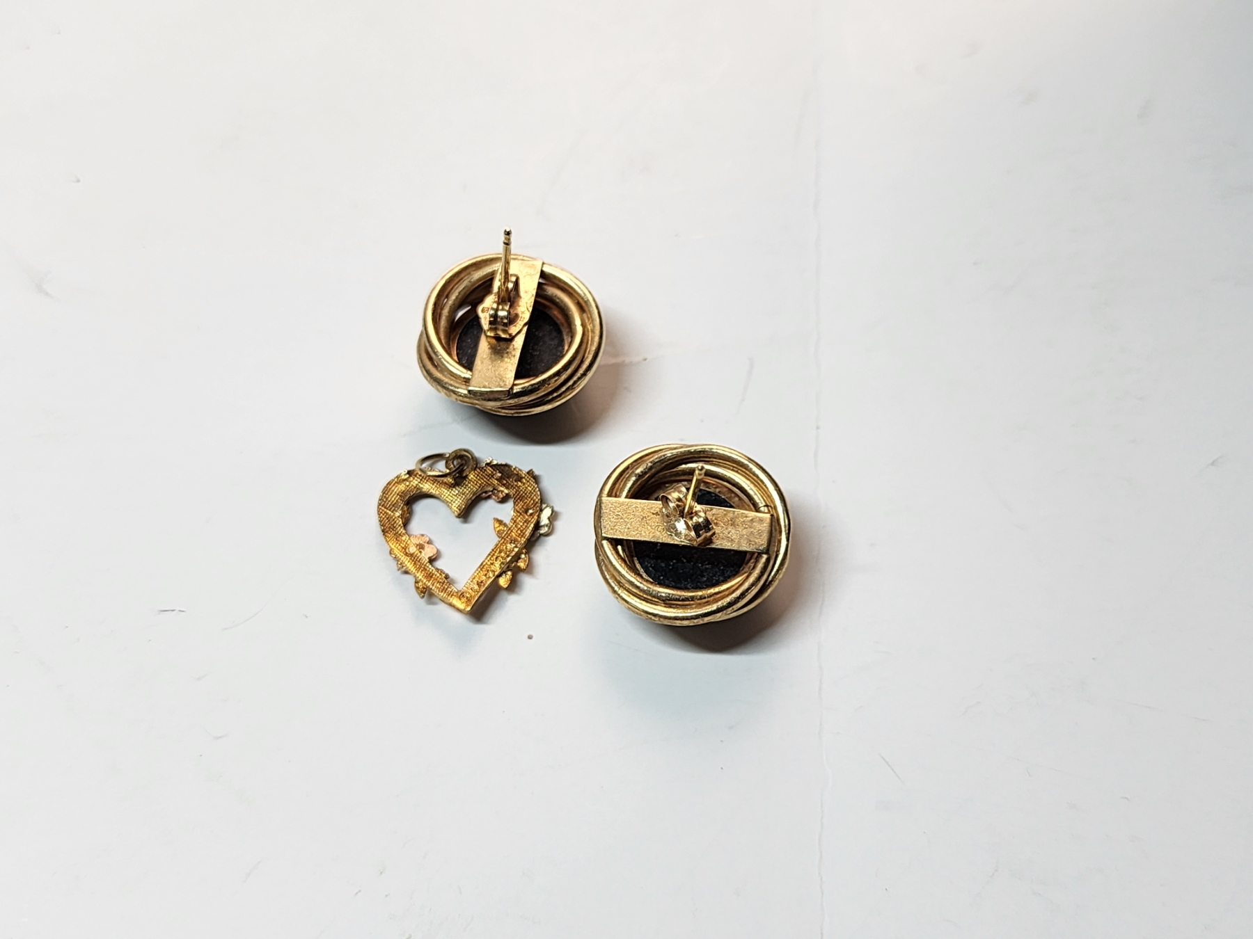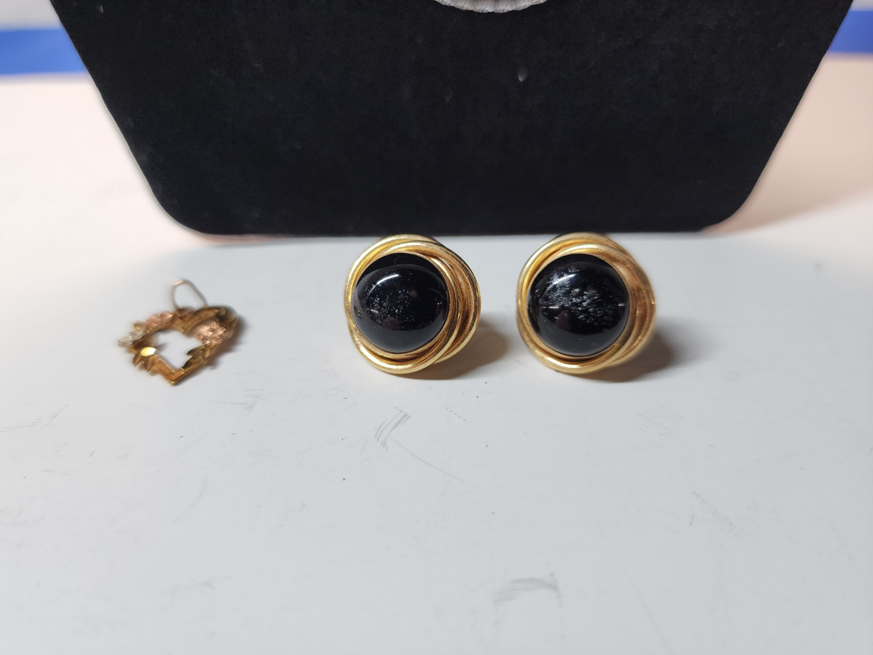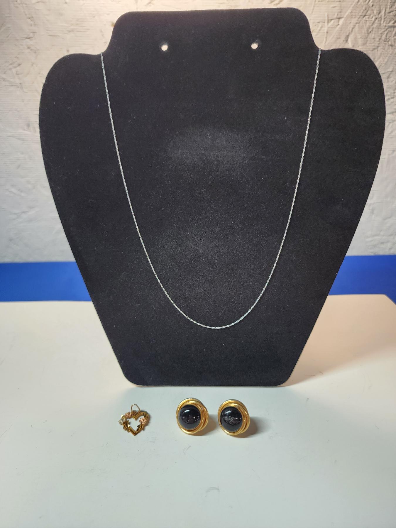14K Gold Jewelry: Heart Pendant, White Gold Chain, Onyx Stud Earrings