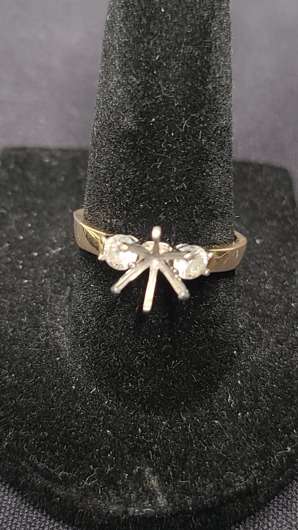 14K Gold Ring Weighing 2.3 Grams - Missing Main Stone With Small Clear Stones
