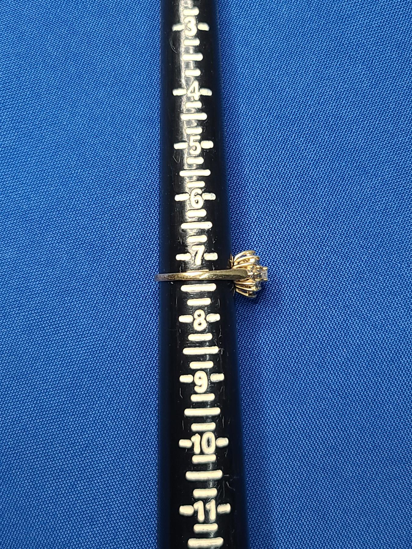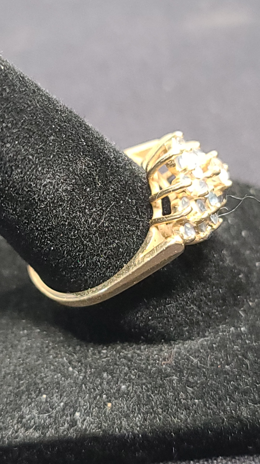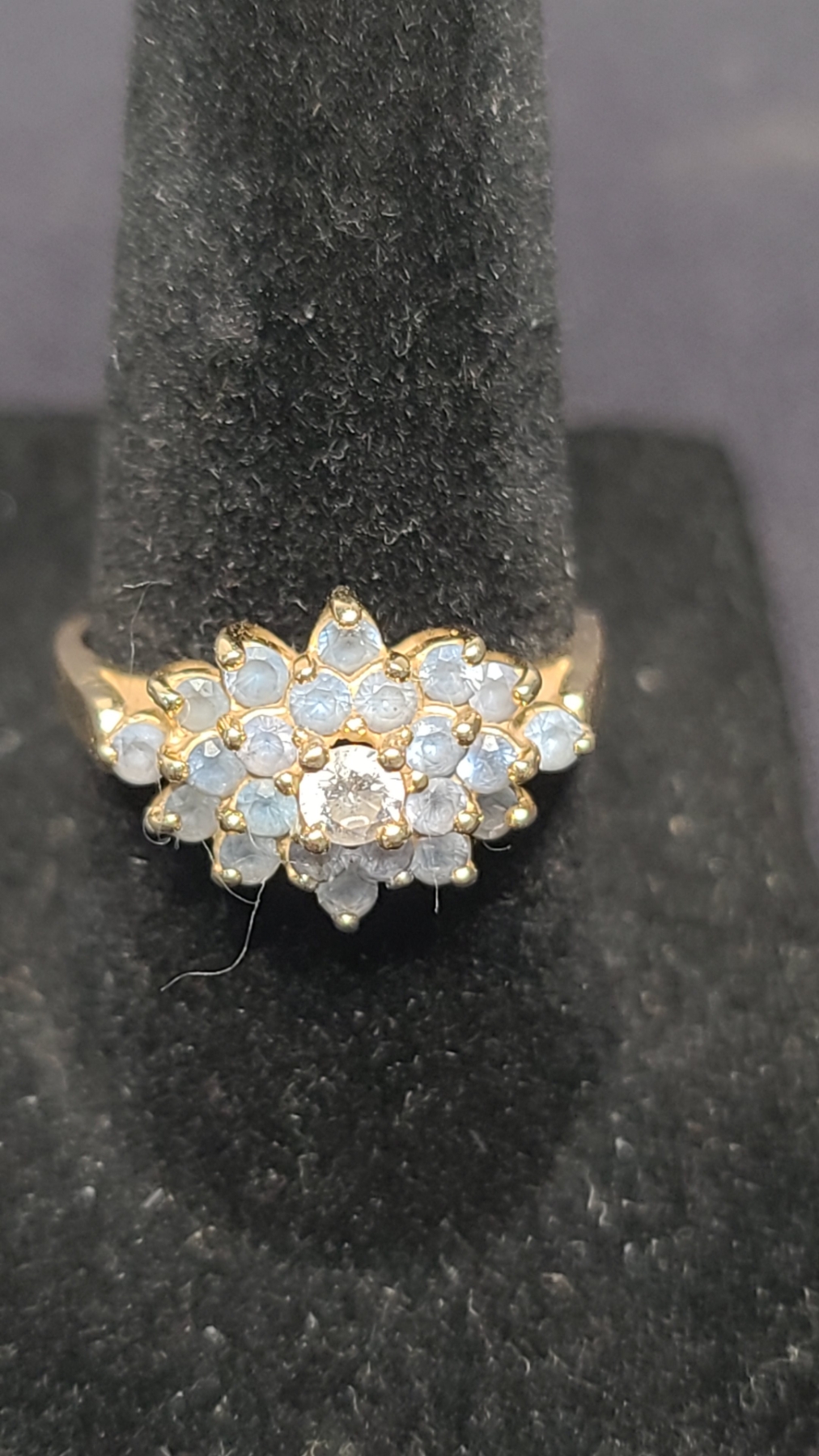 14K Gold Ring Weighing 4.0 Grams Ft. Many Small Blue Stones & One Clear