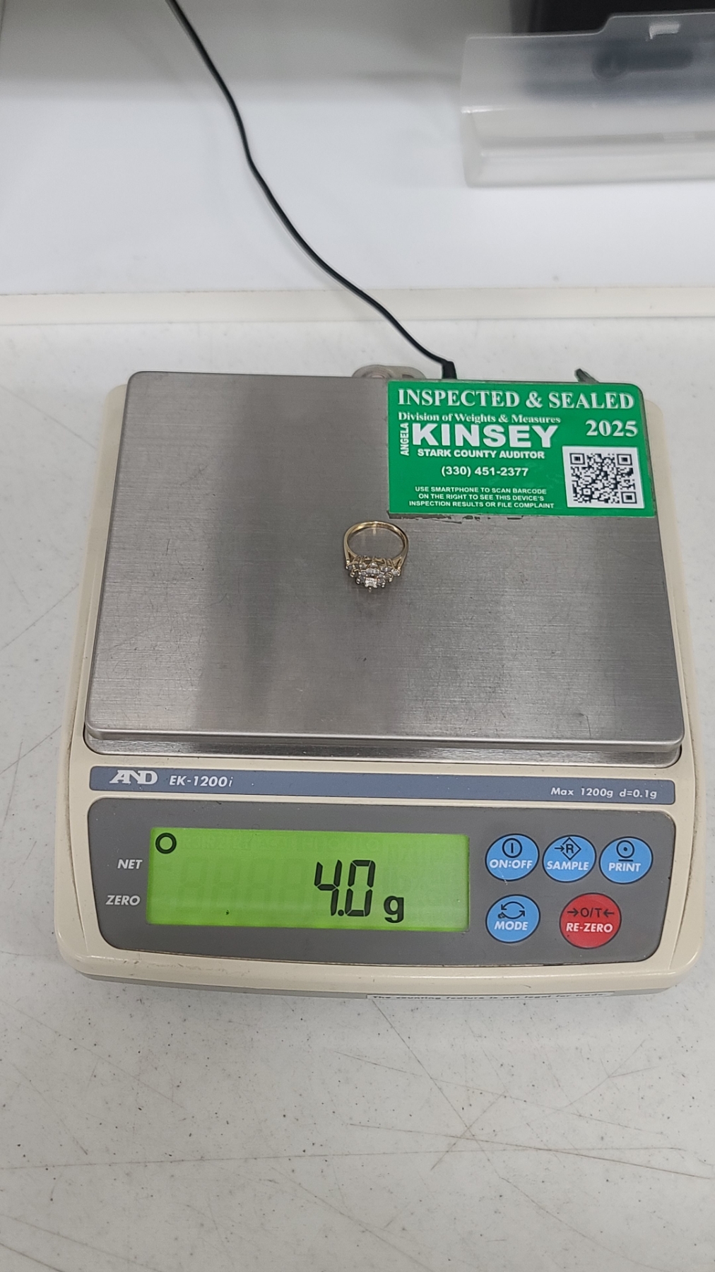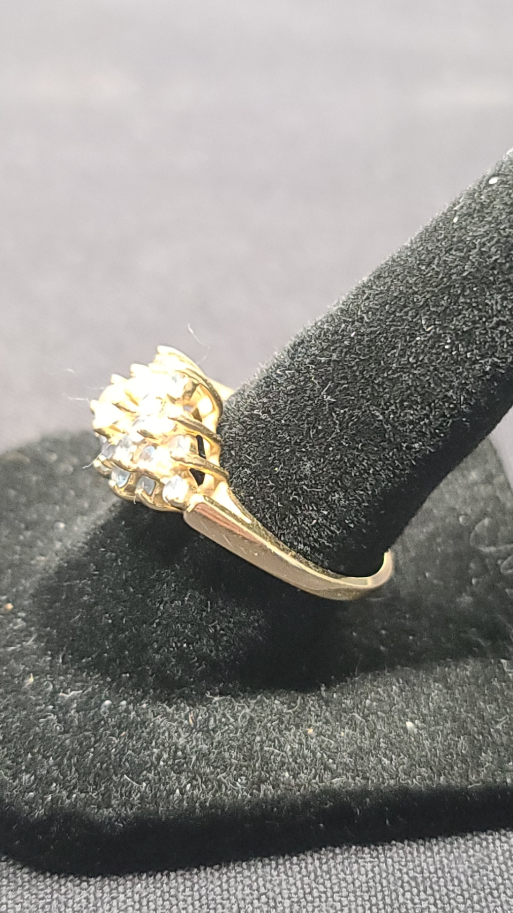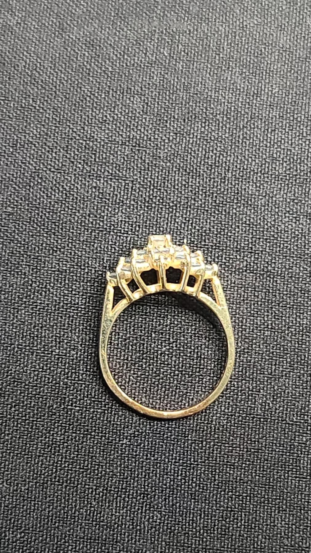 14K Gold Ring Weighing 4.0 Grams Ft. Many Small Blue Stones & One Clear