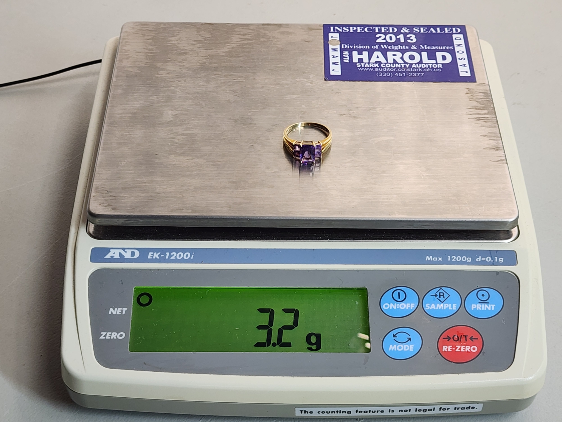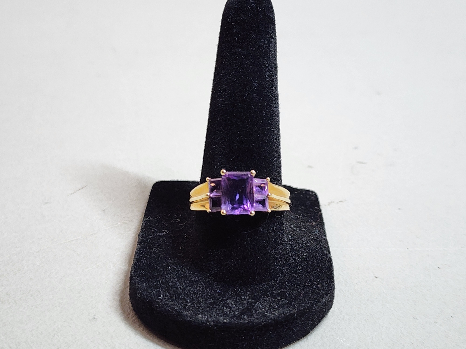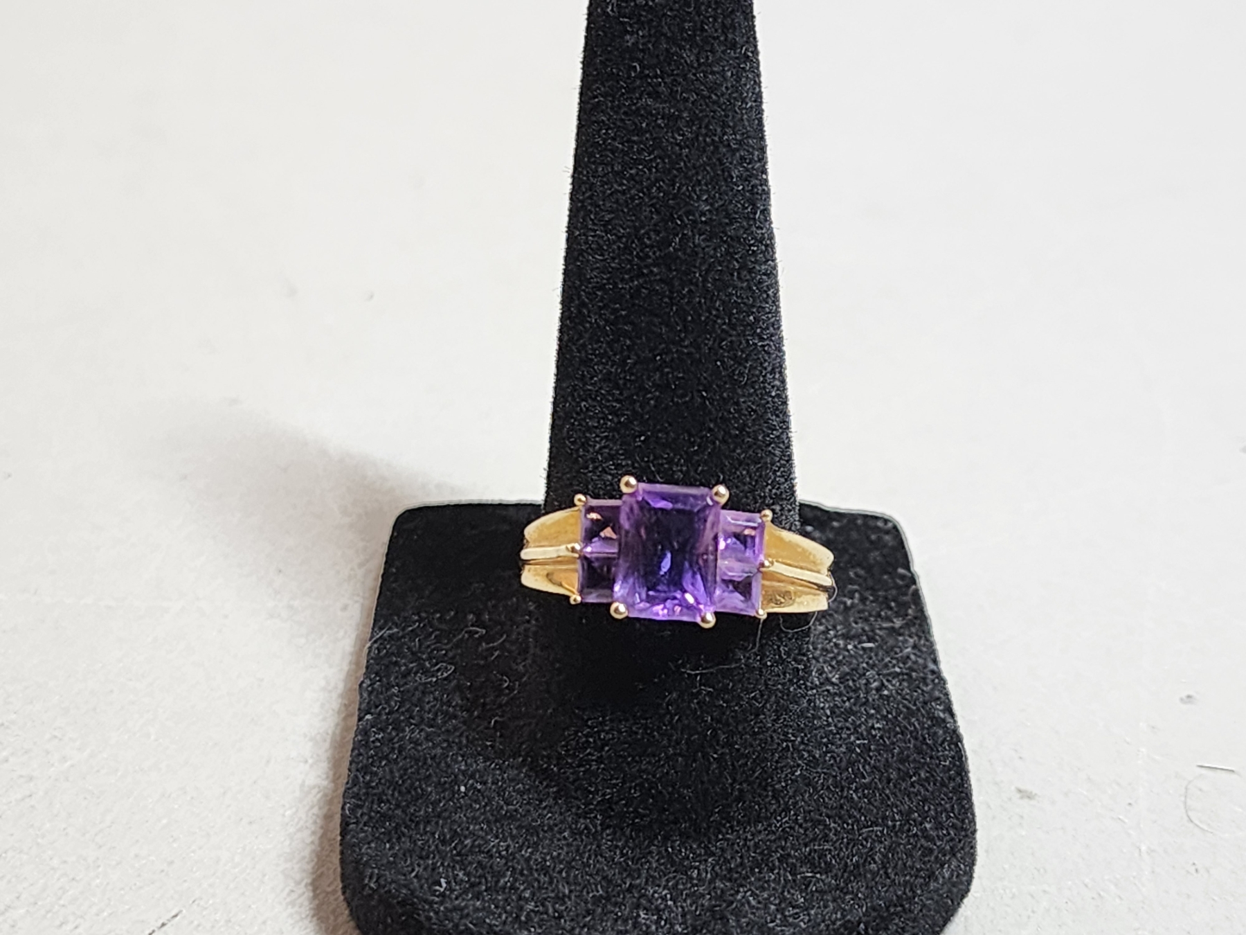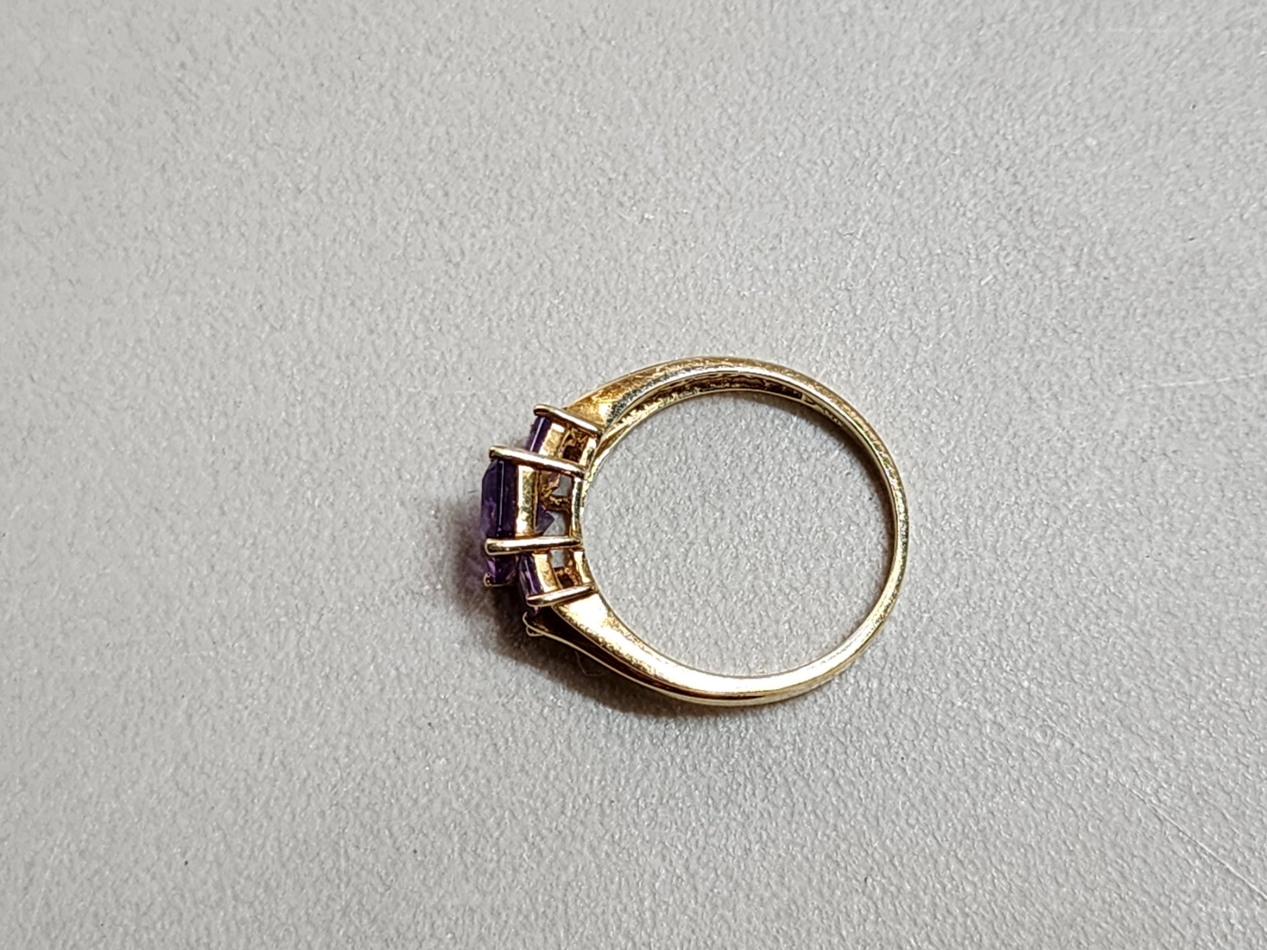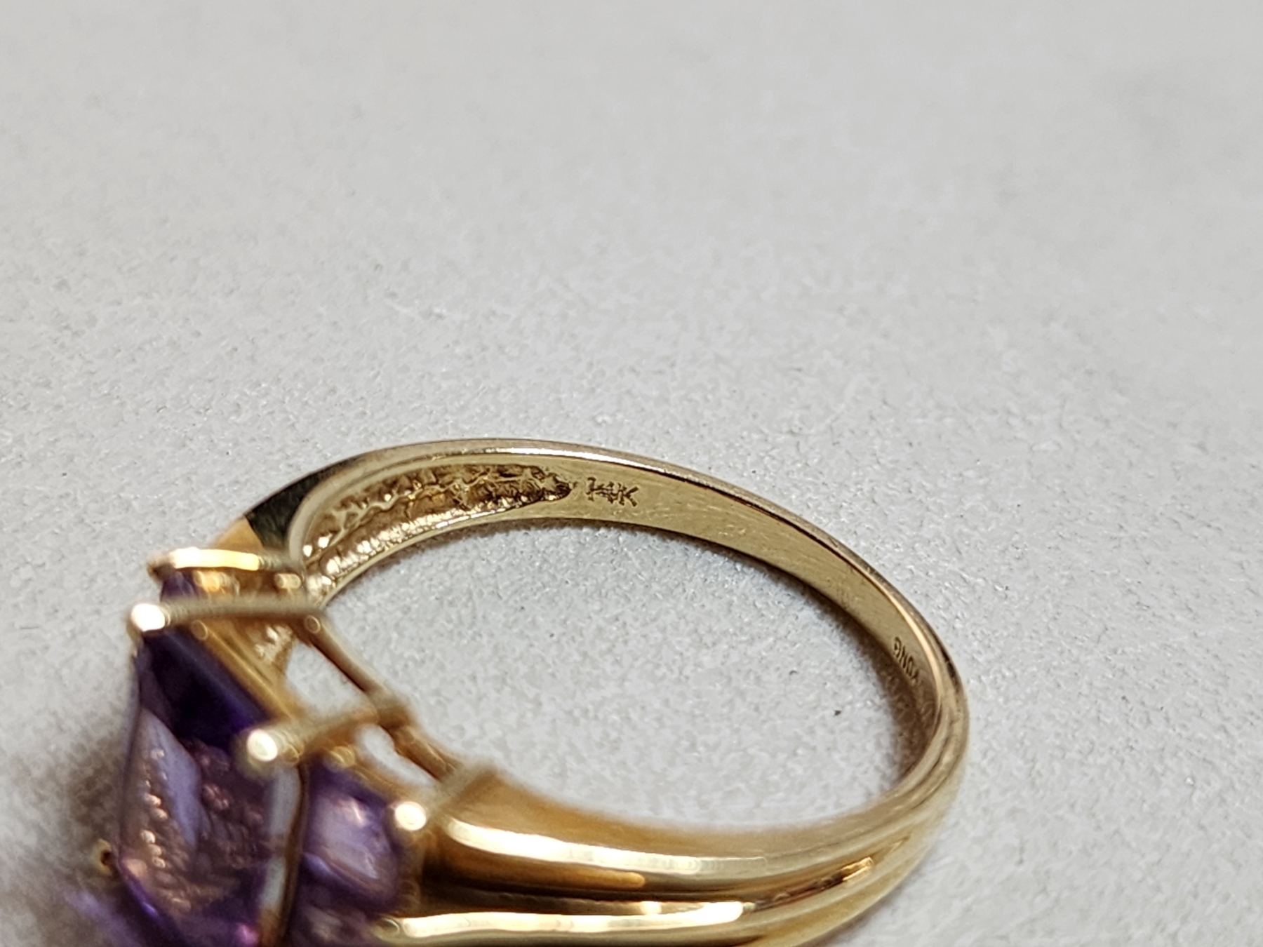 14K Gold Ring with Amethyst-Color Stones - Size 8.5 - Total Weight 3.2g