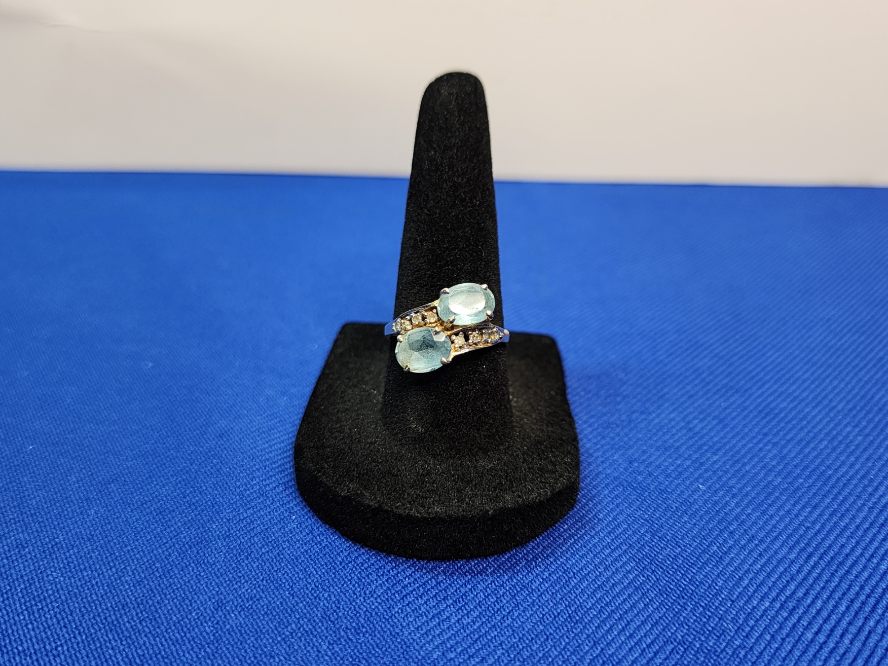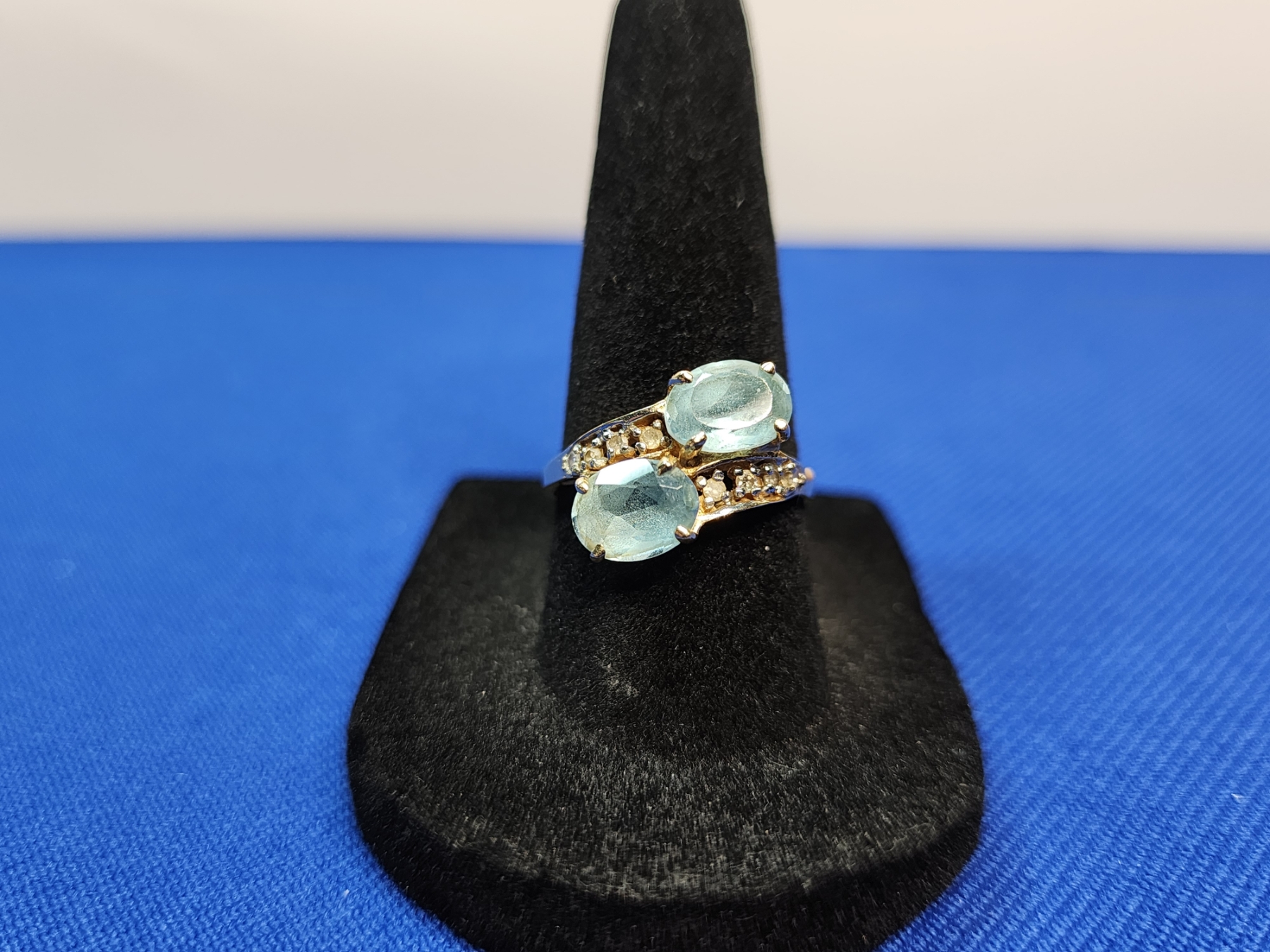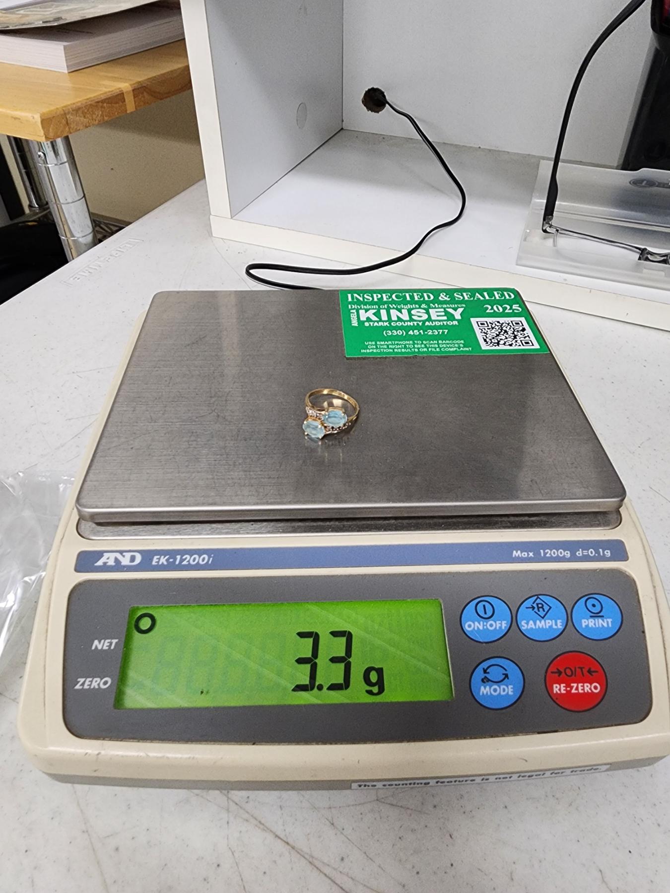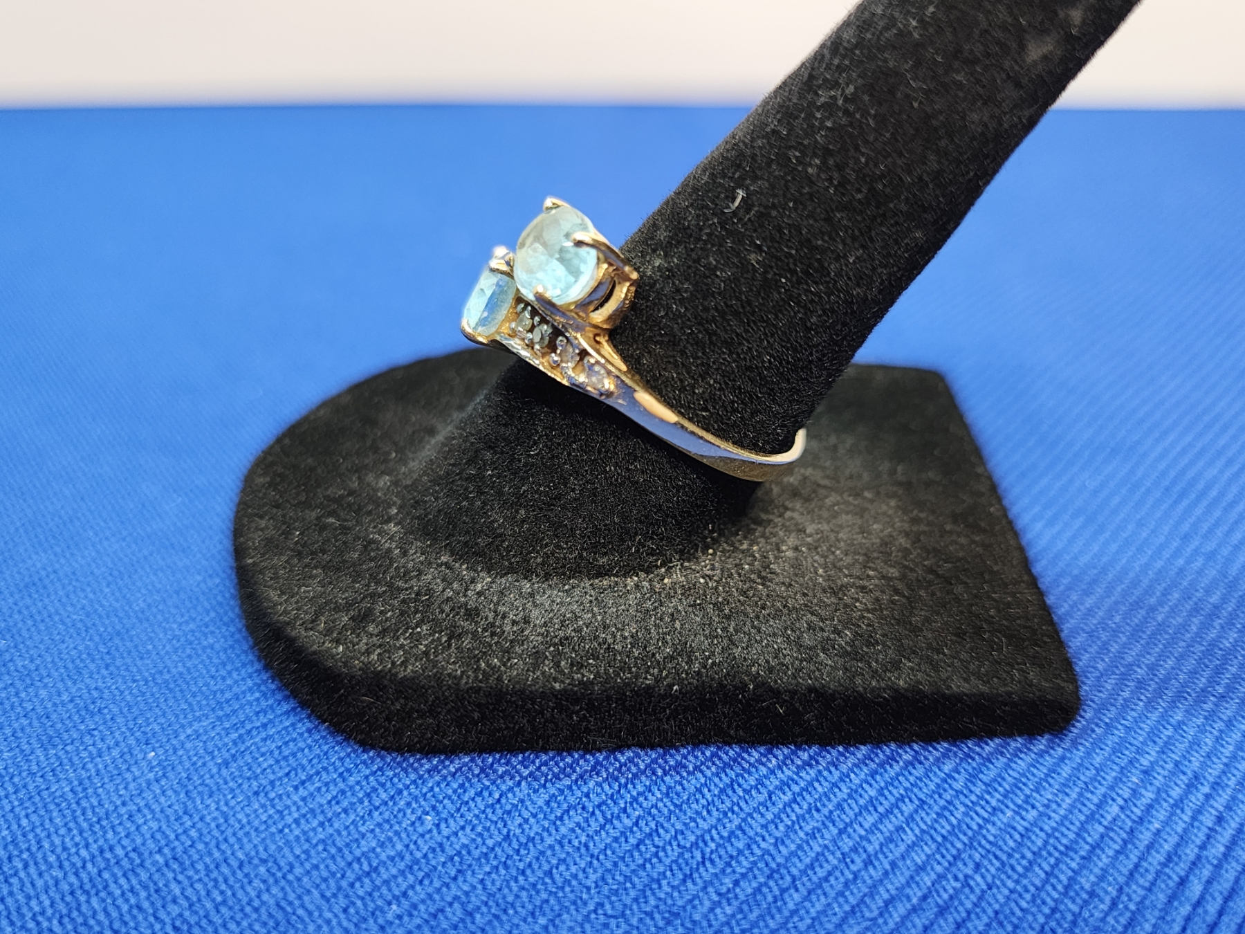 14K Gold Ring with Blue Gemstones - Size 7.5 - 3.3g