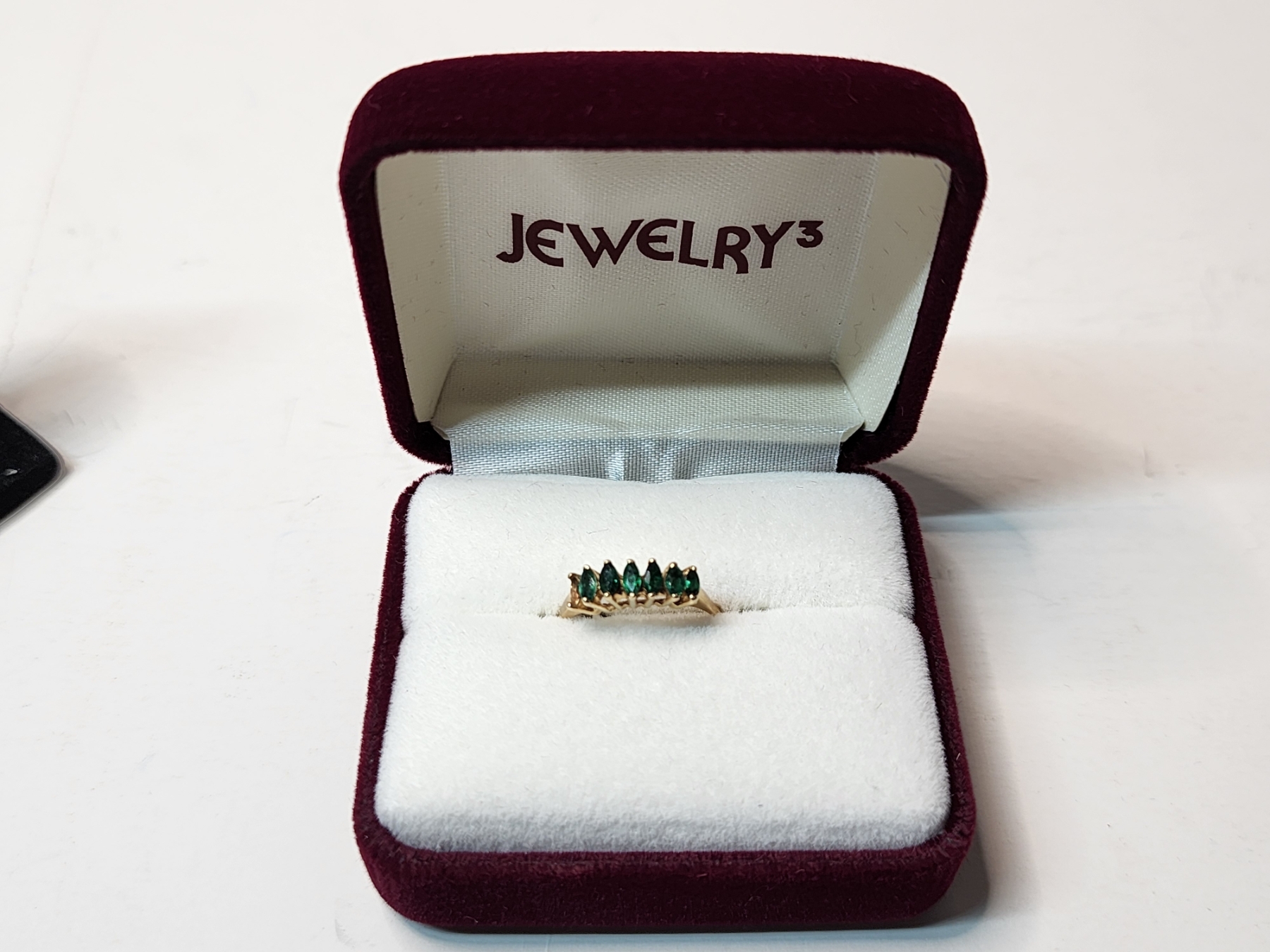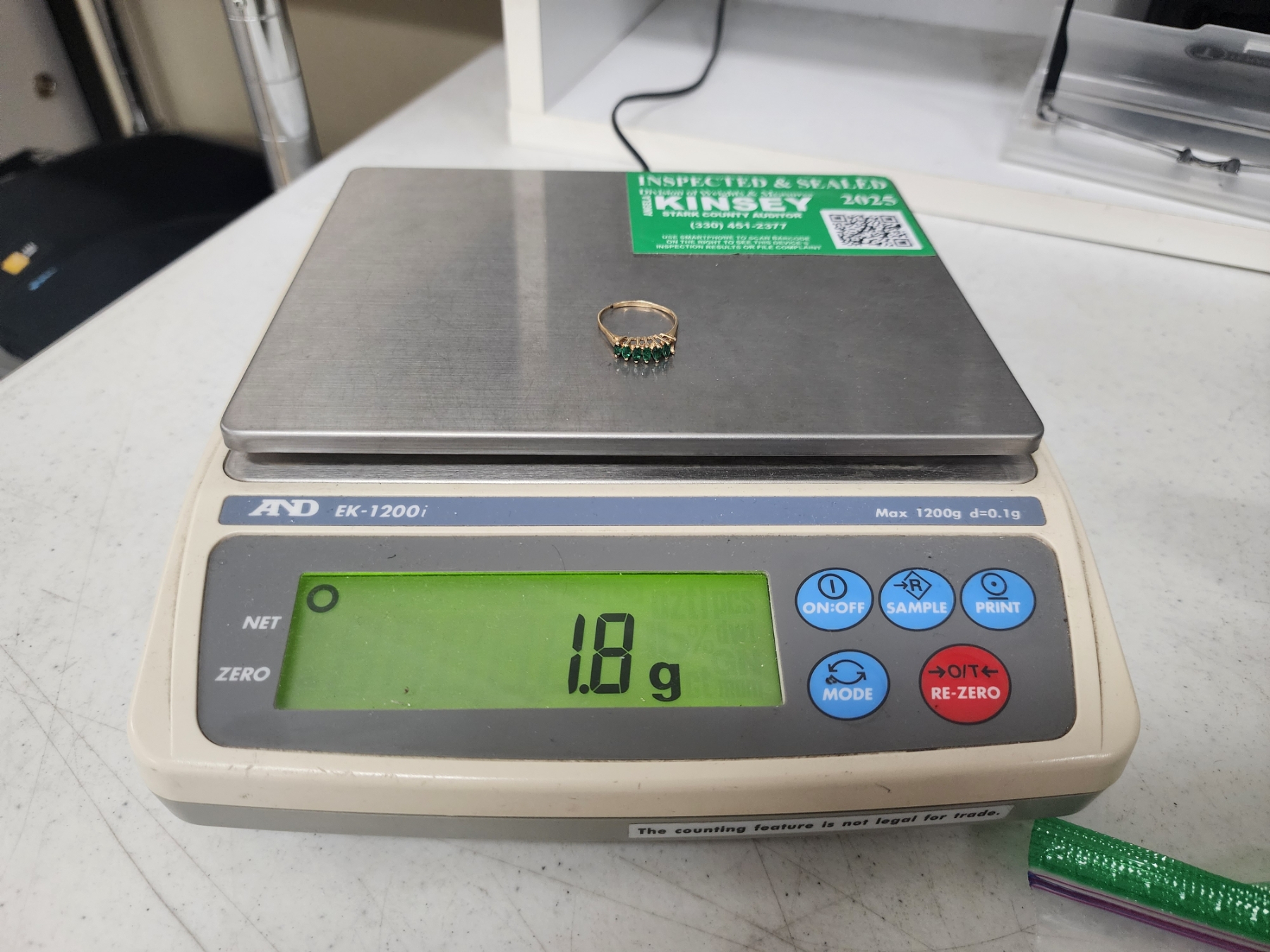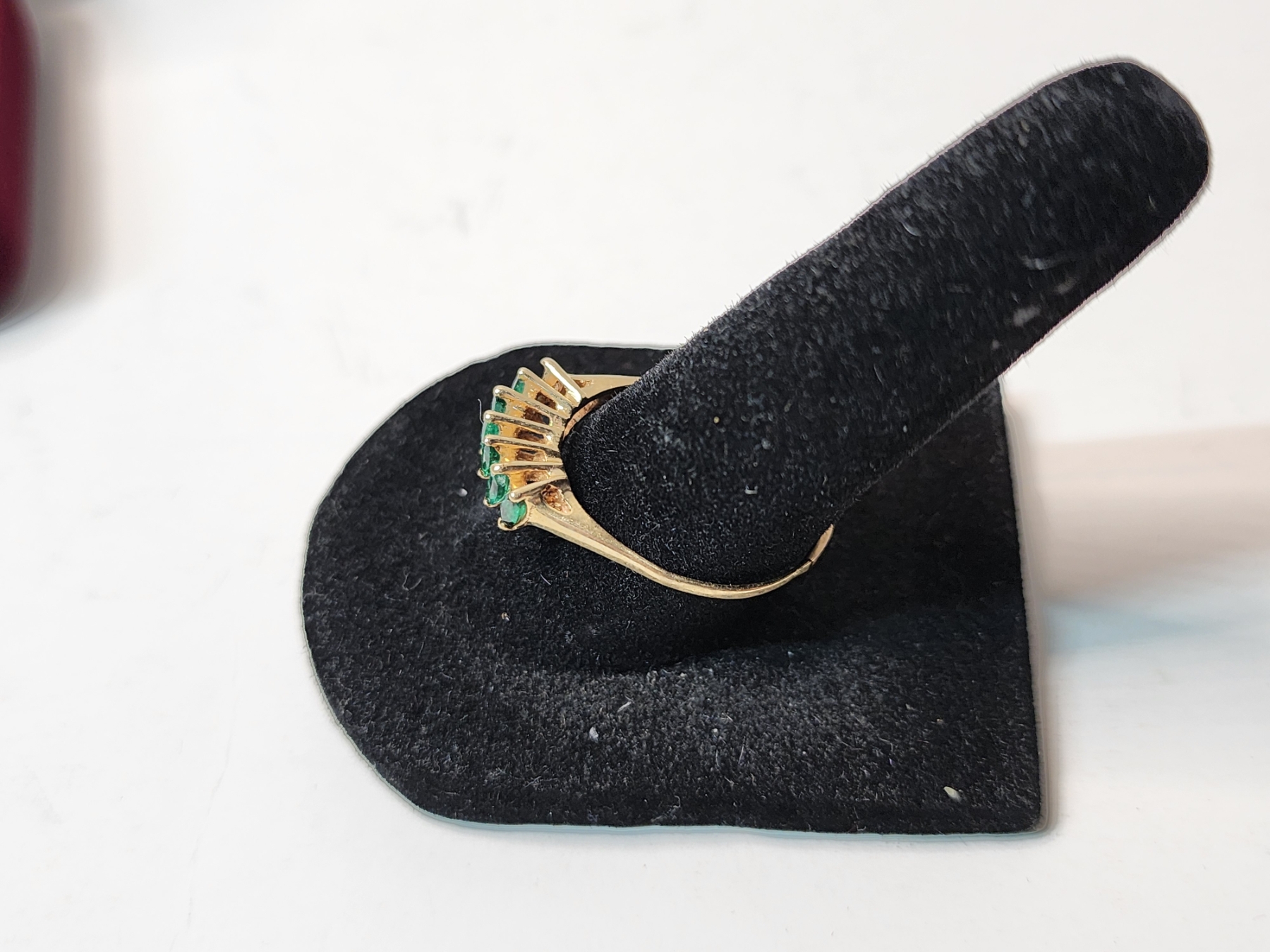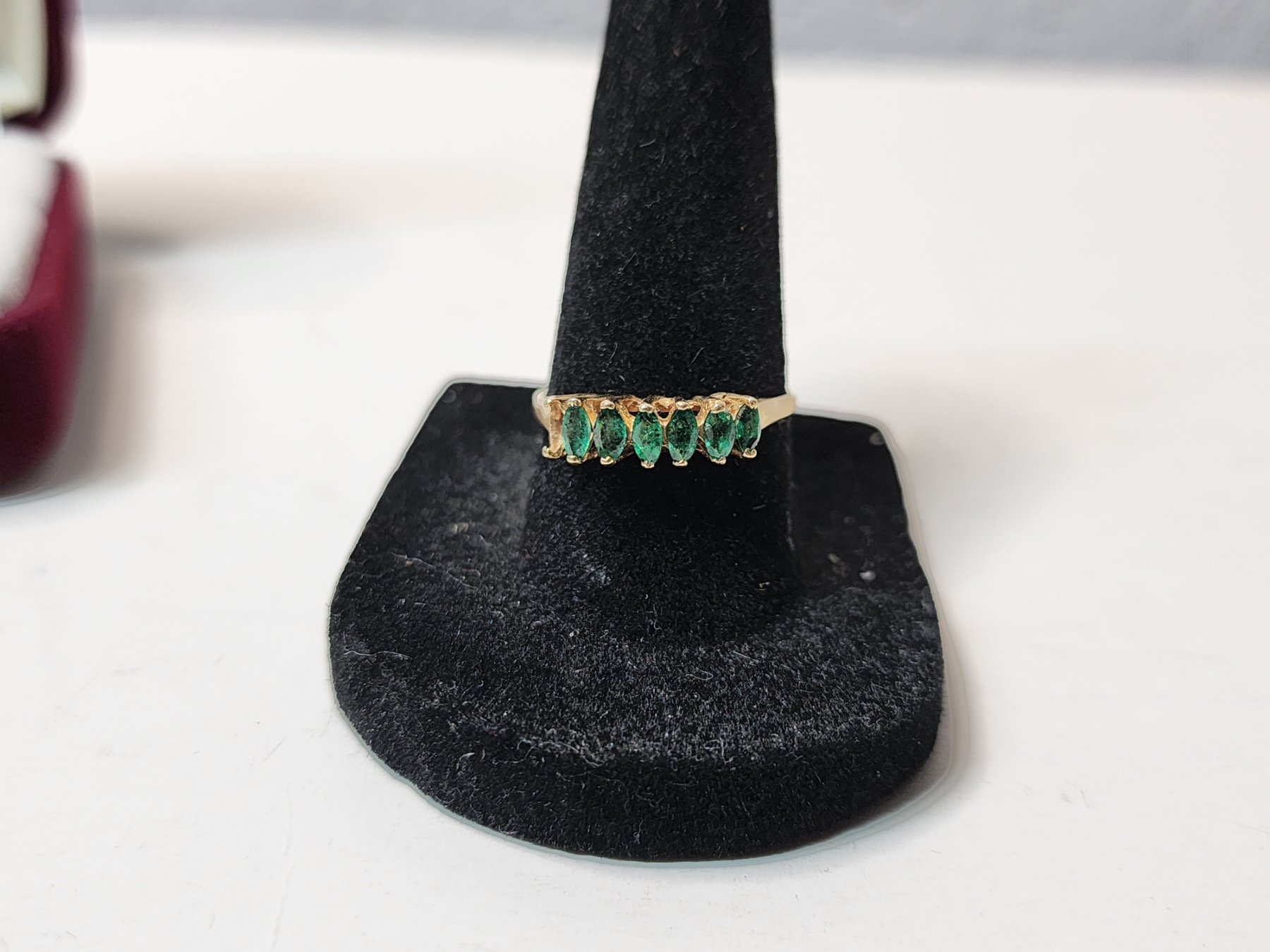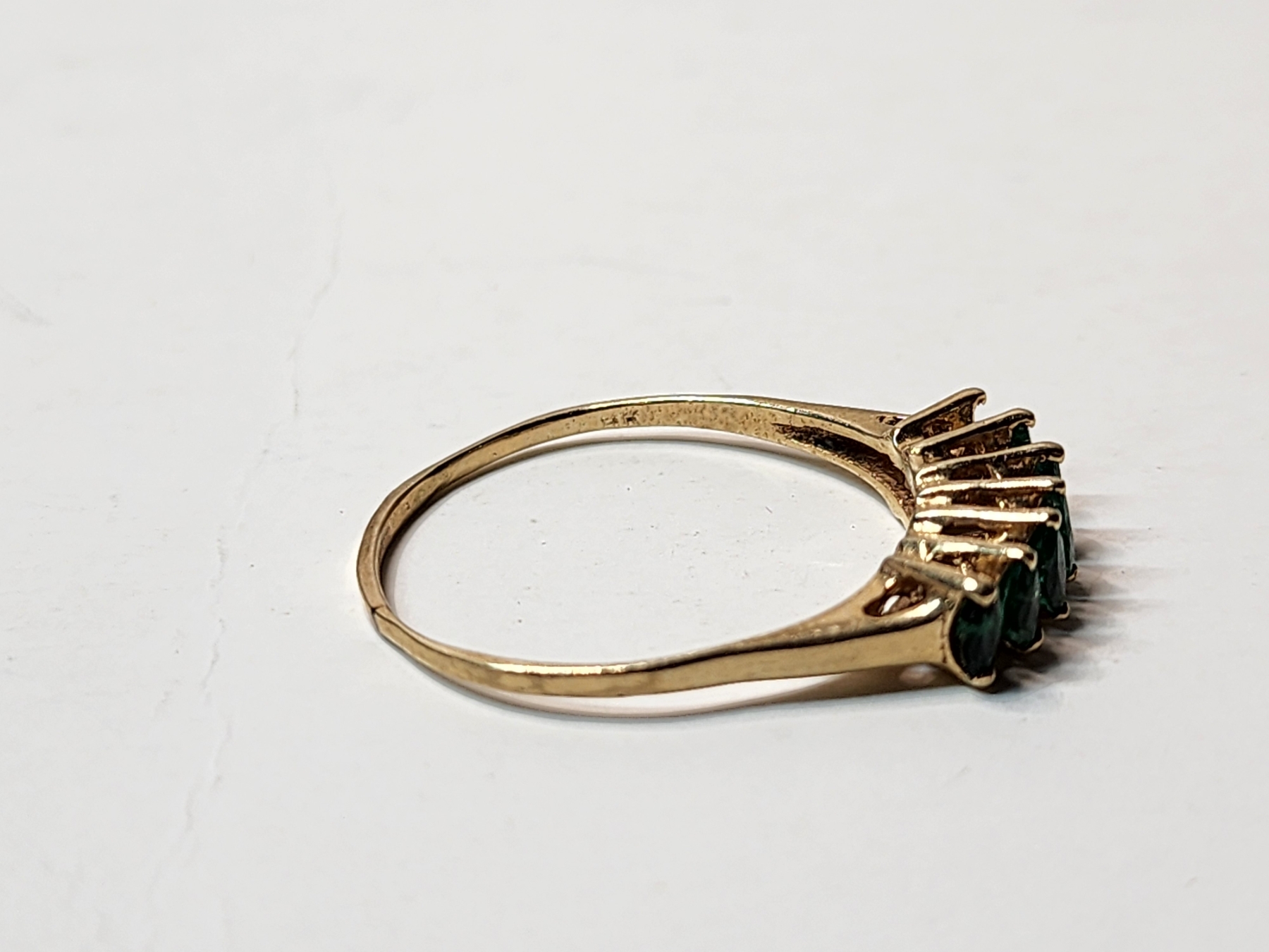 14K Gold Ring with Emerald-Color Stones Total Weight 1.8g - Size 8