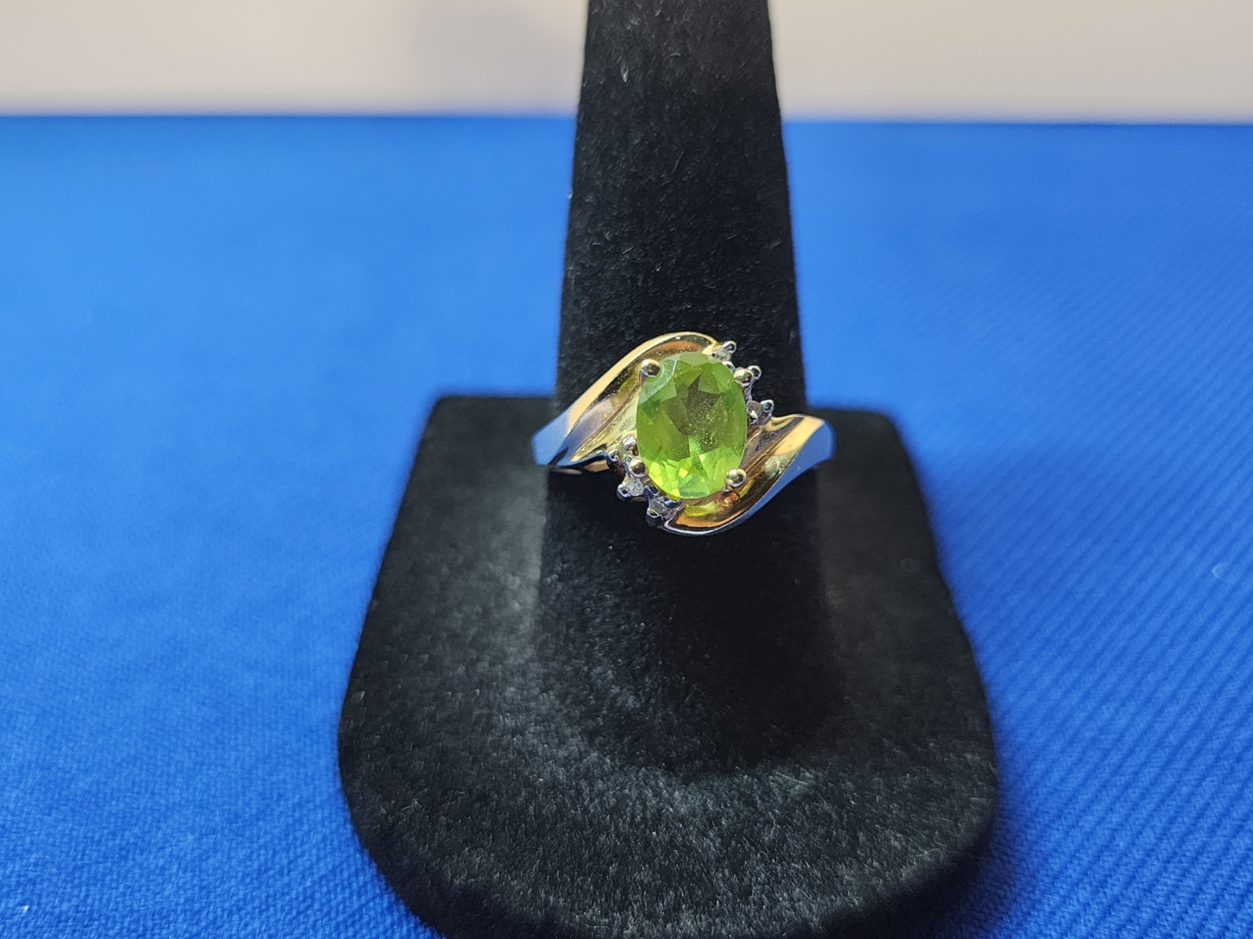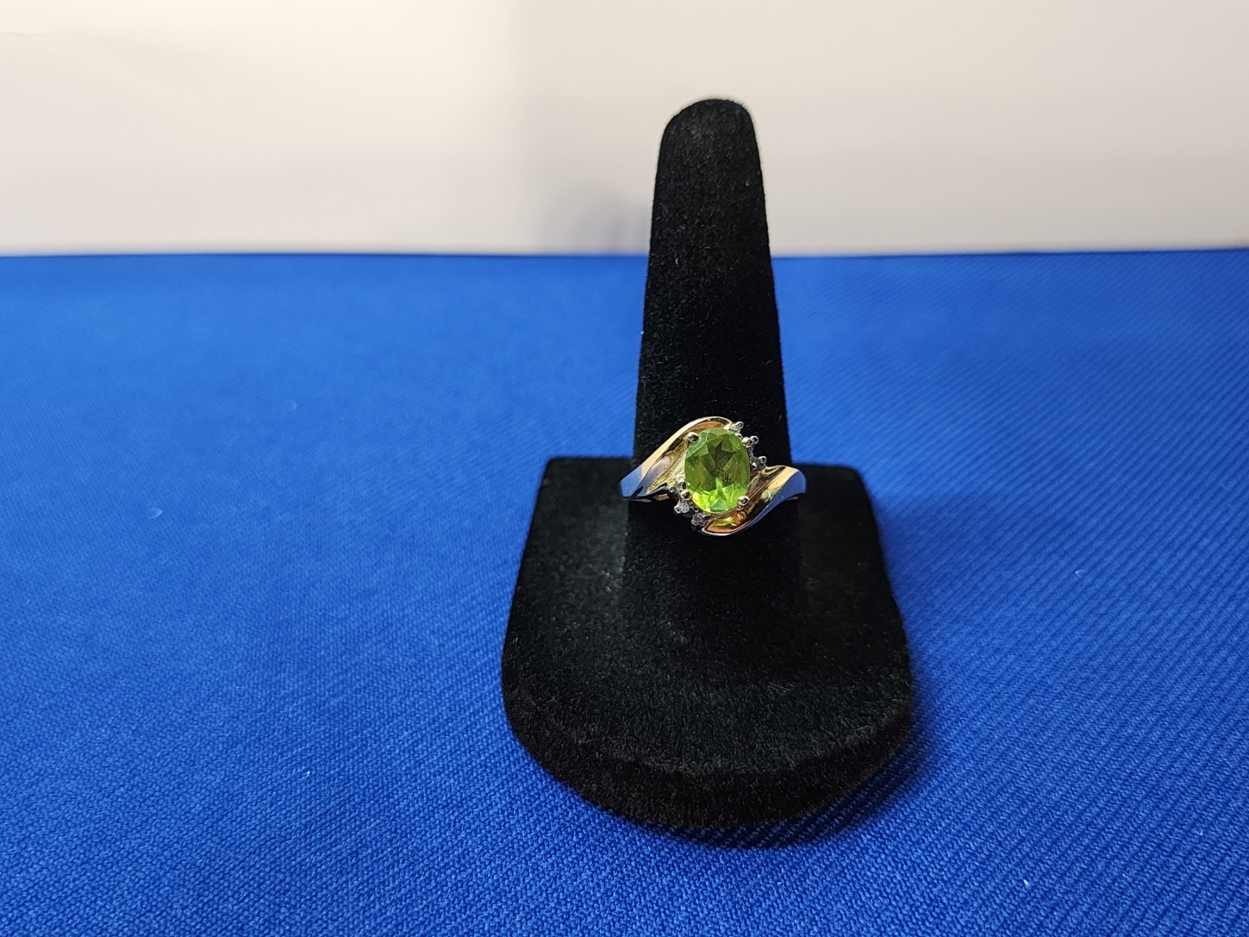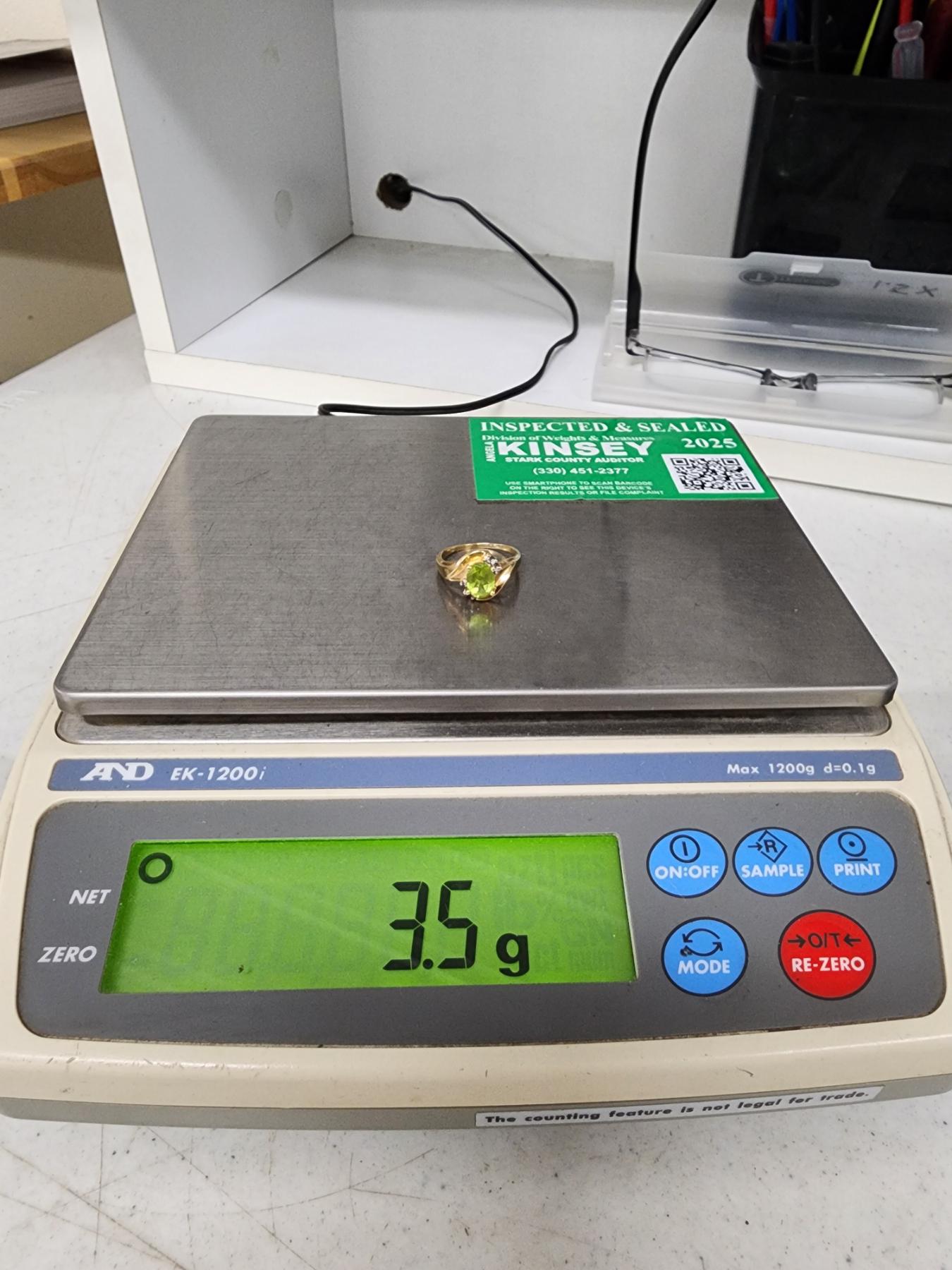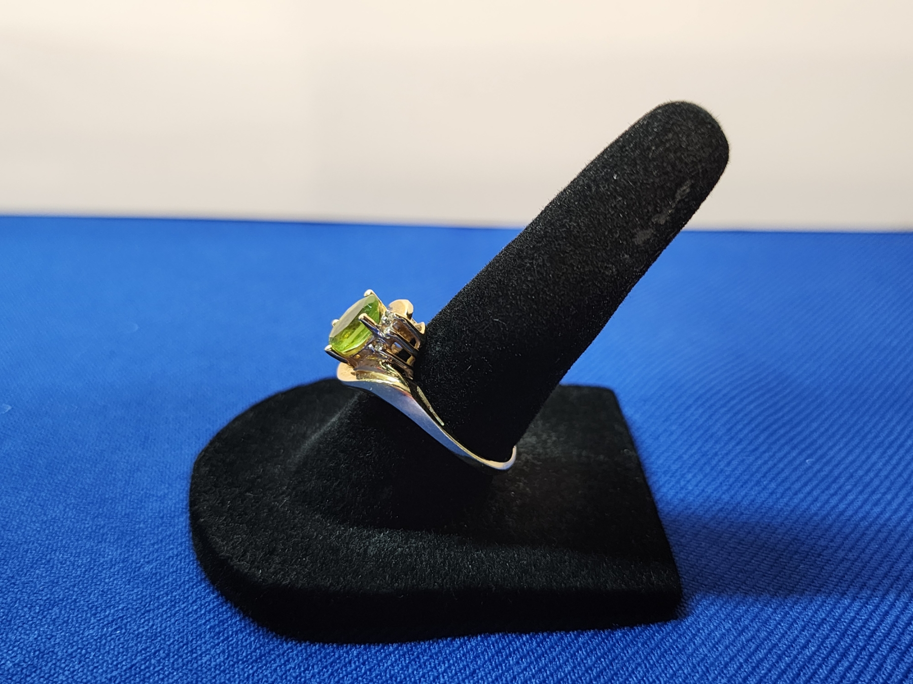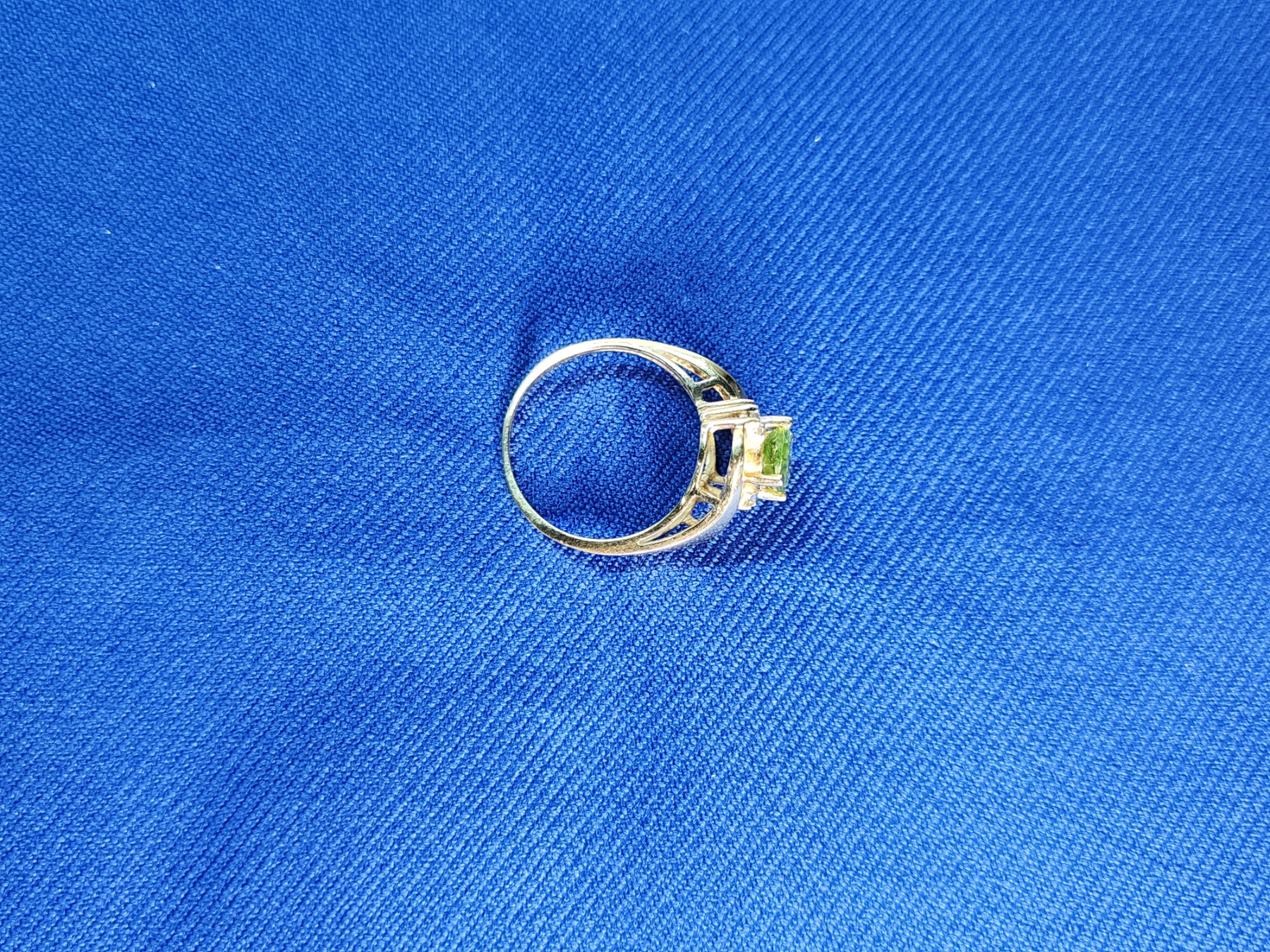 14K Gold Ring with Peridot-Colored Stone - Size 7.5 - 3.5g
