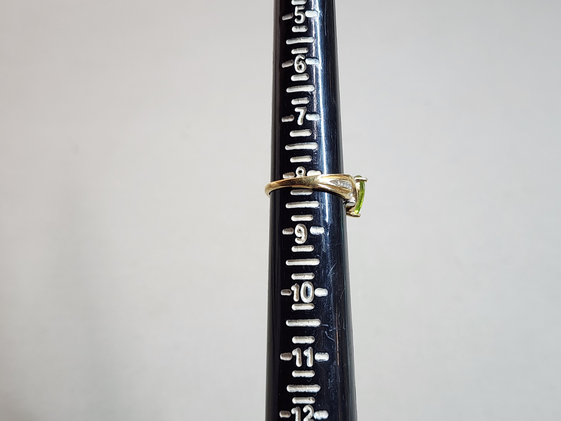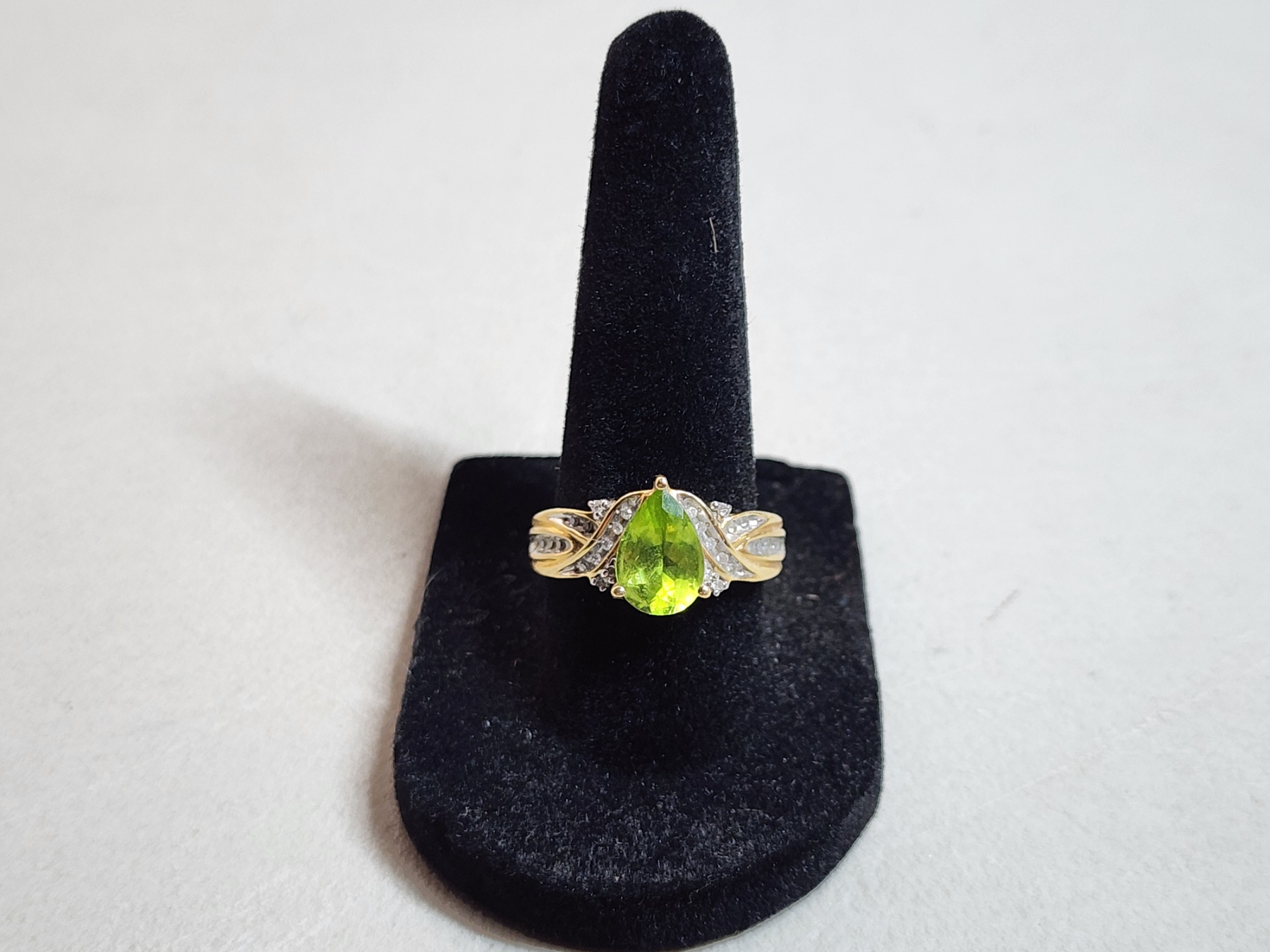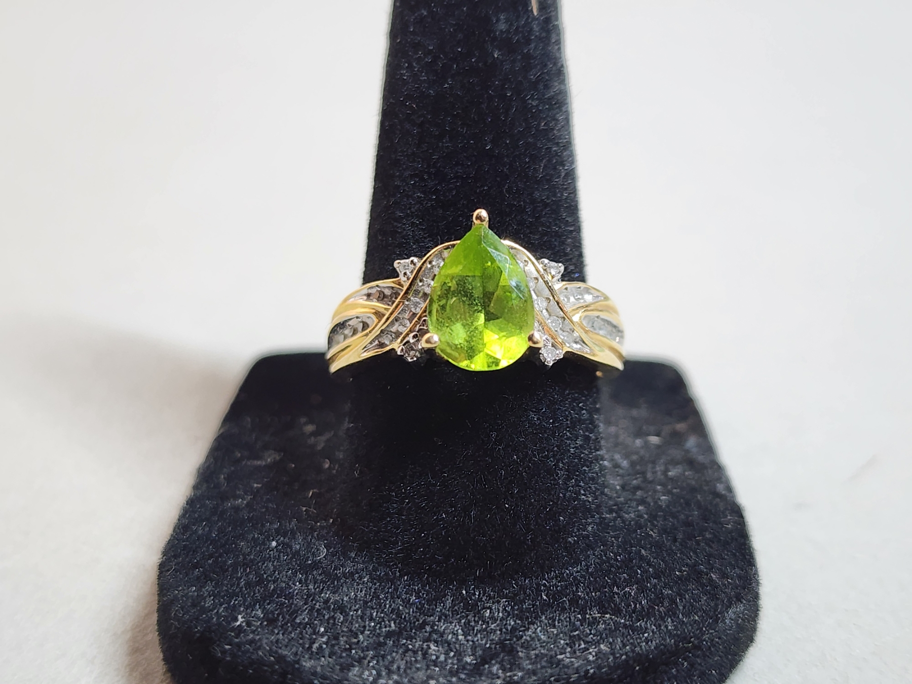 14K Gold Ring with Peridot Teardrop Stone - Size 8 - Total Weight 4.2g