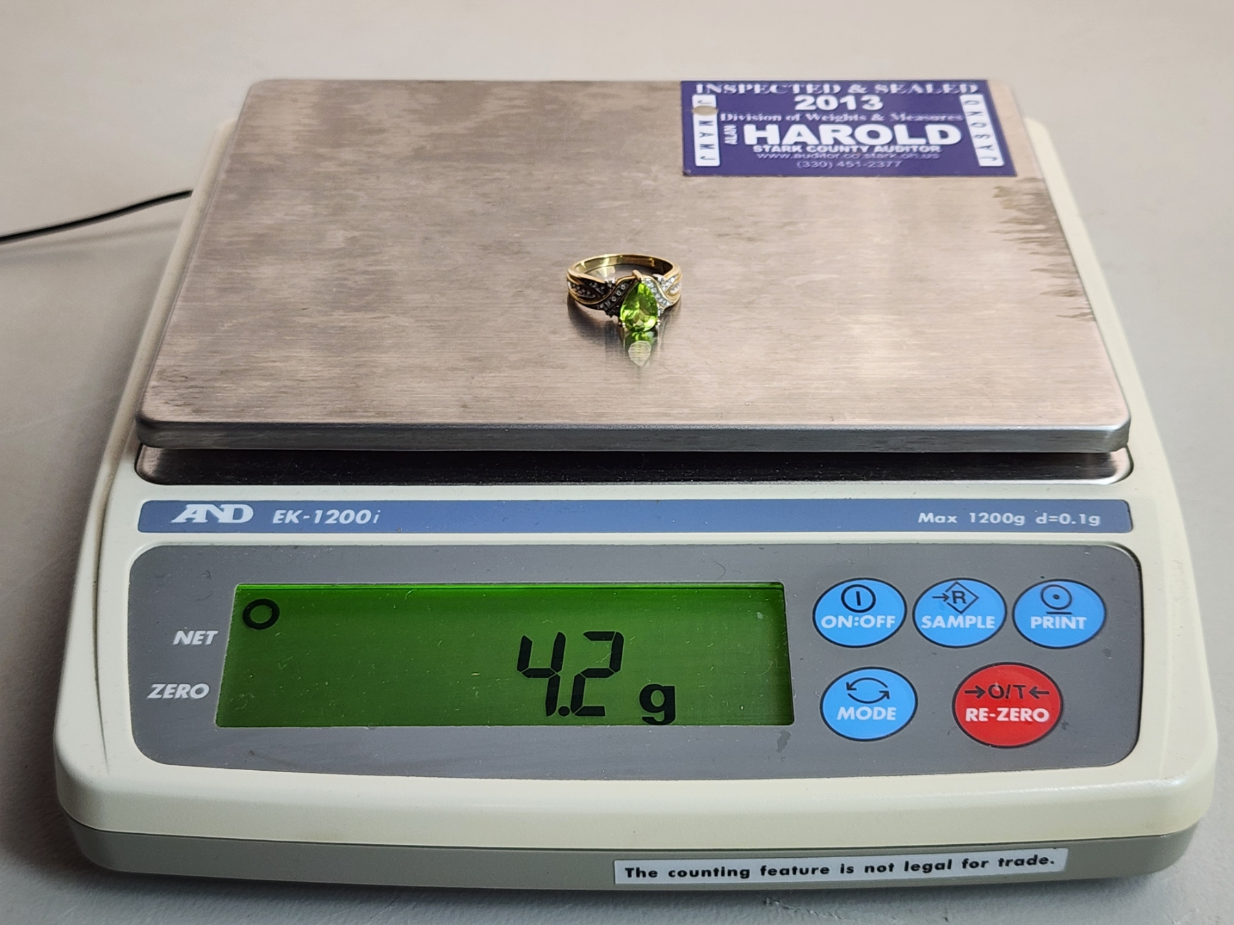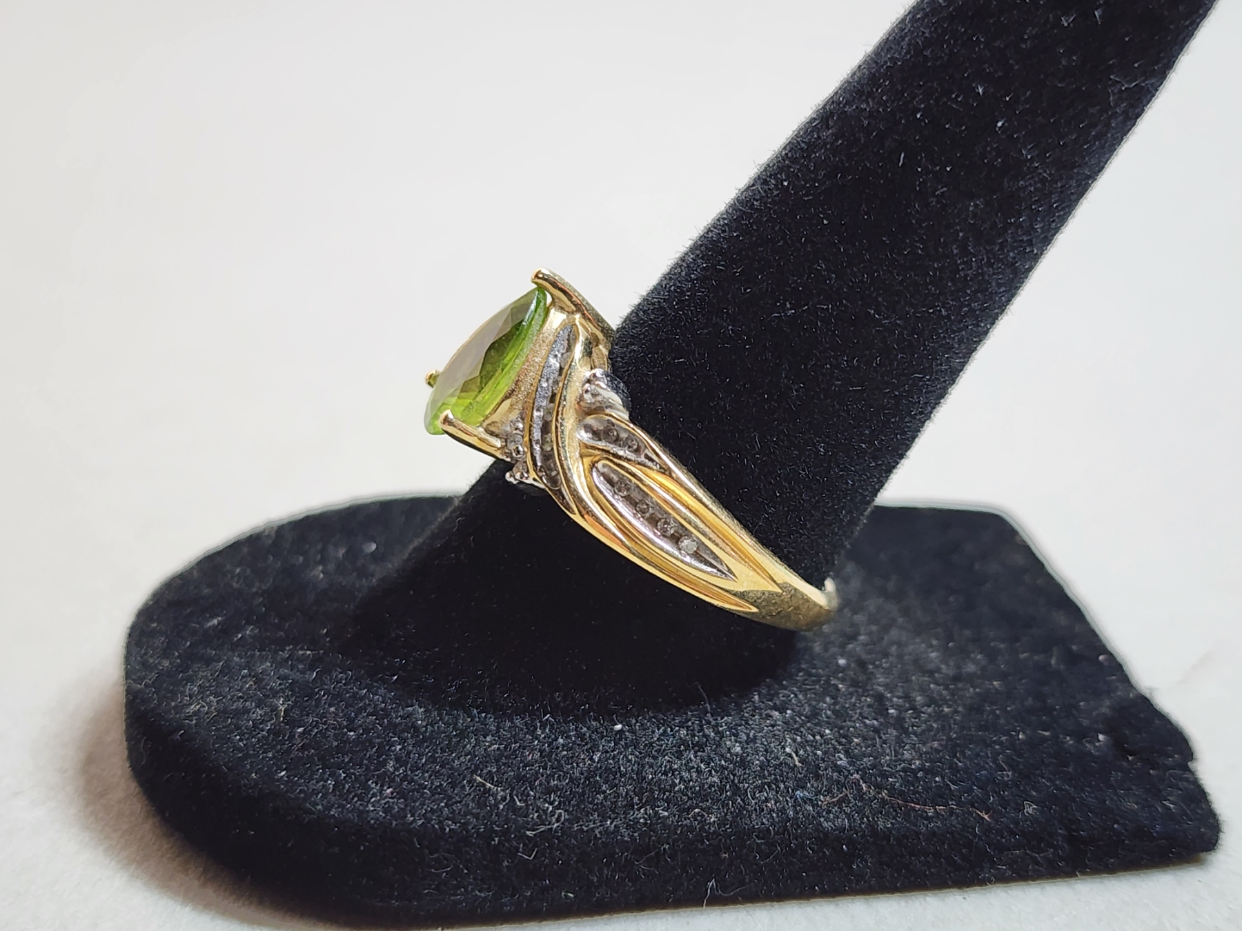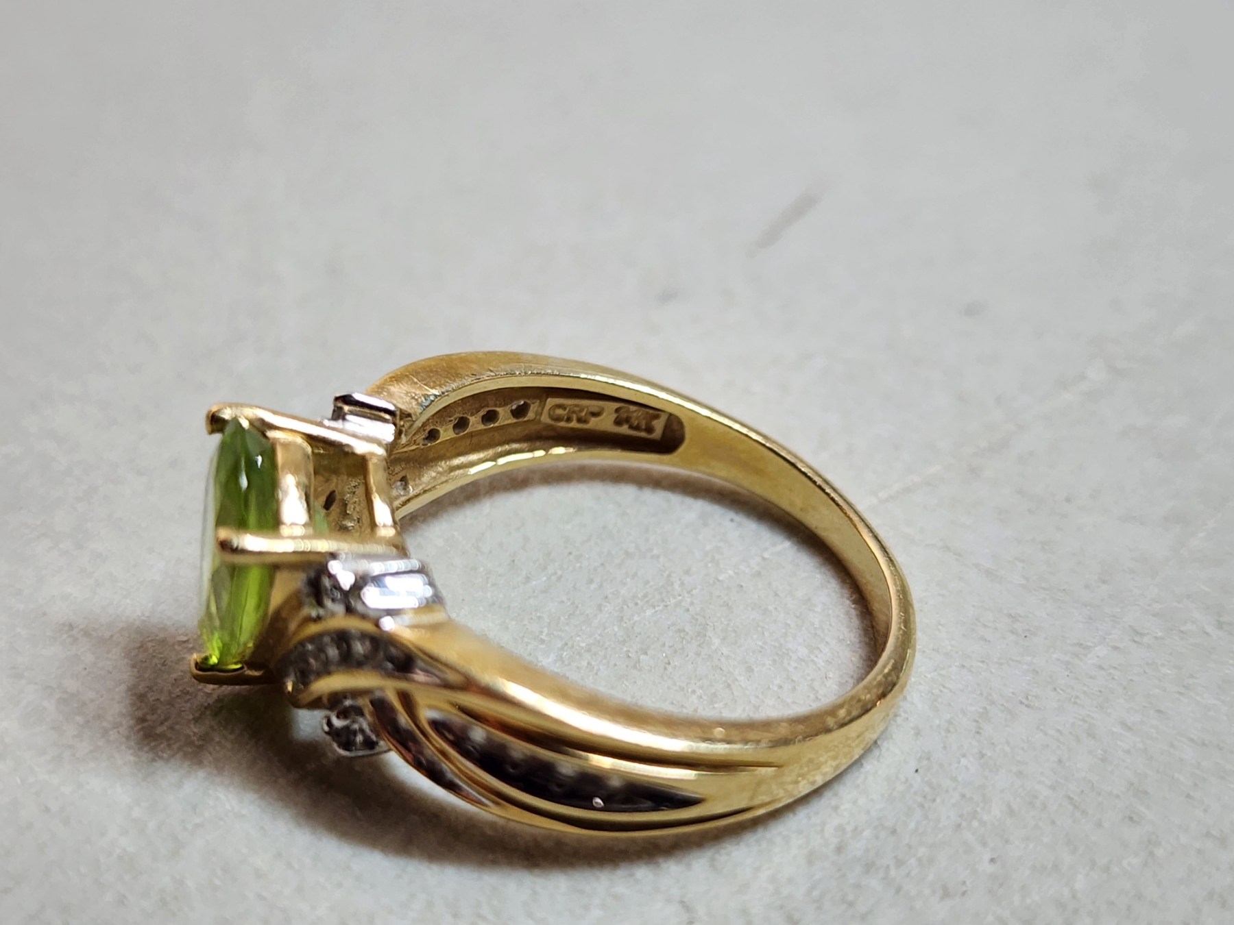 14K Gold Ring with Peridot Teardrop Stone - Size 8 - Total Weight 4.2g