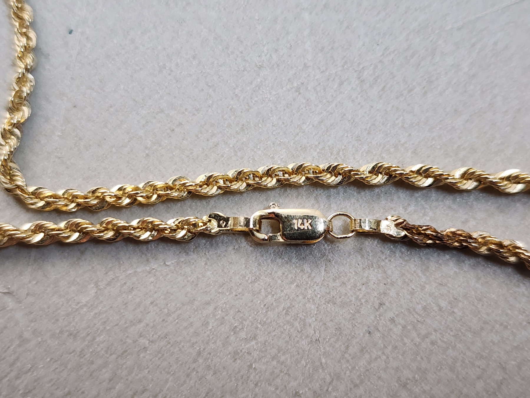 14K Gold Rope 18in Necklace - Total Weight 2.4g - See Description