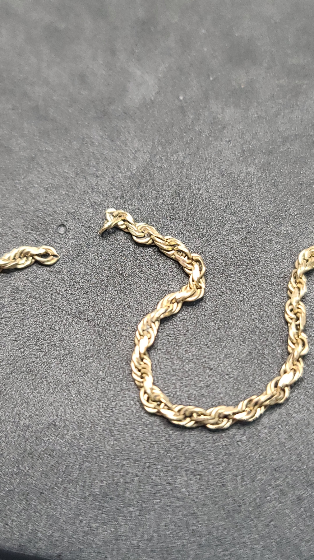 14K Gold Rope Necklace (Broken) - Weight: 10.3g