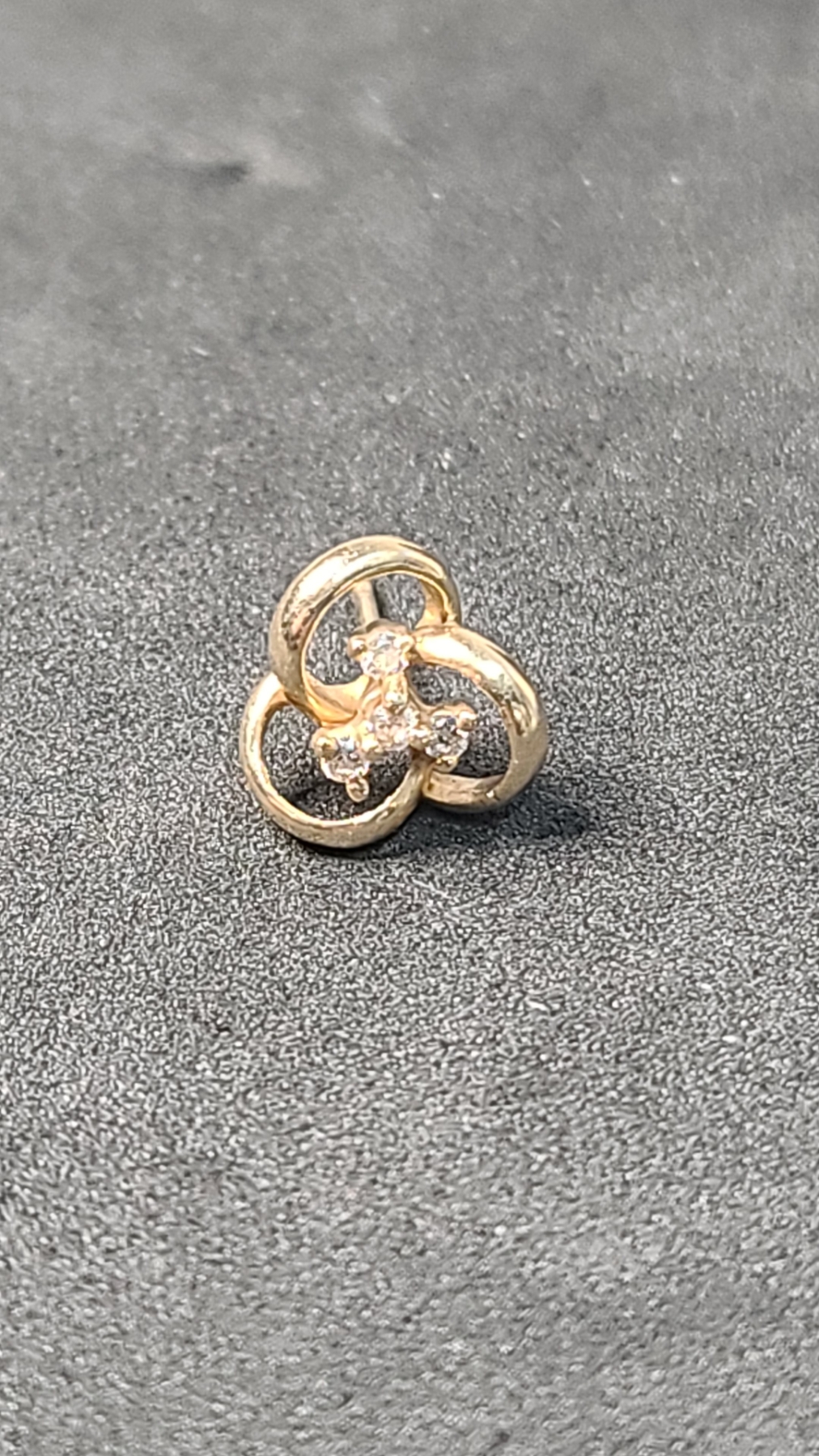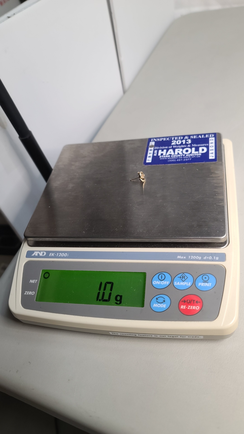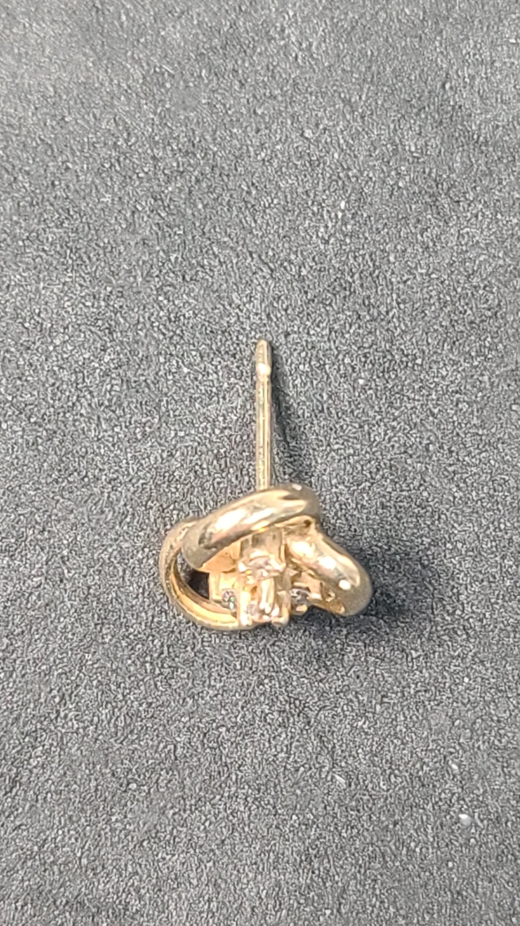 14K Gold Single Earring With Clear Stones - Total Weight: 1.0g