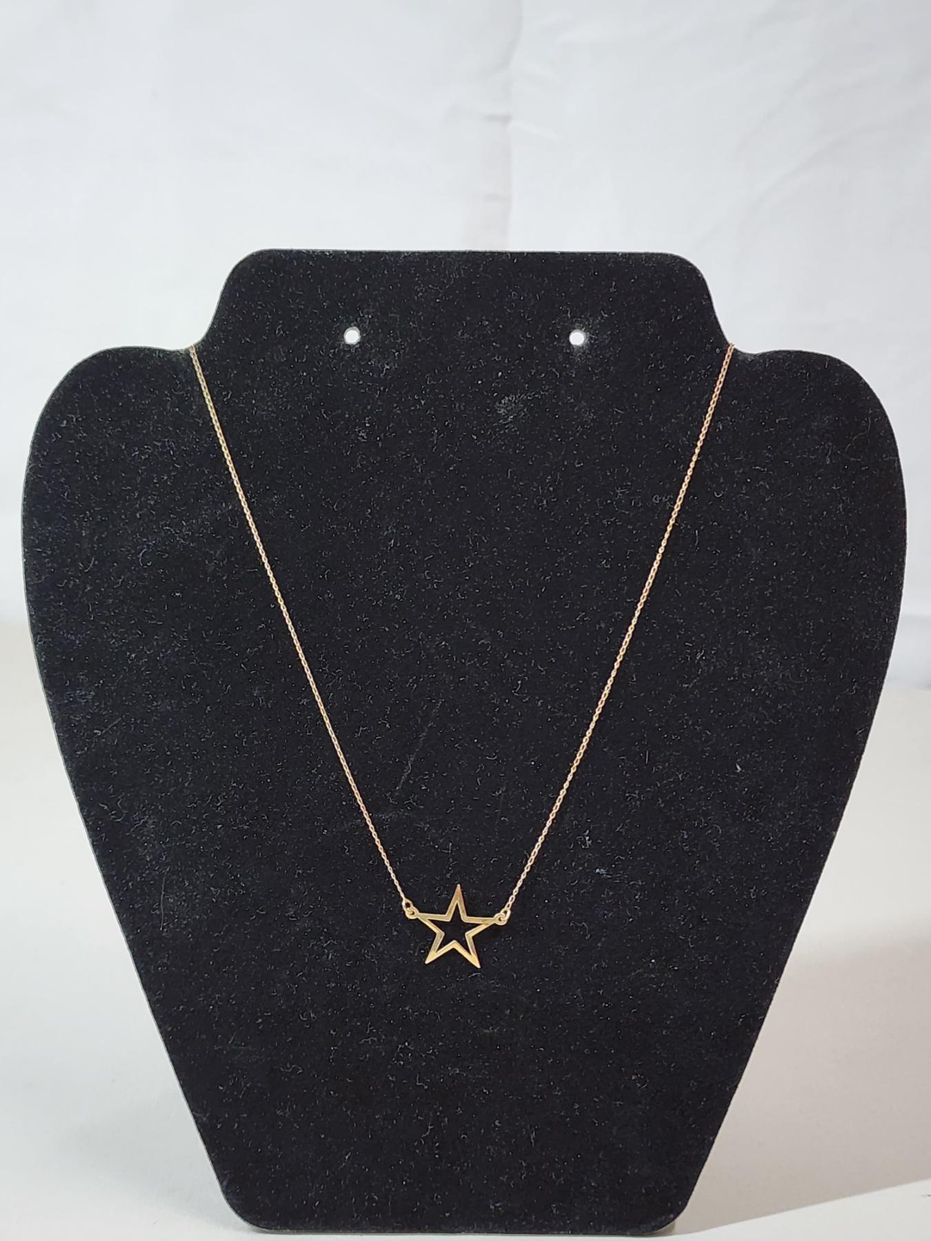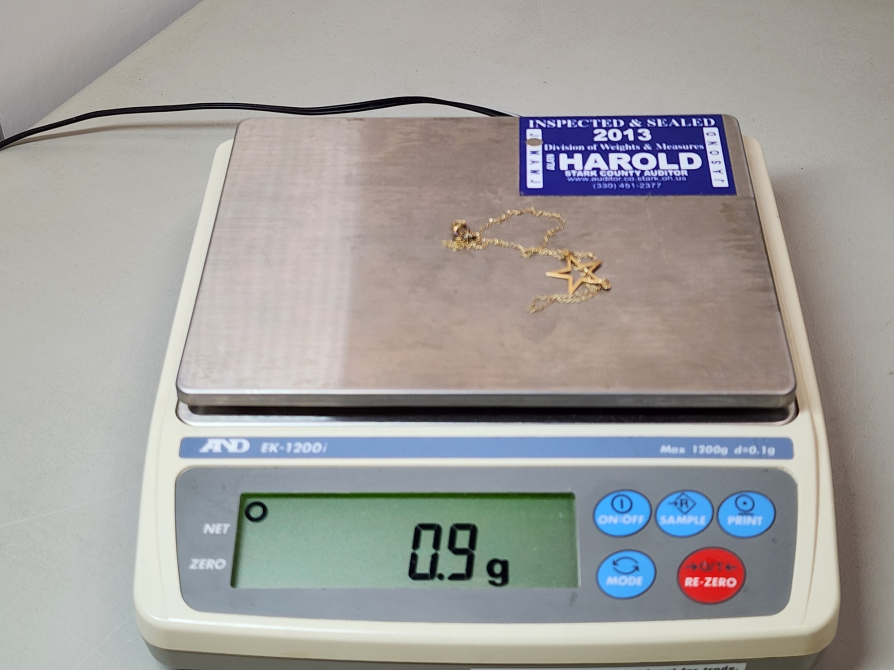 14K Gold Star Necklace 16in Total Weigt 0.9g