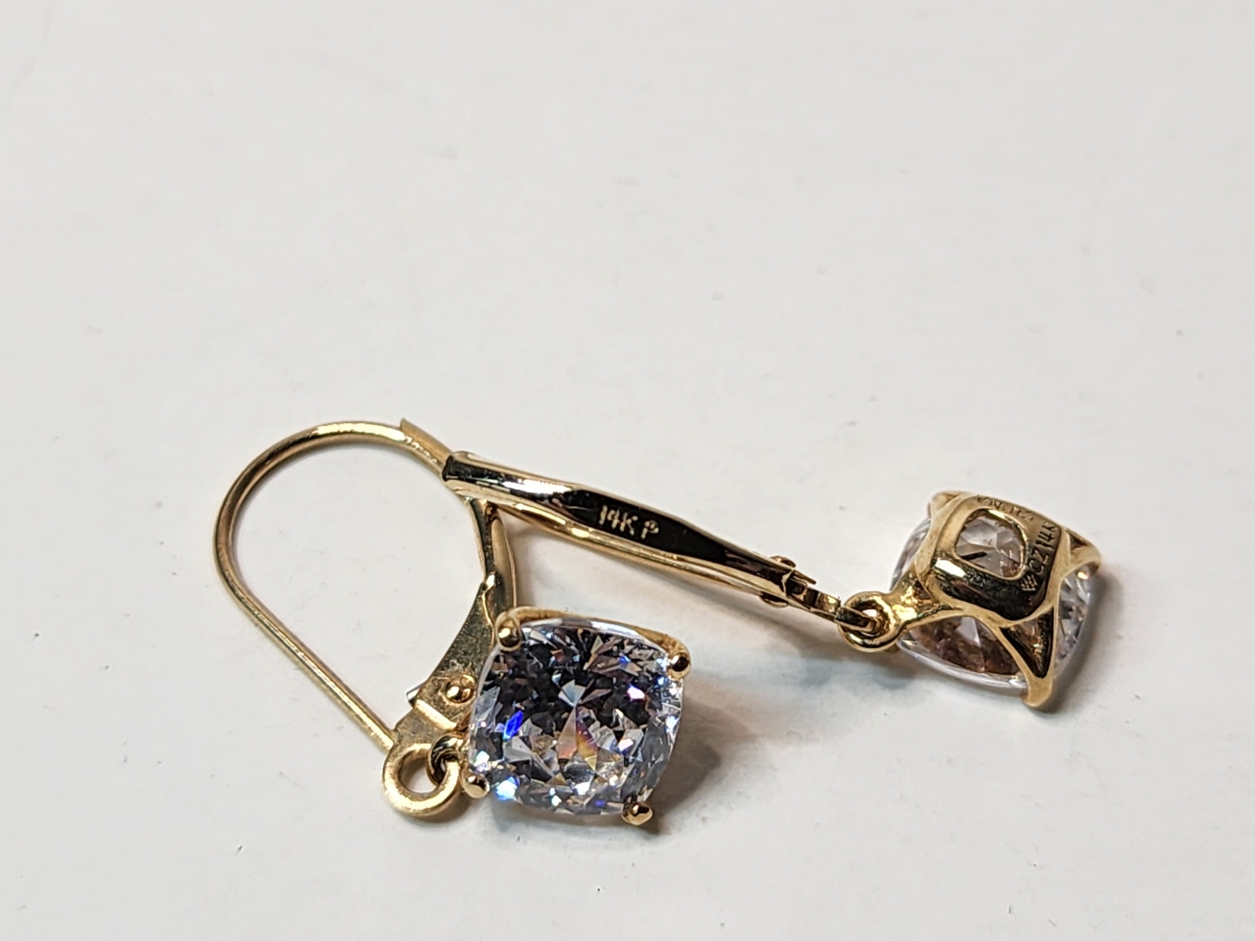 14K P Gold Earrings with Cubic Zirconia Stones - Total Weight 2.2g