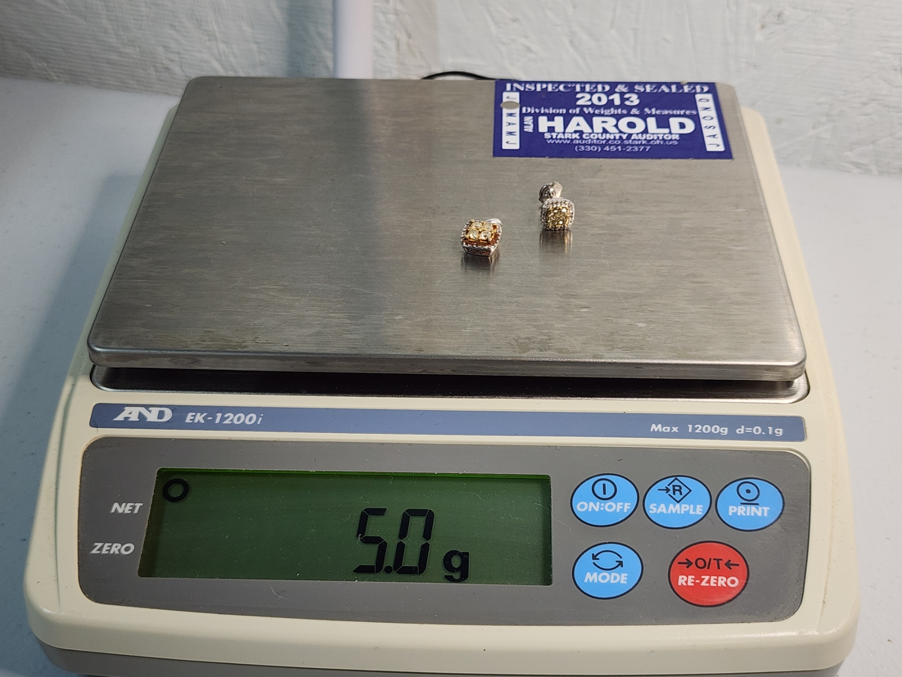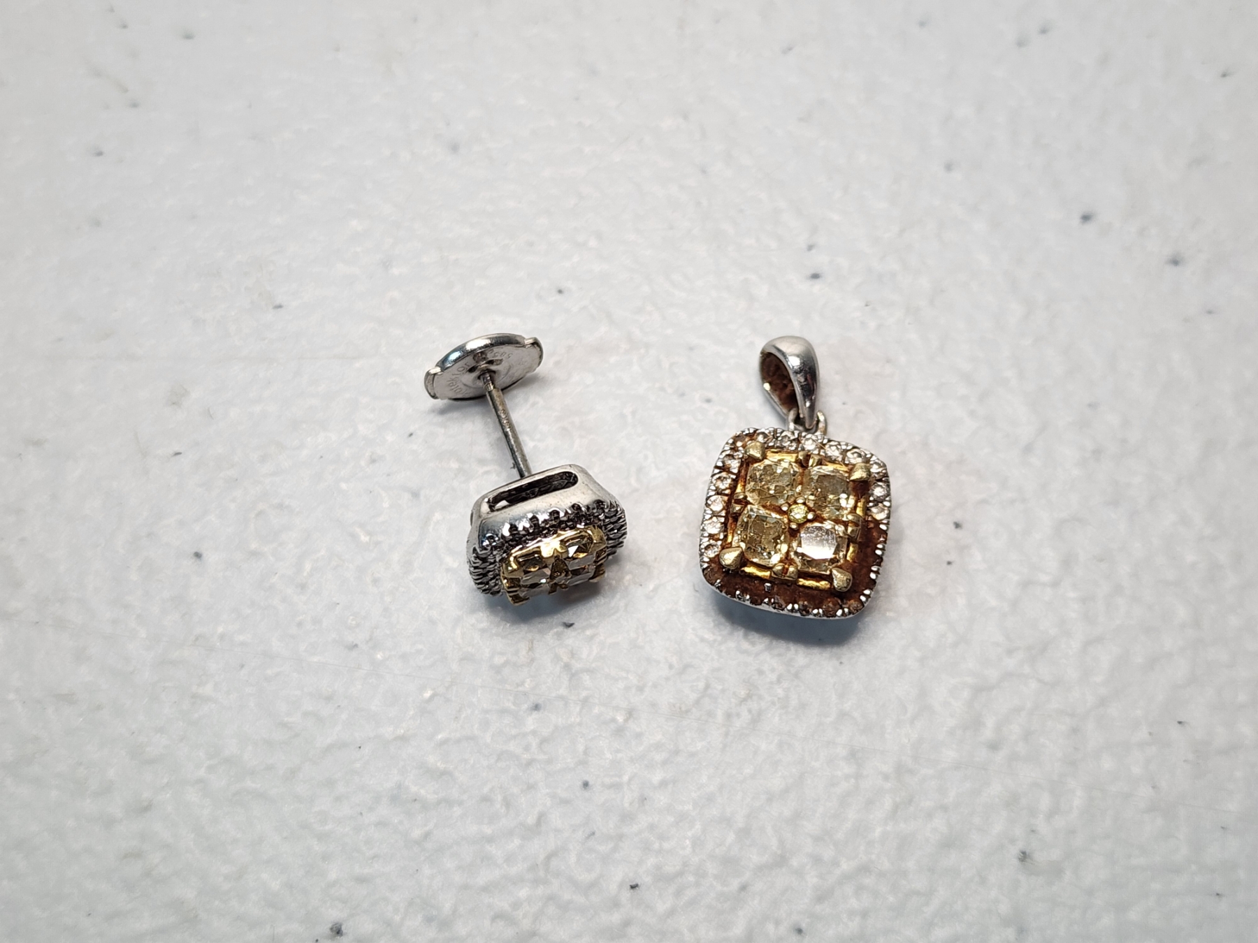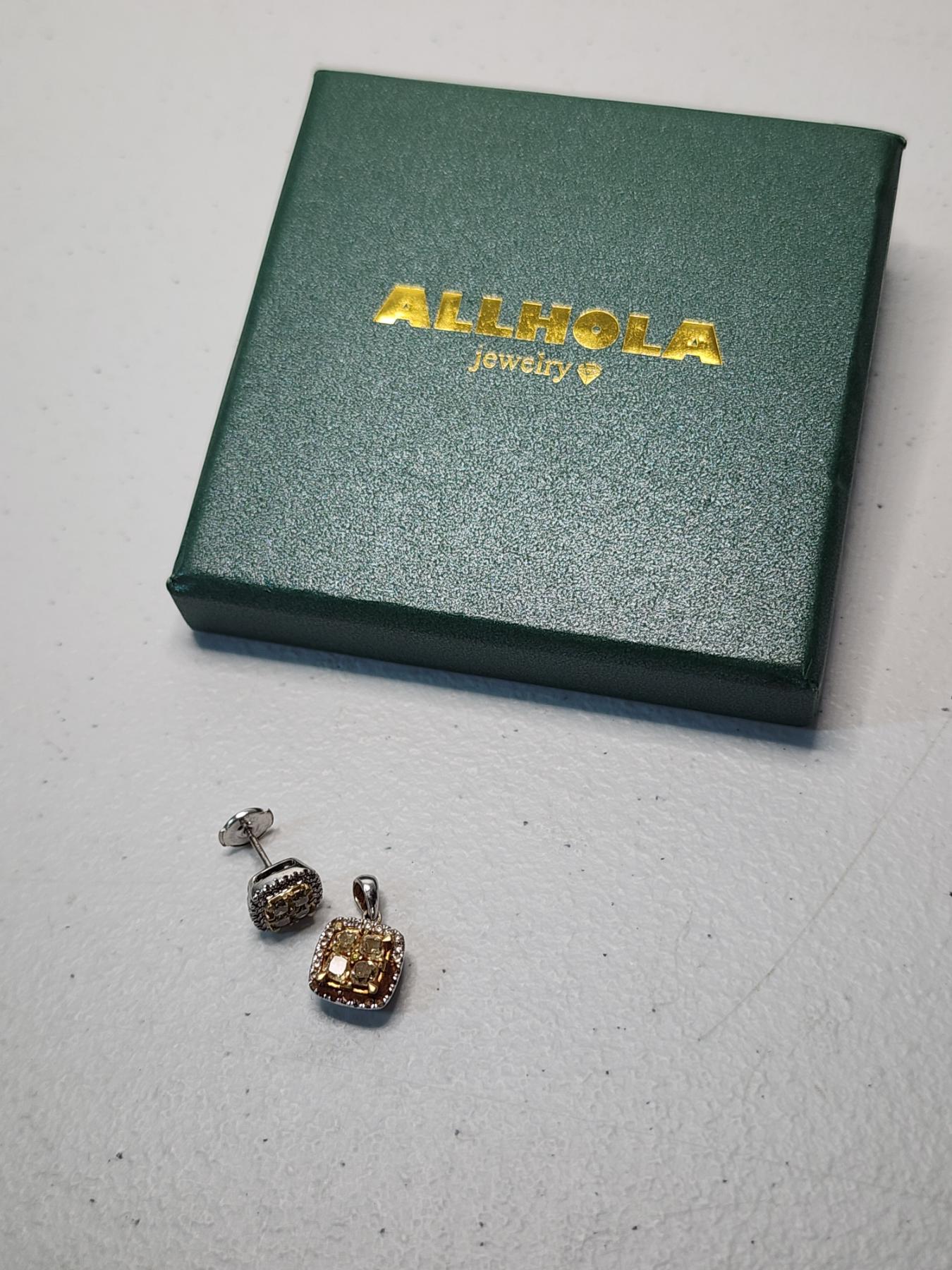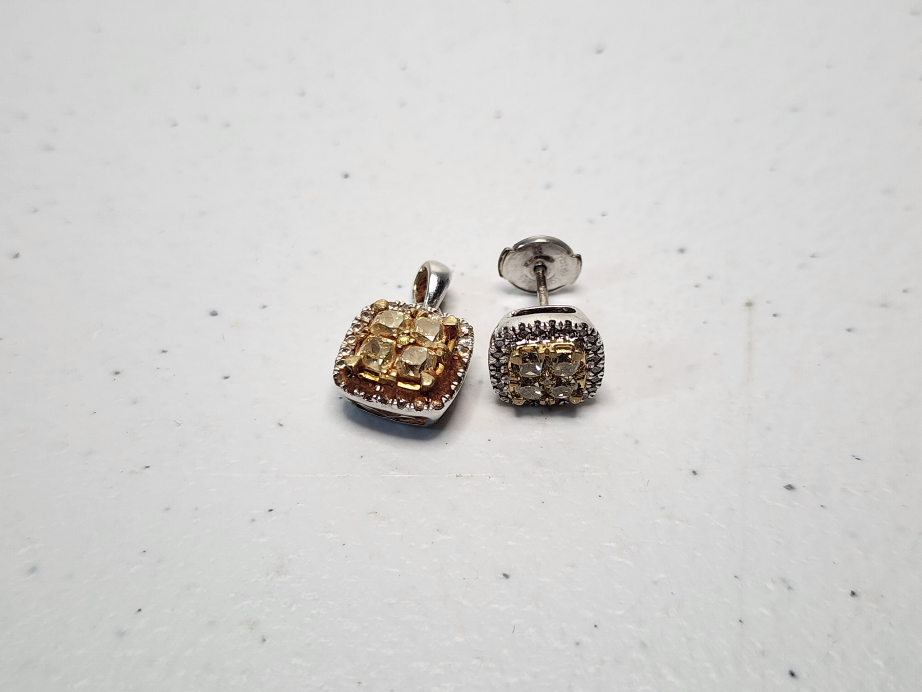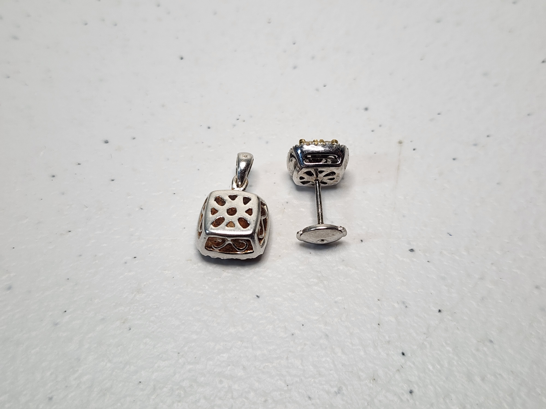14K White Gold Stud Earring and Pendant TW: 5.0g